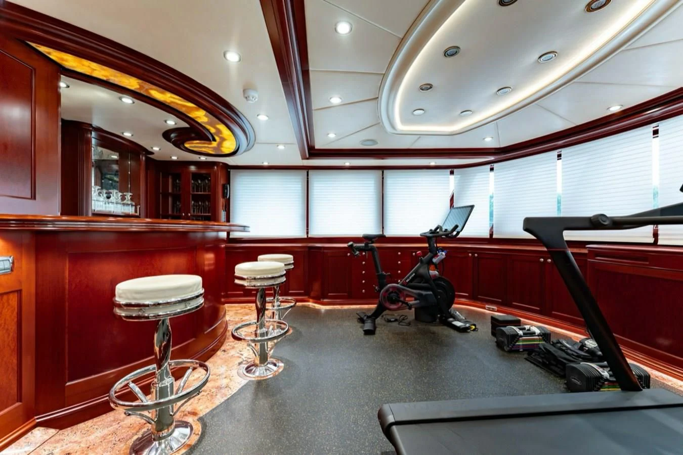 The main salon on BEOTHUK is nothing short of spectacular; it serves as both a social hub and tranquil retreat featuring sumptuous seating arrangements alongside large windows offering breathtaking views of the surrounding seascape. A dedicated dining area presents an intimate setting for memorable meals while the onboard gym caters to fitness enthusiasts who wish not to break their workout routine even at sea.