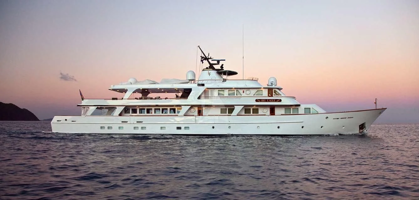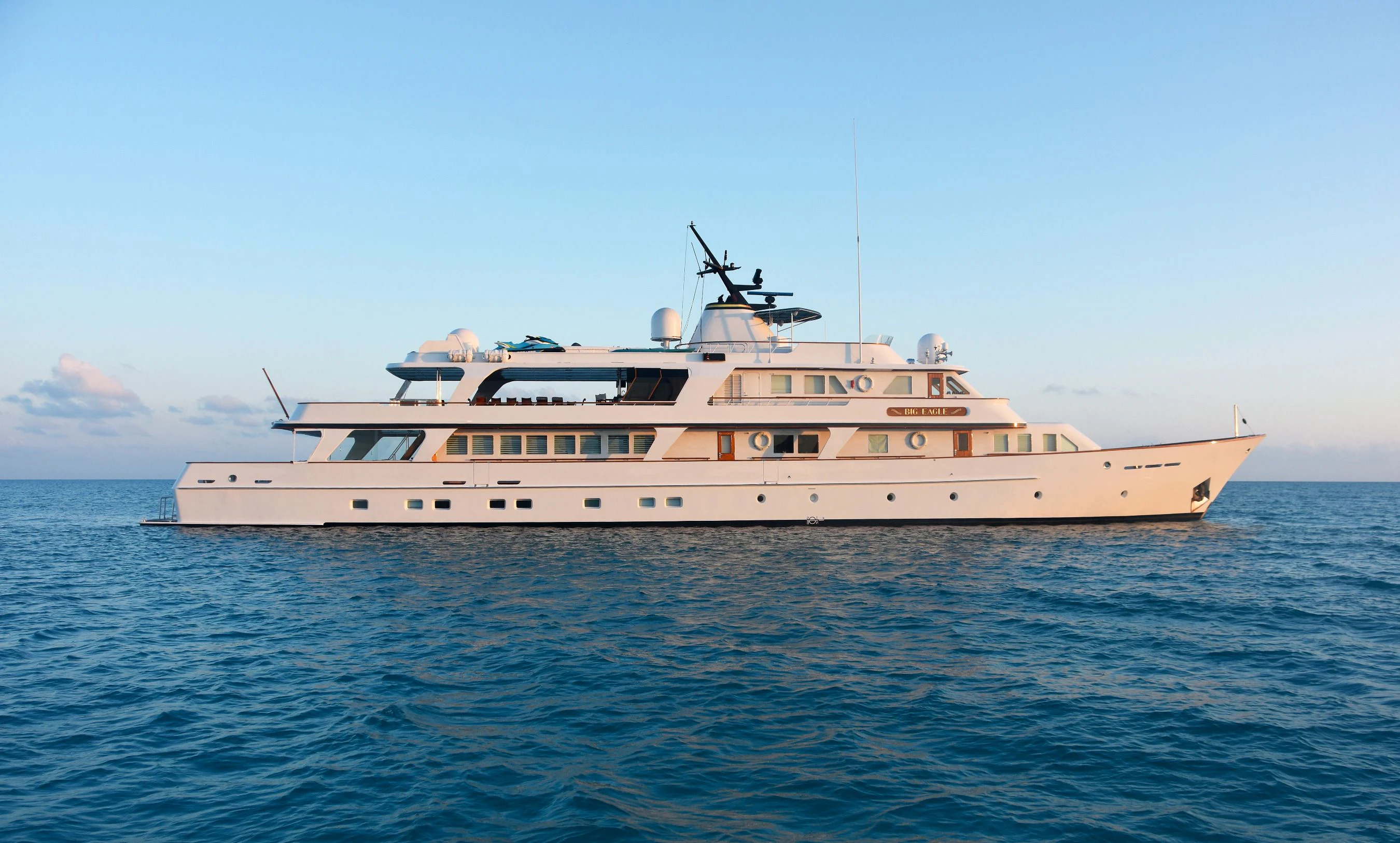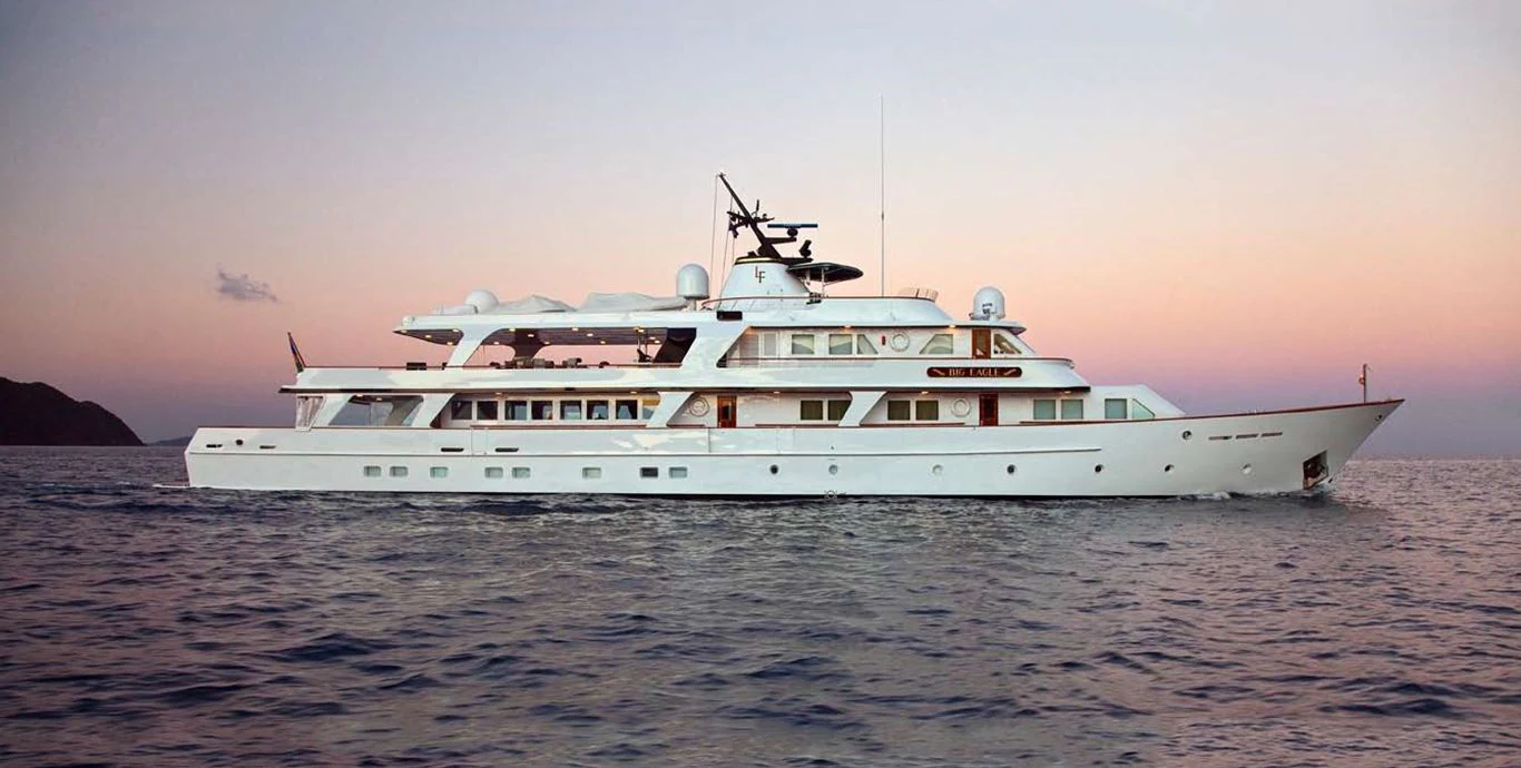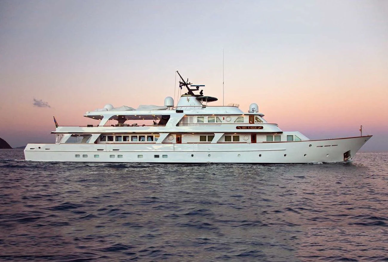Behold the grandeur of BIG EAGLE, a majestic motor superyacht that exemplifies luxury and elegance. Constructed by the esteemed Mie Zosen shipyard in Japan in 1980, this custom-built vessel has been meticulously maintained and underwent an extensive refit in 2017 to ensure its timeless appeal. Stretching a significant 172 feet (52.43 meters) in length with a beam of over 26 feet (7.8 meters), BIG EAGLE is an impressive sight on the water, her steel hull gleaming under the sun's rays.