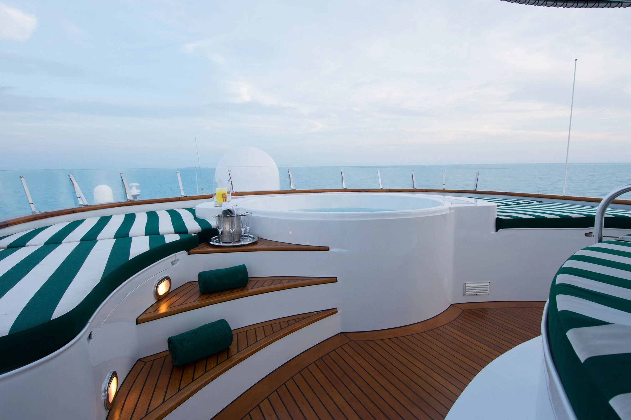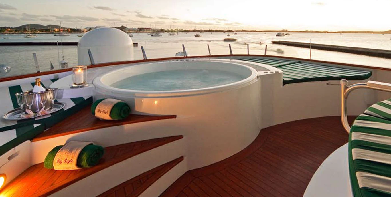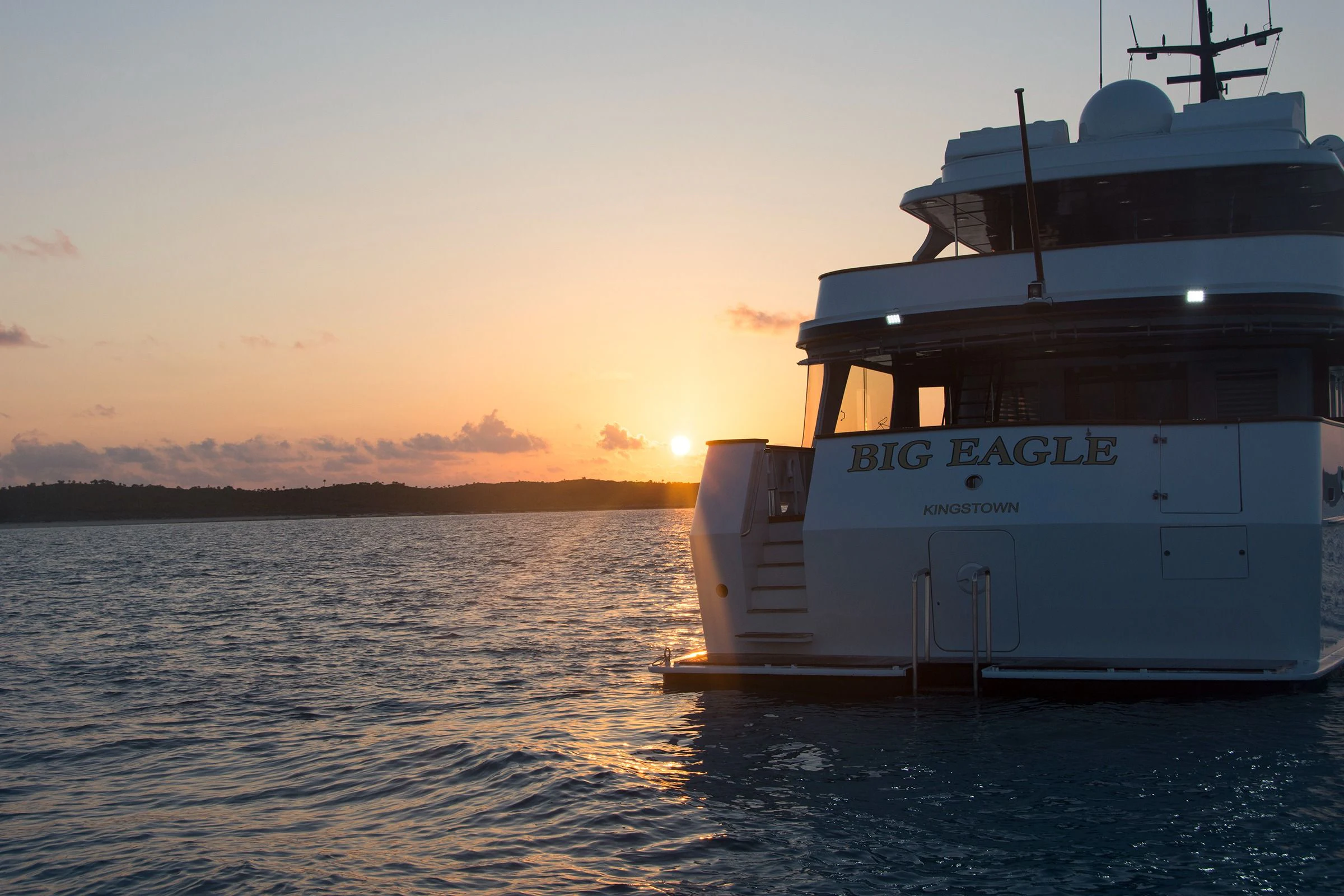 The exterior design of BIG EAGLE is nothing short of breathtaking, capturing the essence of sophisticated seafaring with its streamlined silhouette and expansive deck areas. The sundeck beckons for sun-soaked relaxation, complete with plush loungers and a luxurious Jacuzzi - an idyllic spot for unwinding while taking in panoramic ocean views. Alfresco dining areas provide impeccable settings for enjoying gourmet meals against the backdrop of stunning seascapes, making every meal onboard a memorable experience.
