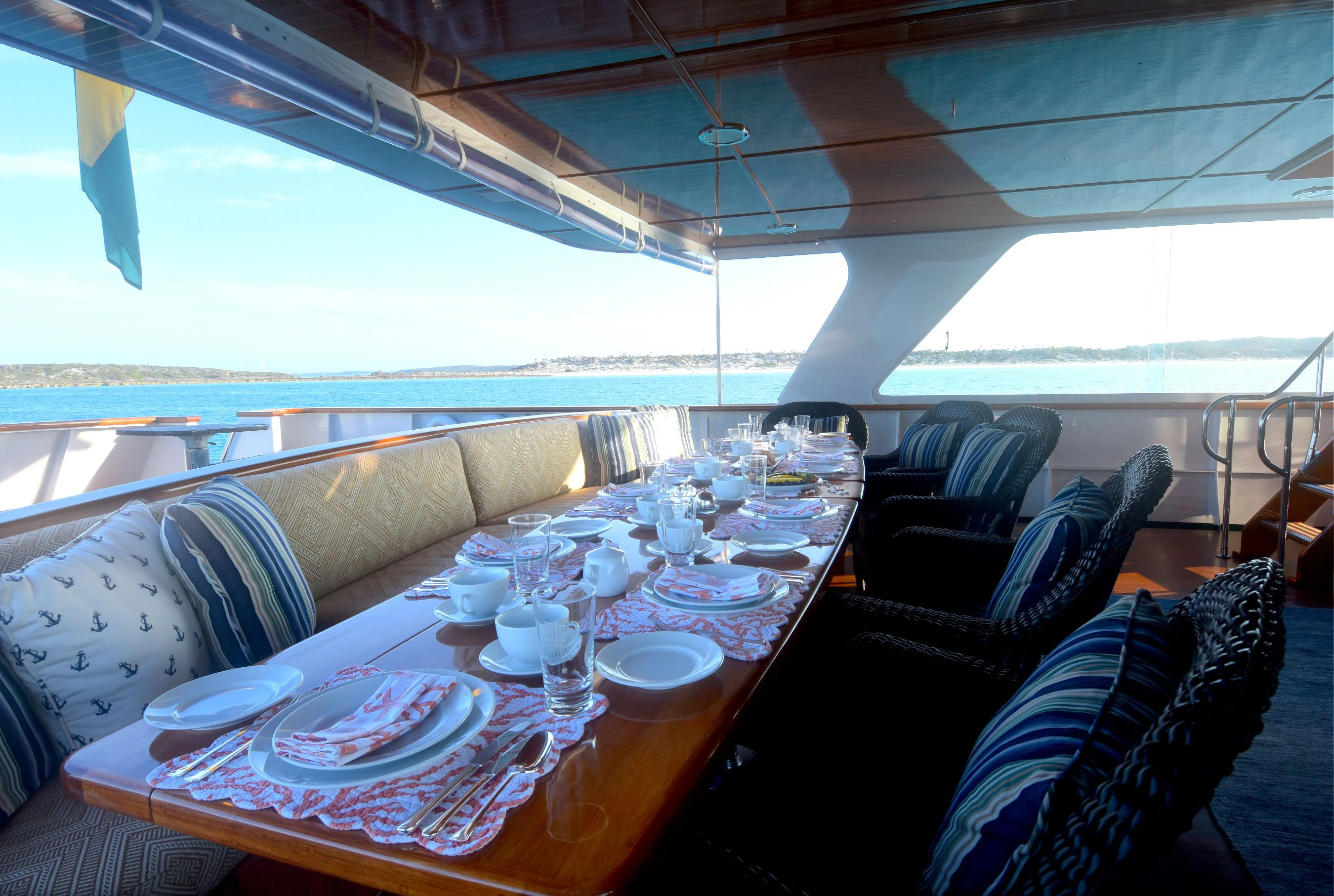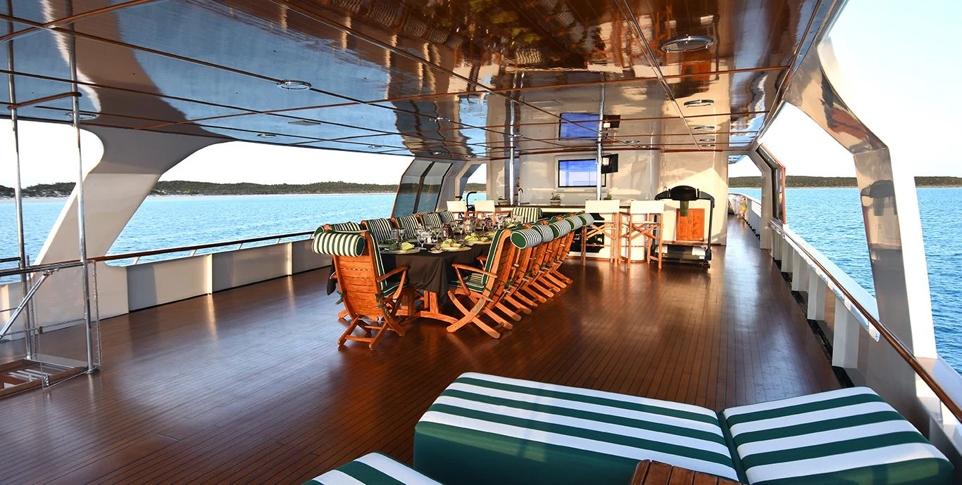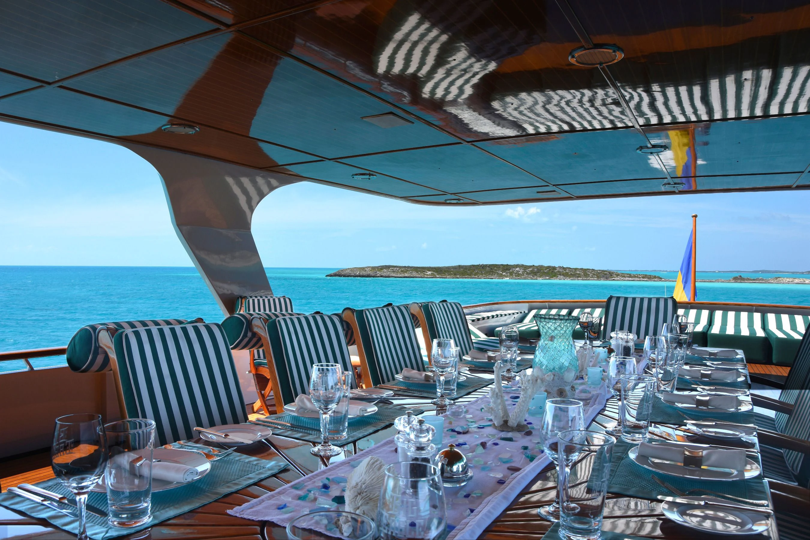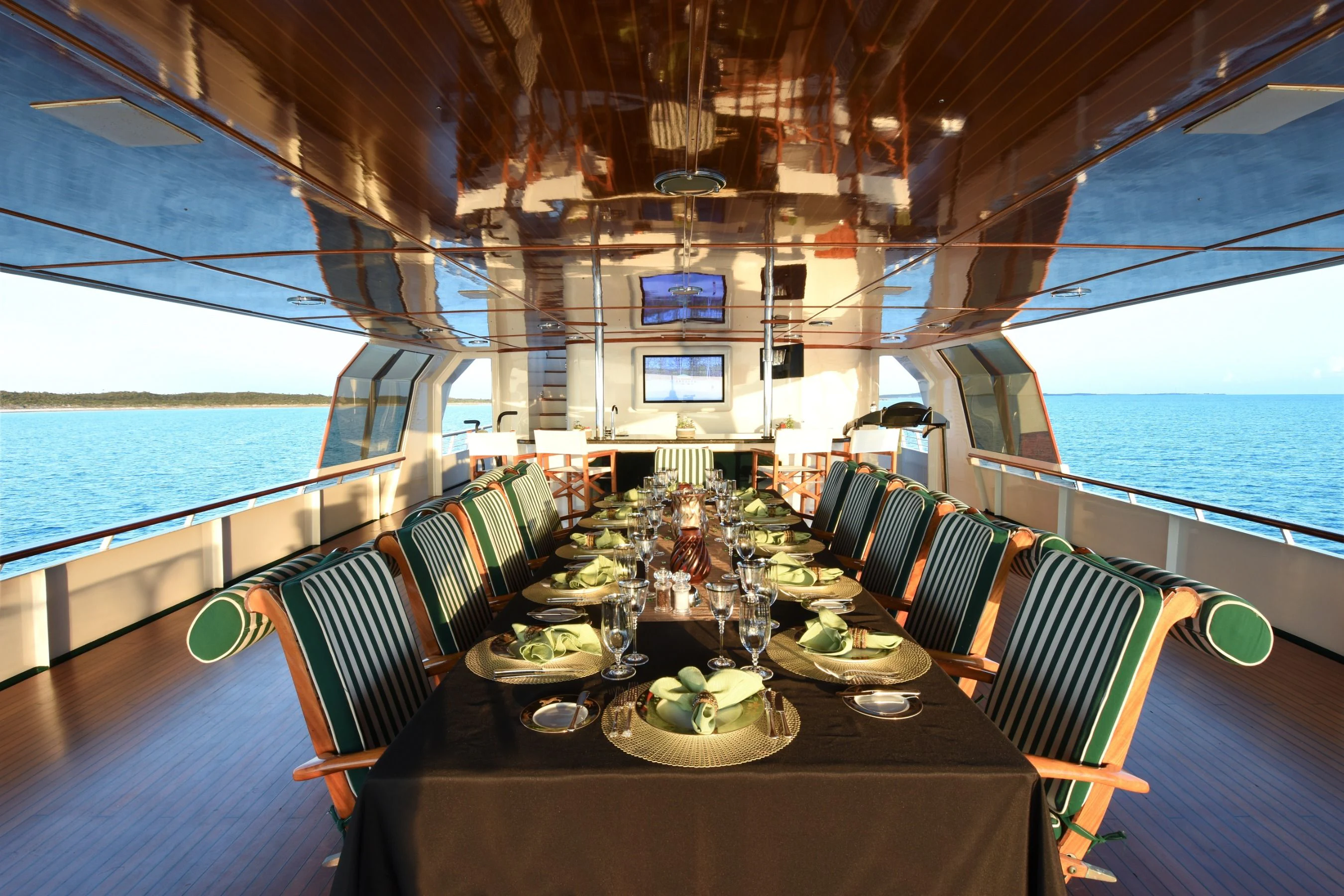 The exterior design of BIG EAGLE is nothing short of breathtaking, capturing the essence of sophisticated seafaring with its streamlined silhouette and expansive deck areas. The sundeck beckons for sun-soaked relaxation, complete with plush loungers and a luxurious Jacuzzi - an idyllic spot for unwinding while taking in panoramic ocean views. Alfresco dining areas provide impeccable settings for enjoying gourmet meals against the backdrop of stunning seascapes, making every meal onboard a memorable experience.