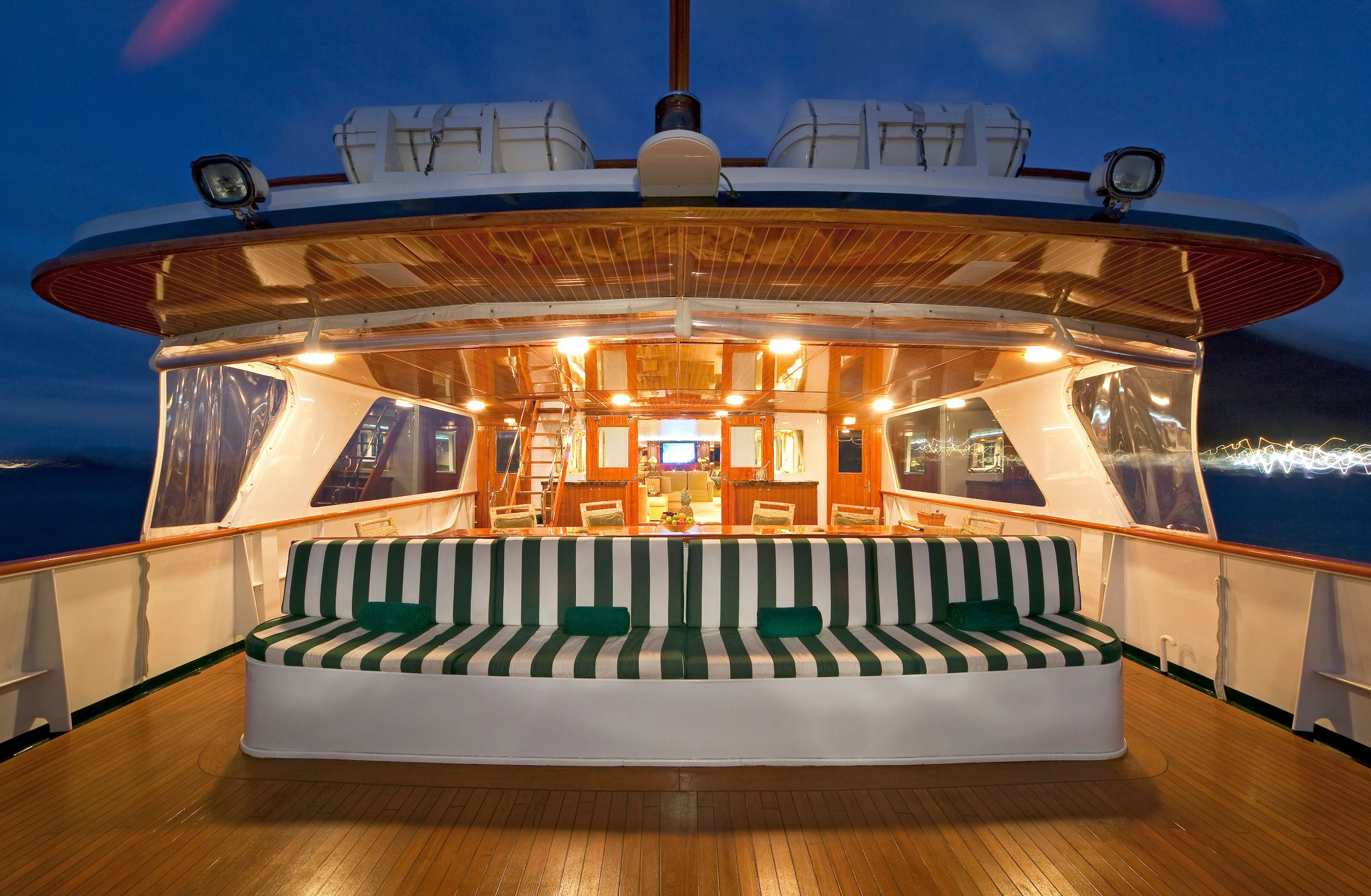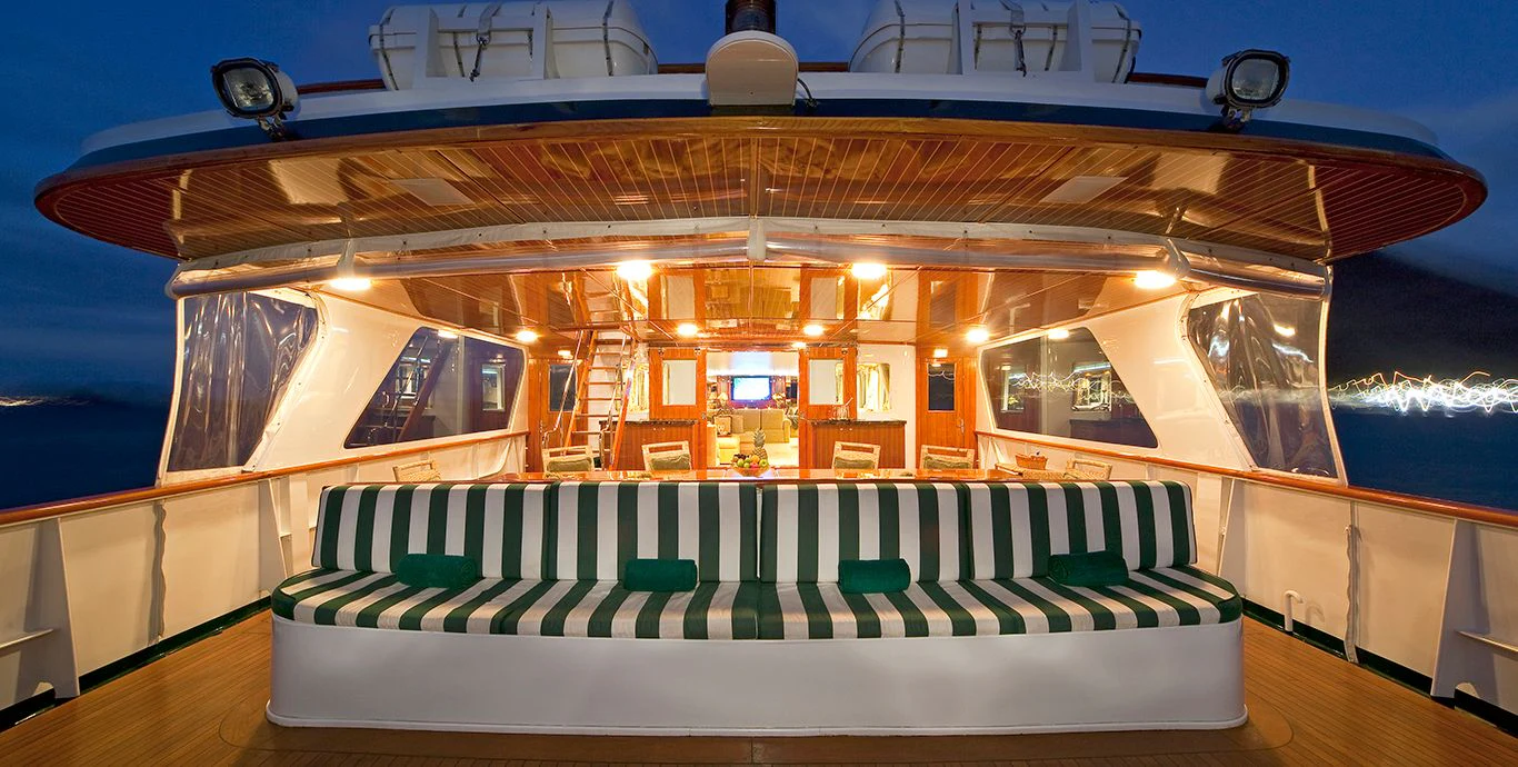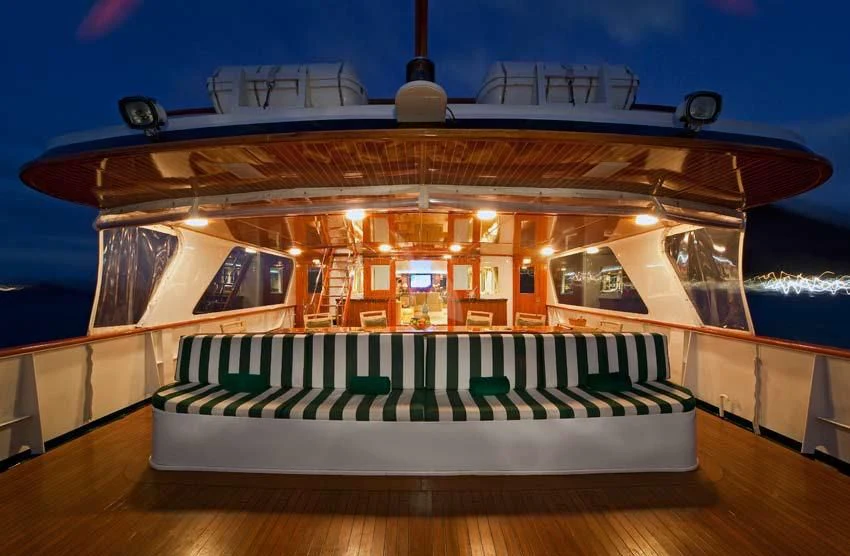Underneath its luxurious façade lies formidable power; she’s powered by two Detroit Diesel engines each producing 900 horsepower enabling it cruise smoothly at speeds up to 10 knots reaching maximum speeds up to 12 knots.