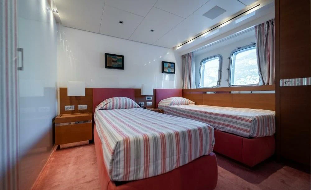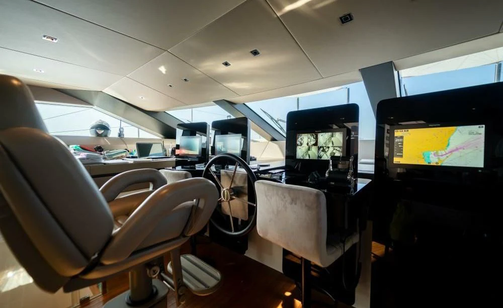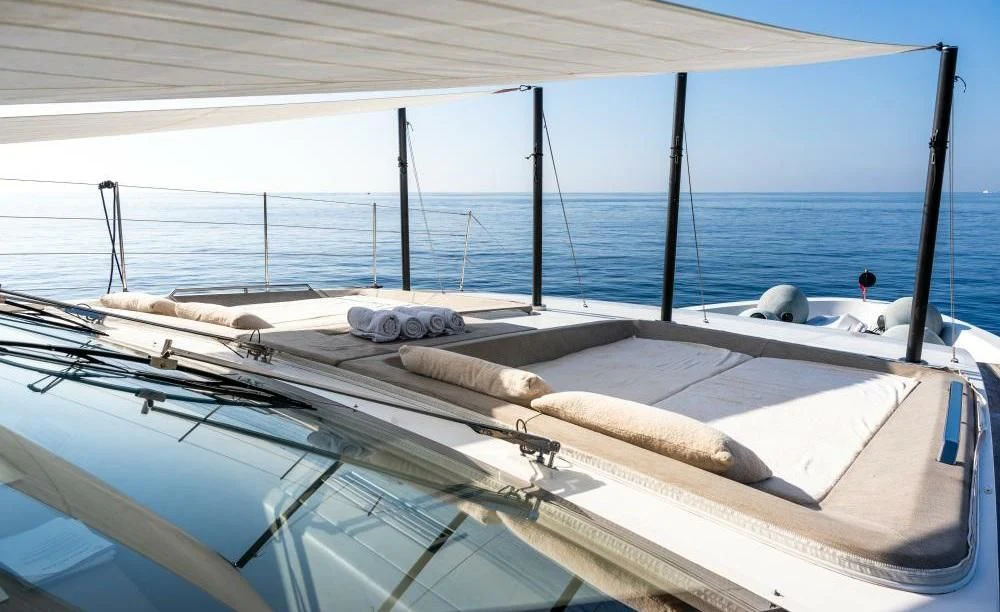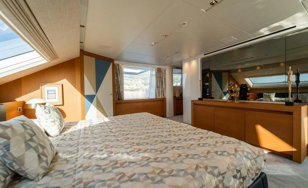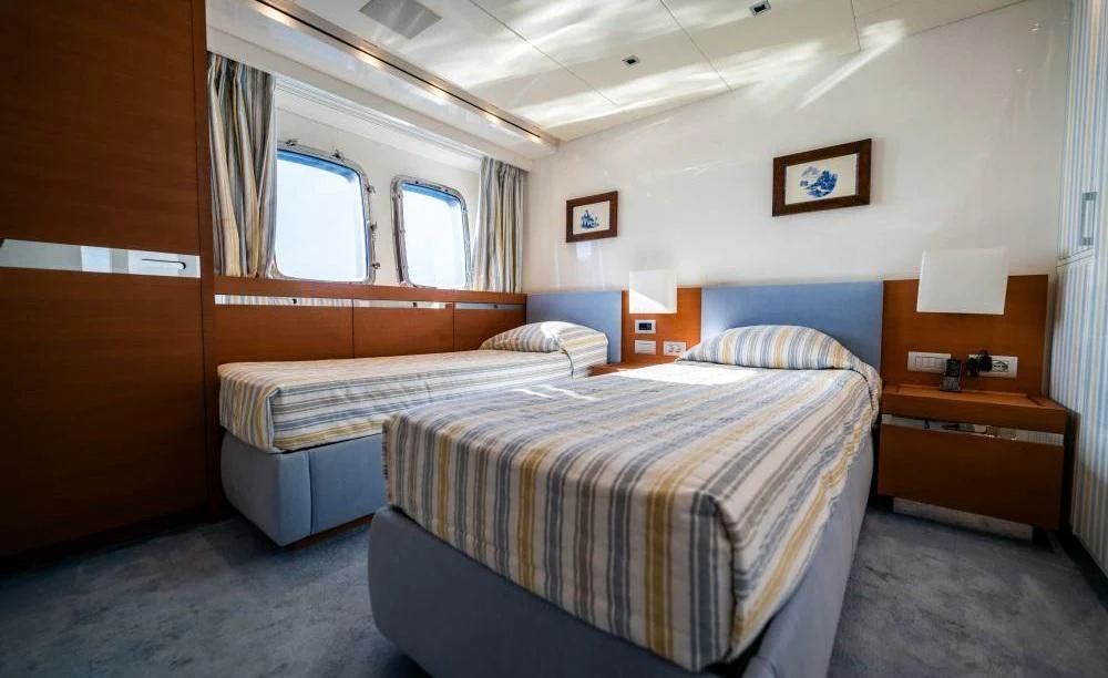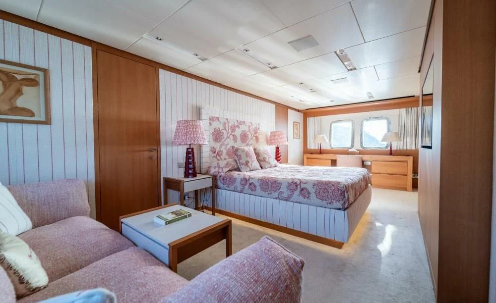 Step inside BLUES and be prepared to be enthralled by its luxurious interiors that exude warmth and opulence. Designed meticulously with keen attention paid to every minute detail, the interior style seamlessly blends contemporary design elements with timeless elegance. A soothing color palette dominated by shades of cream and beige interspersed with touches of BLUES creates an inviting ambiance throughout this floating paradise. Accommodating up to 10 guests in utmost comfort, BLUES features five beautifully appointed cabins including a lavish master stateroom boasting floor-to-ceiling windows offering breathtaking views along with four additional staterooms each reflecting unique charm.
