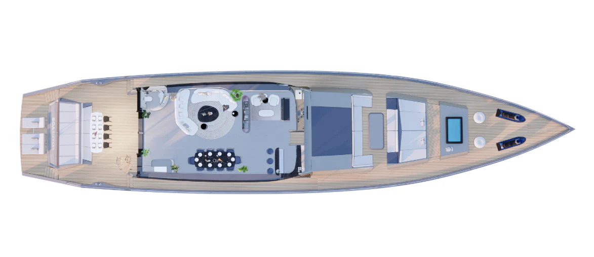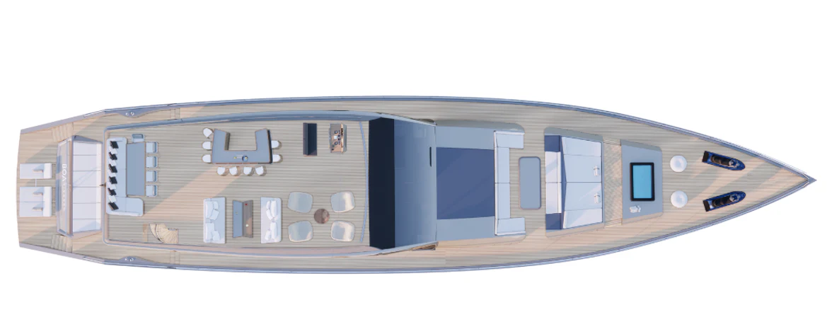 The BOA KINGDOM represents a harmonious blend of traditional materials and modern design, offering an eco-conscious and luxurious sailing experience. This motorsailer is poised to make a significant impact in the world of luxury yachting.