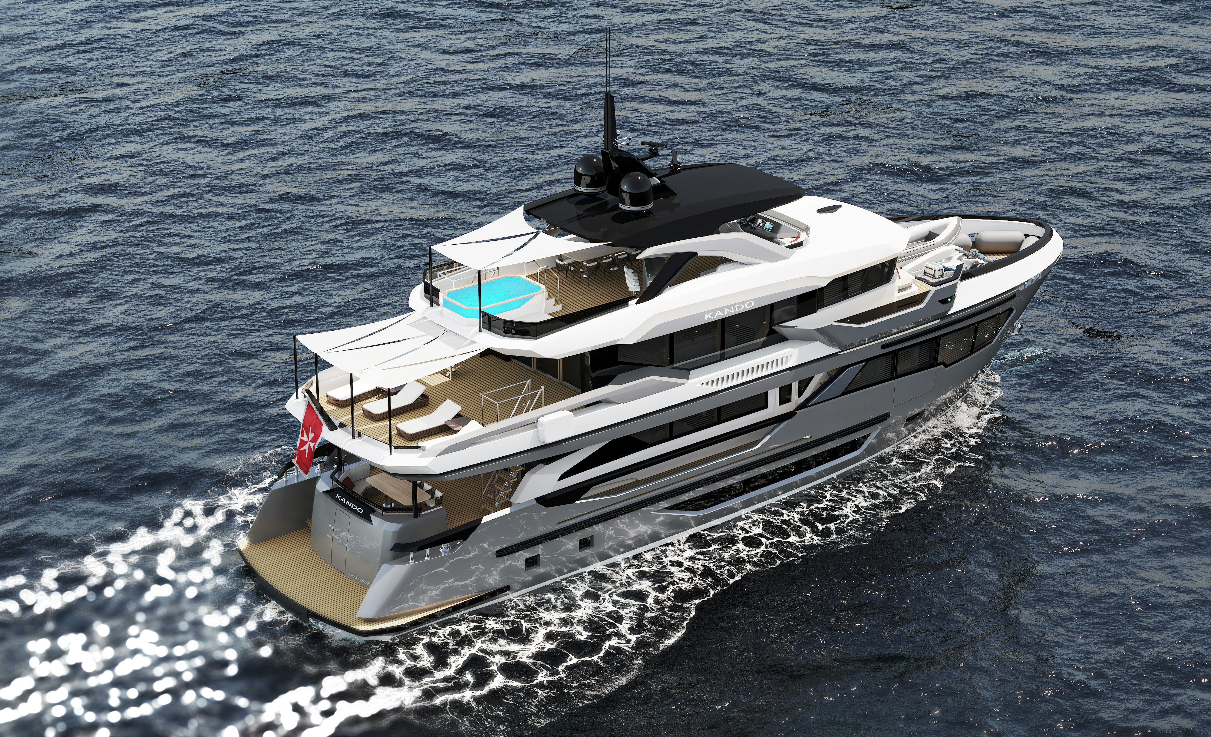 The 110’ (33.53m) KANDO 110 is a versatile long-range explorer yacht ready to take you to remote destinations in ultimate comfort. With delivery available in just 12 months, she’s as practical as she is luxurious. Her 27-square-meter master suite boasts a walk-in closet, a private office, and a spa-like ensuite. Outside, her teak decks are perfect for alfresco dining and soaking in panoramic views. Thoughtfully designed and beautifully finished, KANDO 110 is built for adventures big and small.