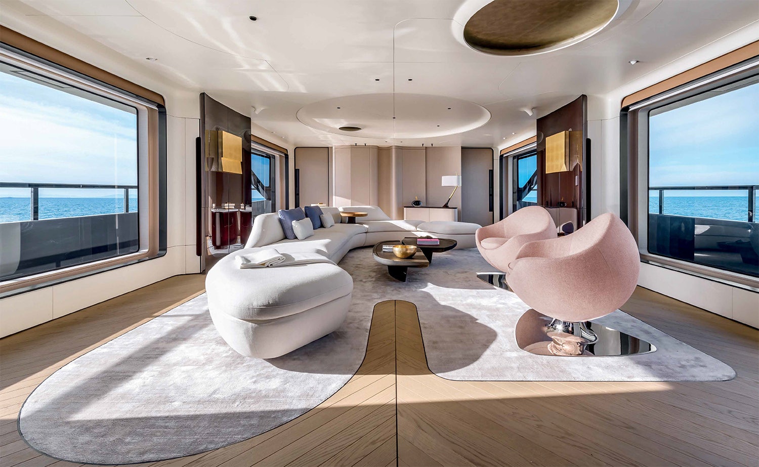 Pioneering use of carbon fiber lamination helps to create a lighter yacht and reduces natural roll by up to 15%.