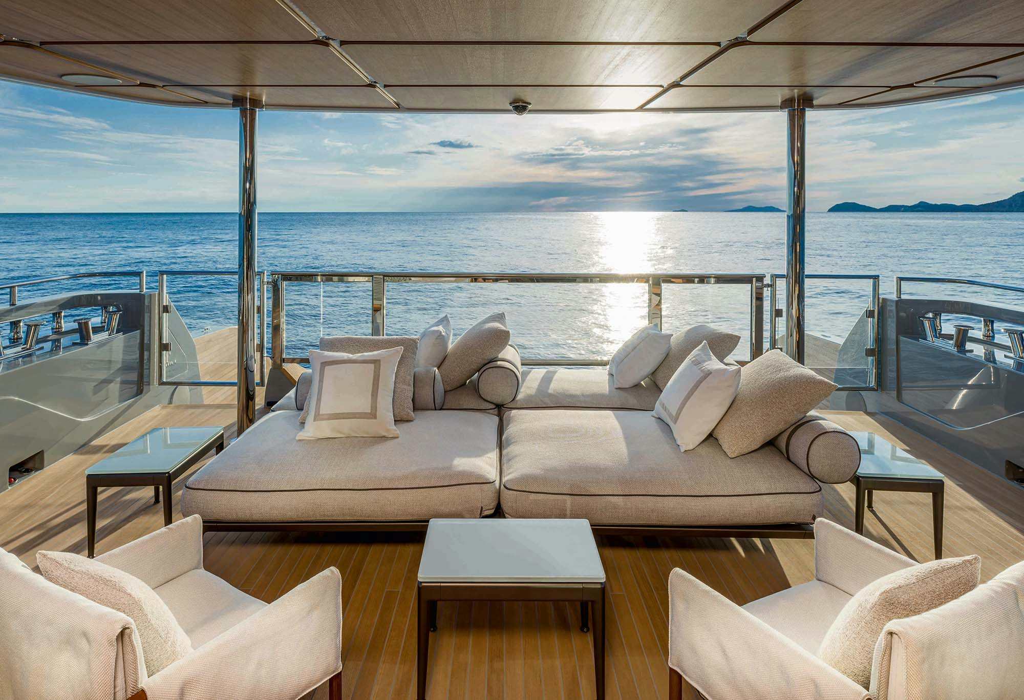 Characterized by elegant deck areas and sumptuous interiors that enjoy a seamless connection with the sea, the Navetta 38 is a testament to the talents of architects Filippo Salvetti and ACPV Architects Antonio Citterio Patricia Viel and the interior design team at Custom Line Atelier. This triumph of style boasts a 2,800nm range and accommodates her guests in five spacious staterooms including an on-deck master suite.