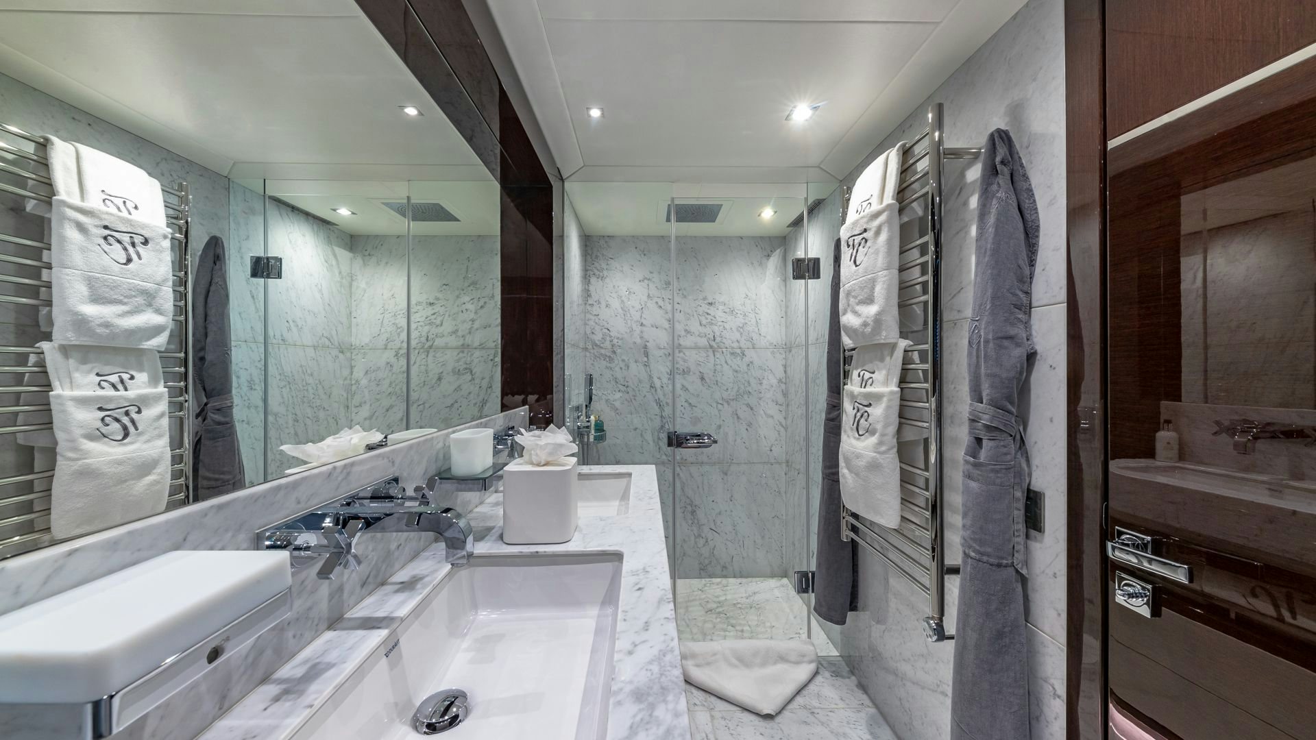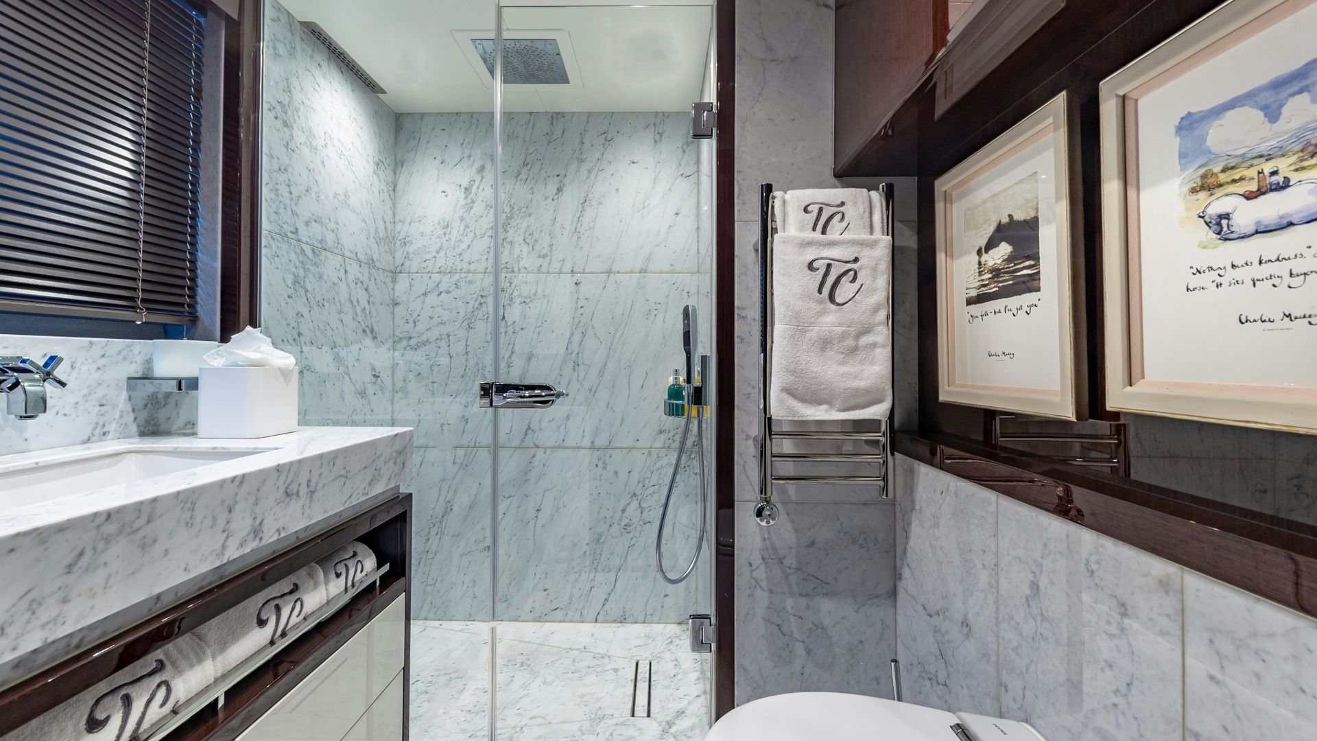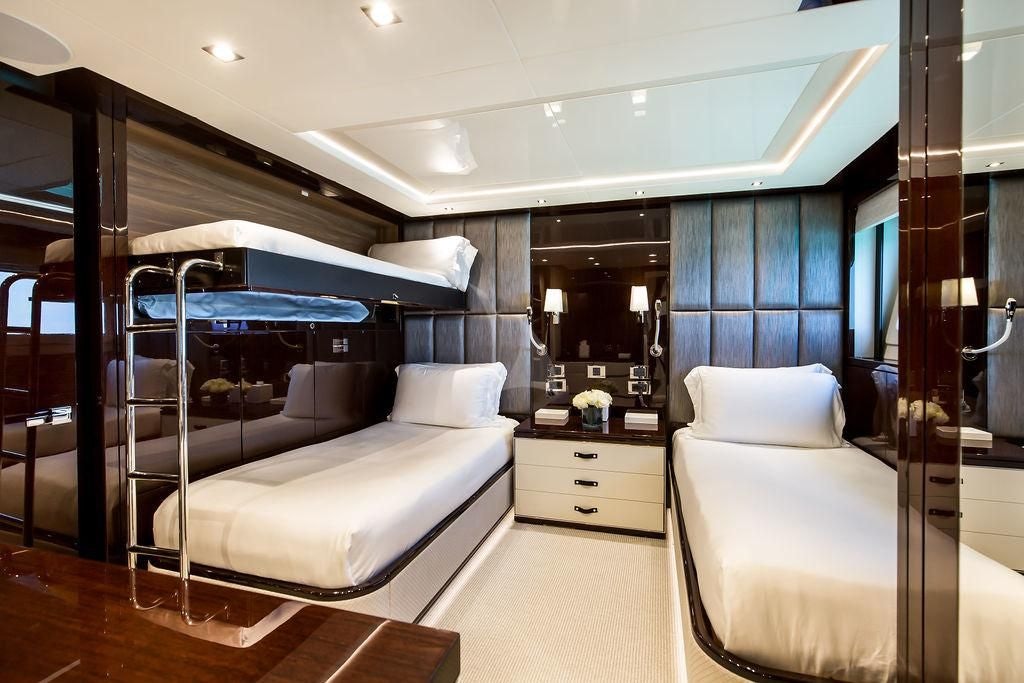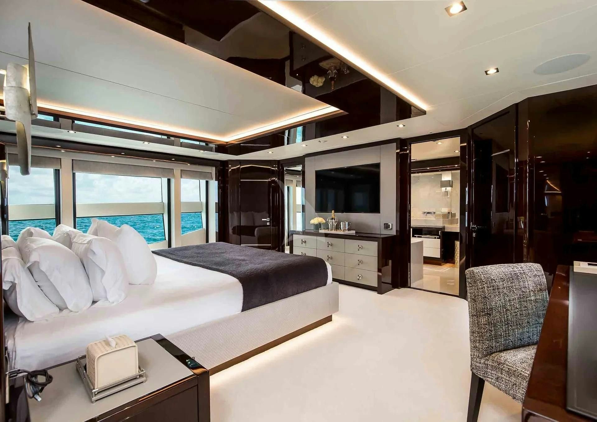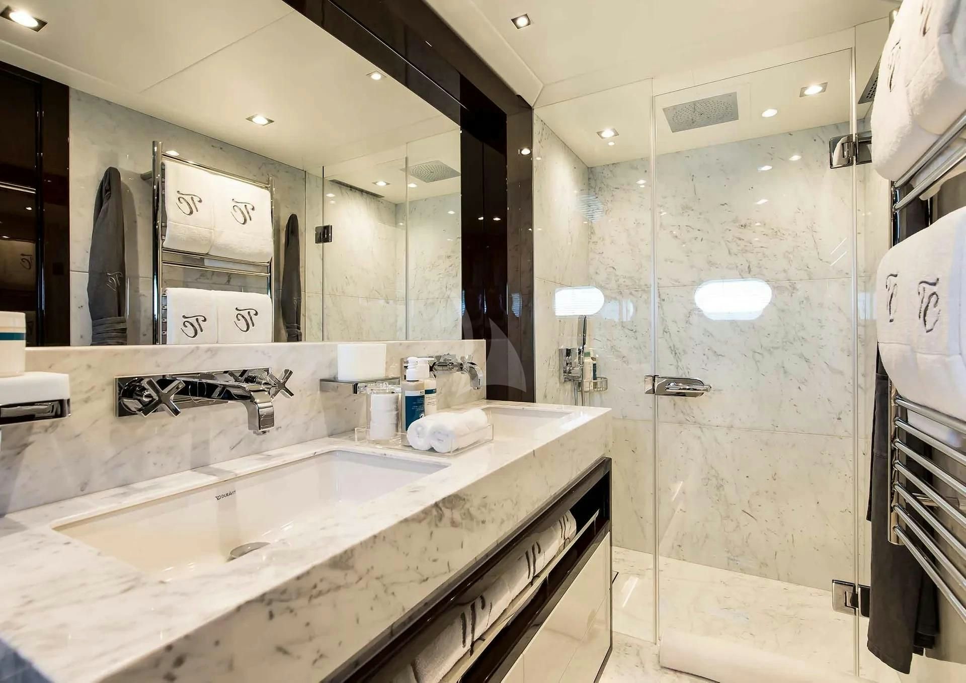 Step inside TC and be prepared to be swept off your feet by her stunning interior design. With accommodations for up to ten guests across five beautifully appointed cabins, comfort is guaranteed aboard this superyacht. The master stateroom stands out for its sophistication and grandeur - it's truly a haven of tranquility at sea. The remaining guest cabins are equally luxurious, ensuring all aboard enjoy their stay in utmost comfort.