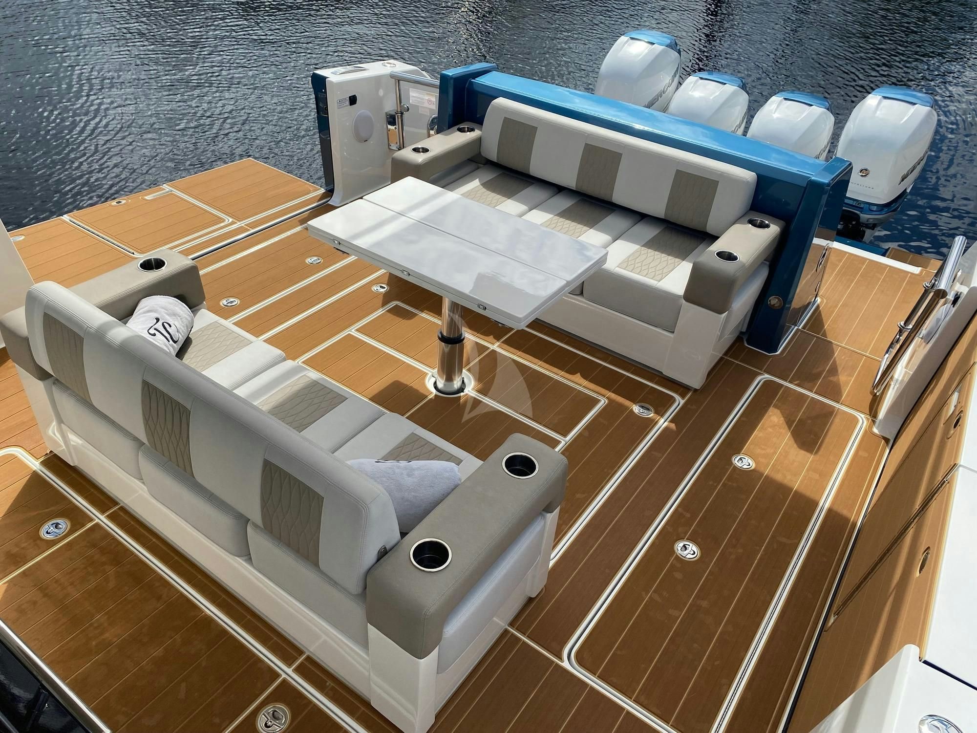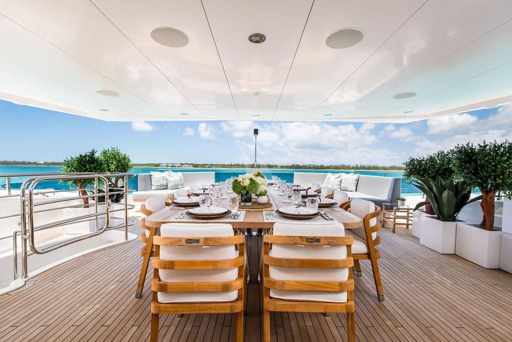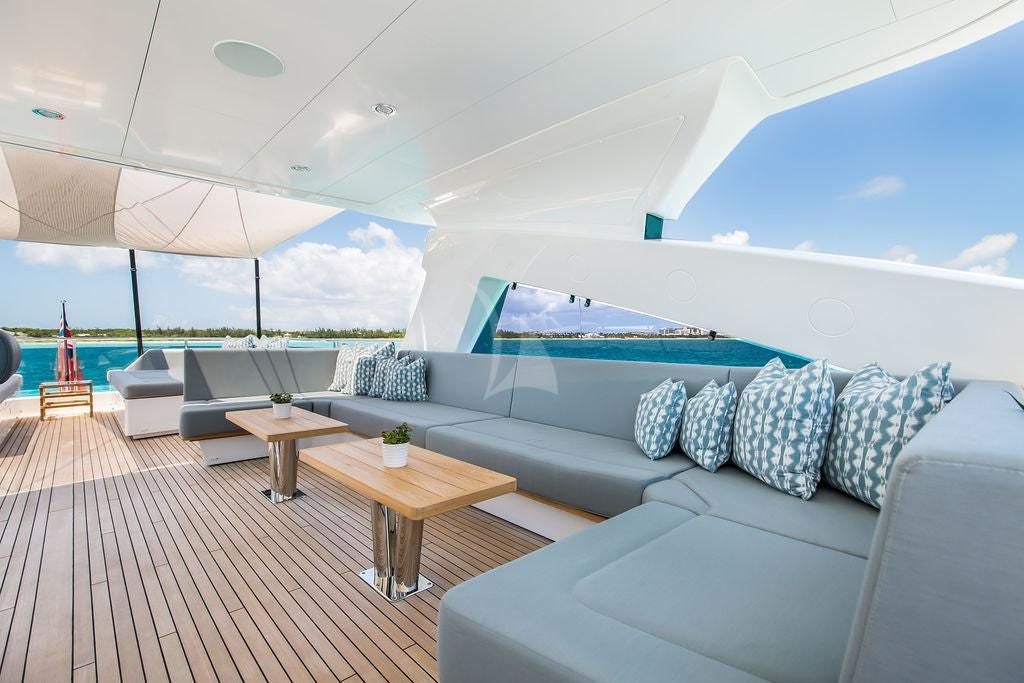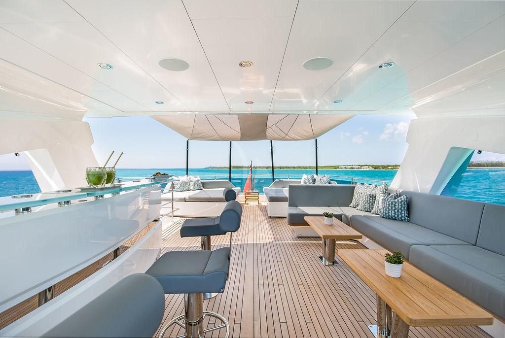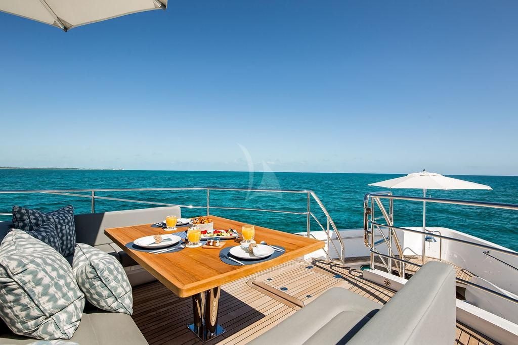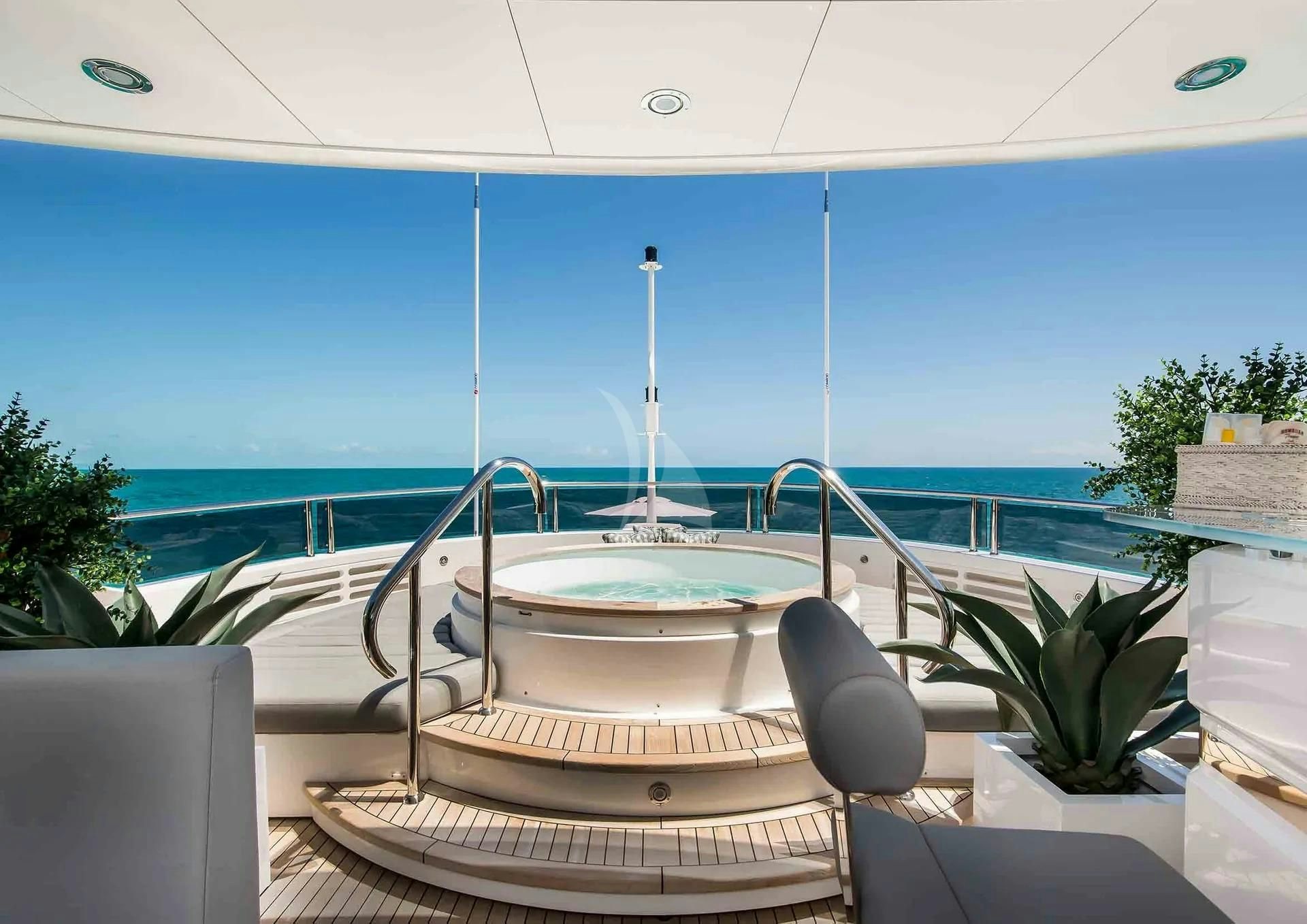 The exterior design of TC is simply breathtaking - sleek lines, gleaming GRP hull material, and modern aesthetics that radiate elegance from every angle. Her expansive sundecks are ideal for soaking up the sun or enjoying alfresco dining with panoramic ocean views. The Jacuzzi on deck adds an extra touch of luxury, inviting guests to unwind in style while savoring their cruising experience.