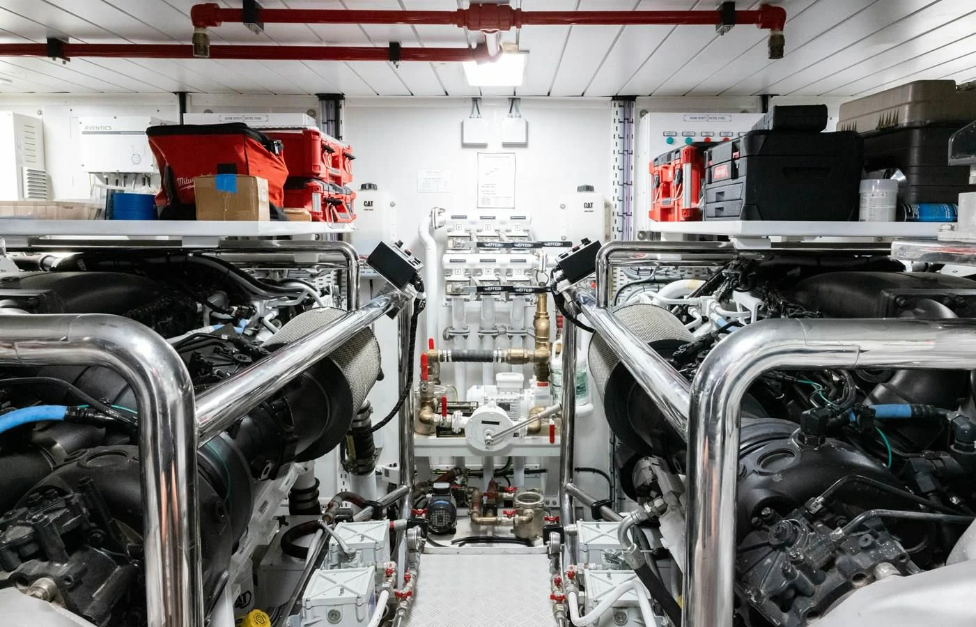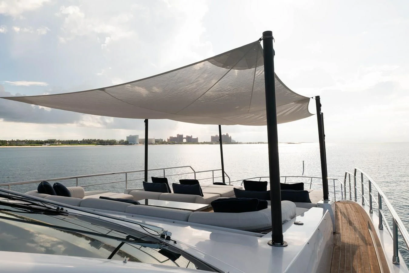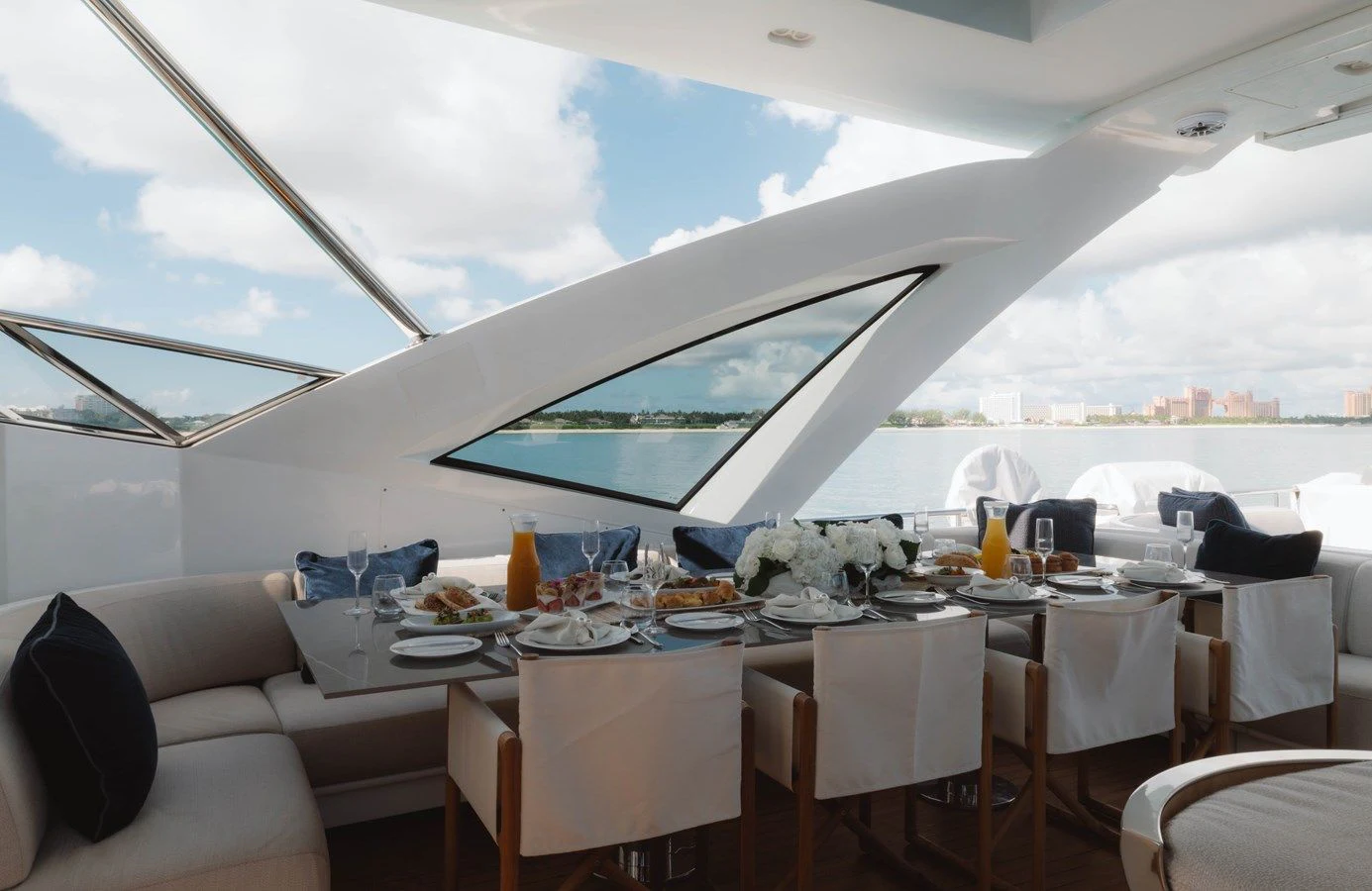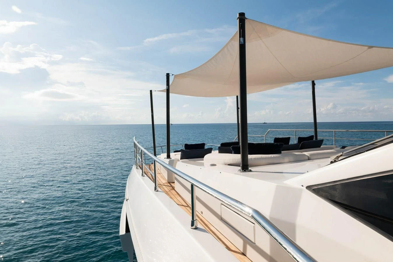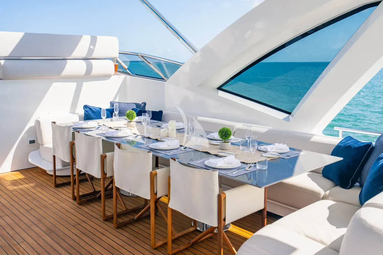 CARPE DIEM's exterior spaces are designed to provide an unrivaled outdoor living experience. The flybridge is home to expansive sundecks, perfect for soaking up the sun while cruising at a comfortable speed of 21 knots or reaching its maximum speed of 26.5 knots. The beam measures an impressive 22 feet and 12 inches, offering ample space for alfresco dining areas where guests can savor gourmet meals under the stars. Notable exterior features include state-of-the-art navigation systems and robust twin MTU engines (16V 2000 M86) each delivering a powerful output of 2200 hp /1641 kW.