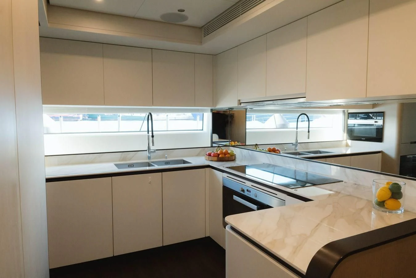 The accommodations on CARPE DIEM offer unparalleled comfort and privacy. With five well-appointed cabins capable of hosting up to ten guests overnight, everyone onboard will have their personal sanctuary where they can retreat at any time during their voyage. The master stateroom stands out with its lavish en-suite bathroom, spacious walk-in closet, and breathtaking panoramic views - truly embodying what it means to seize the day!