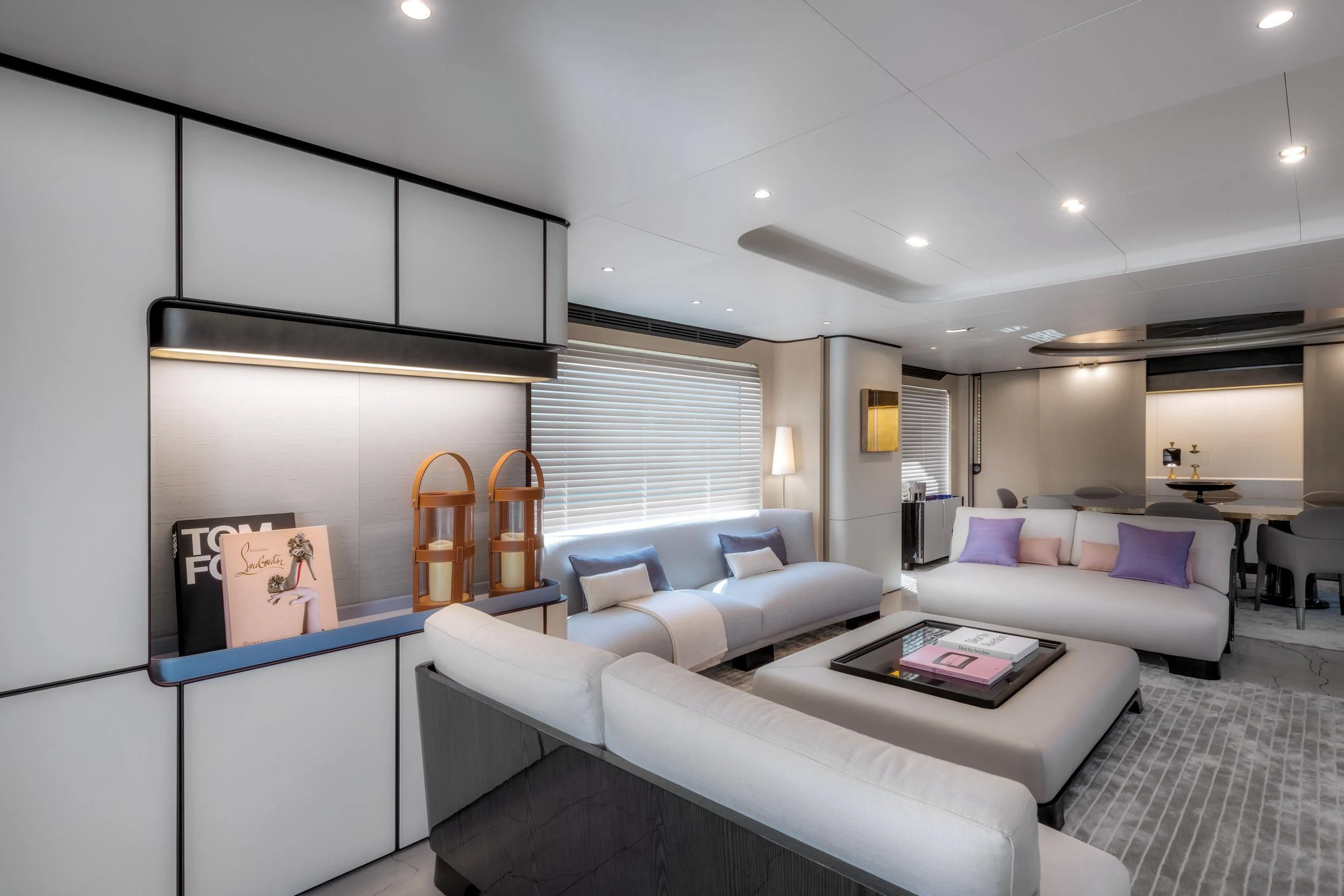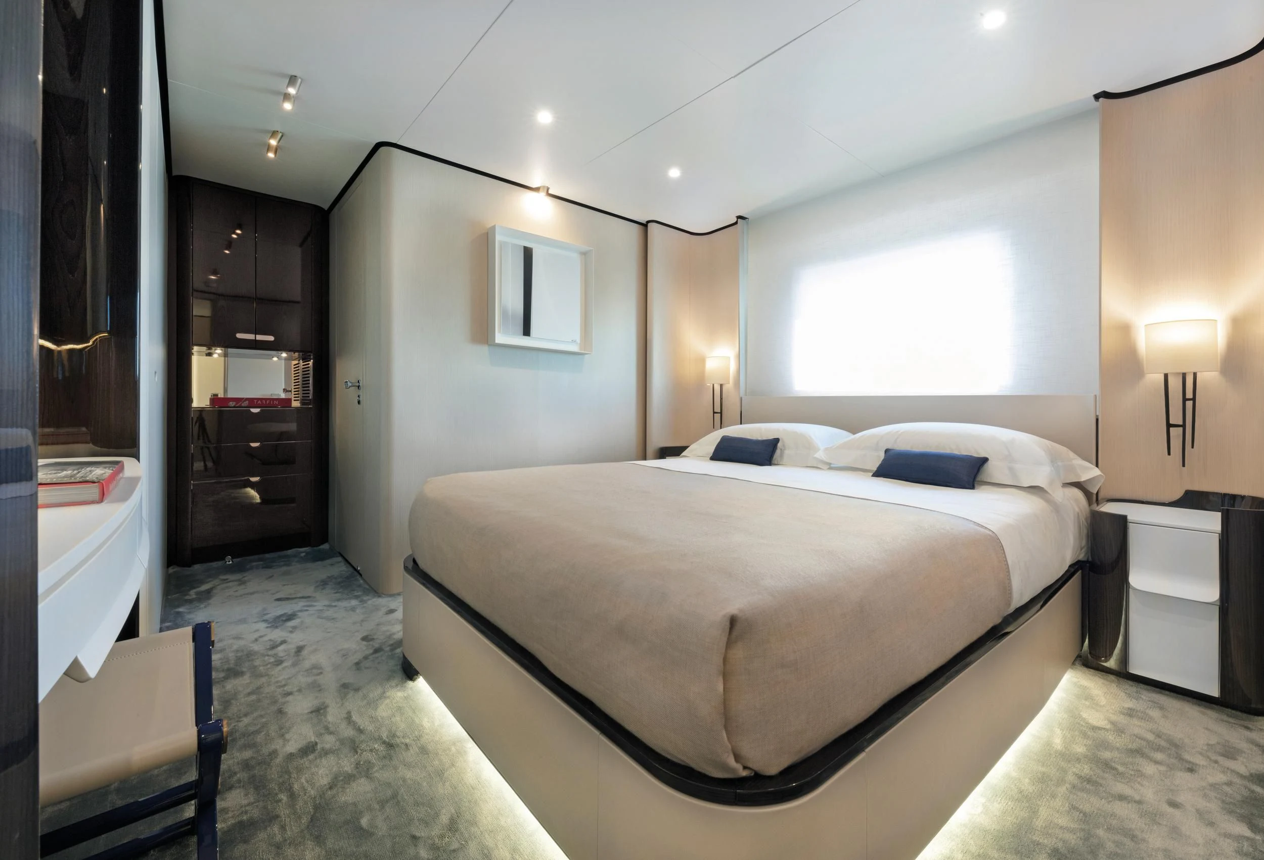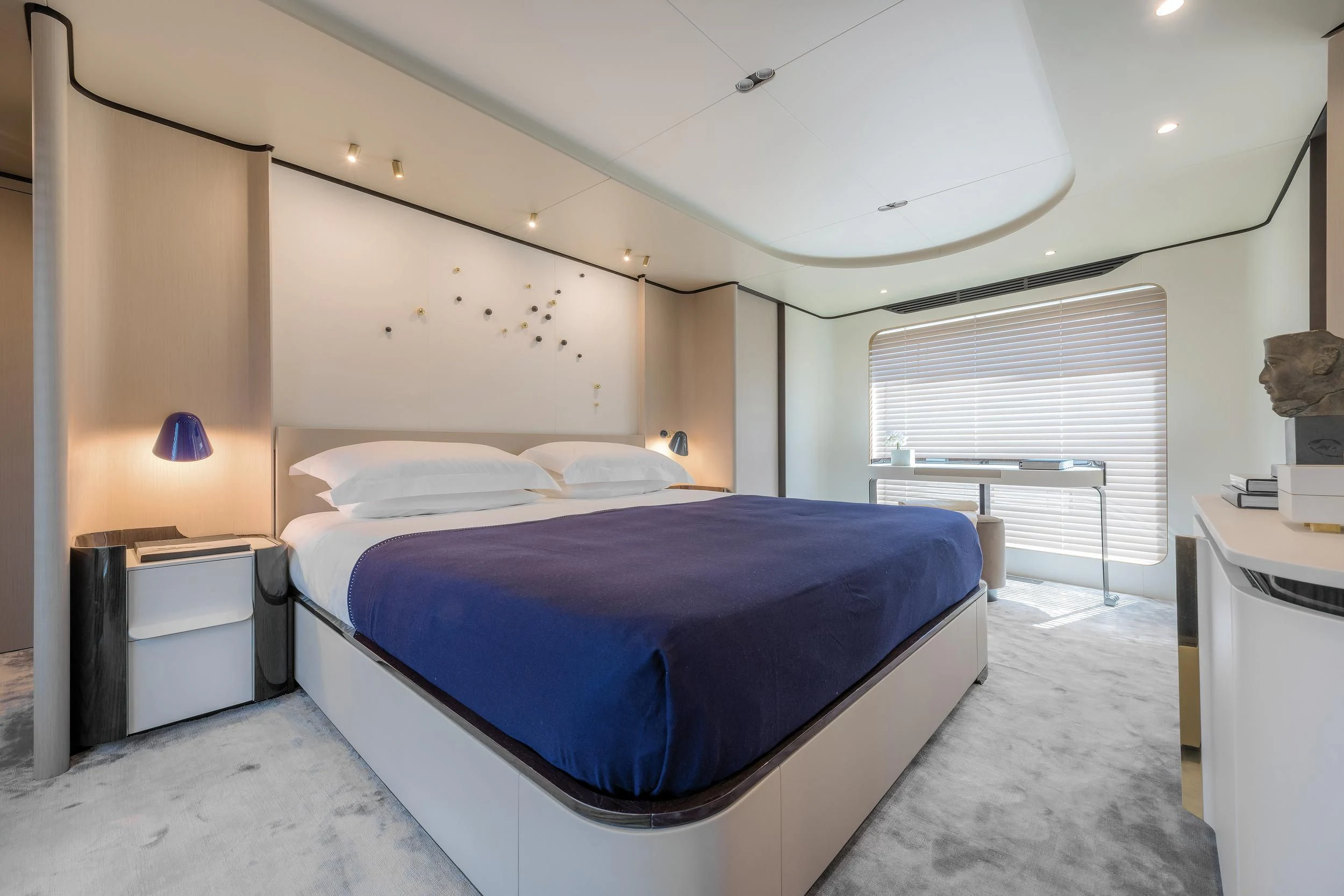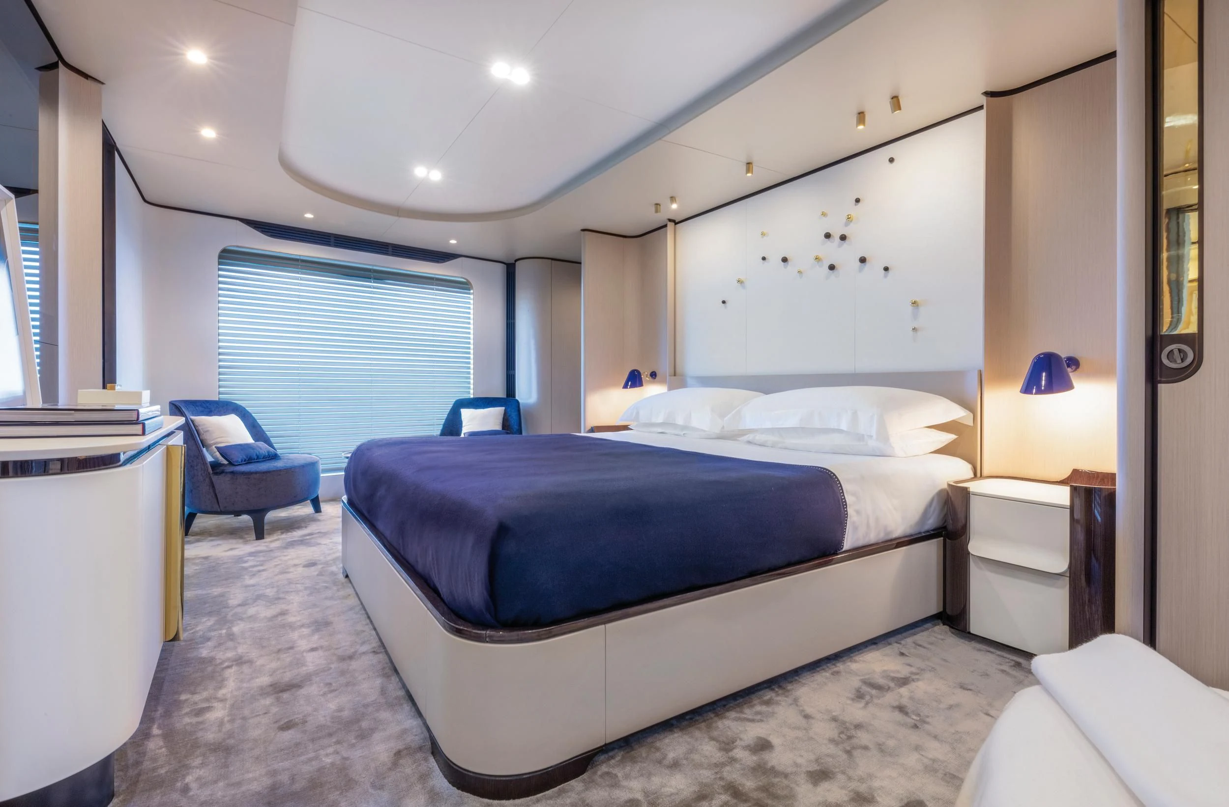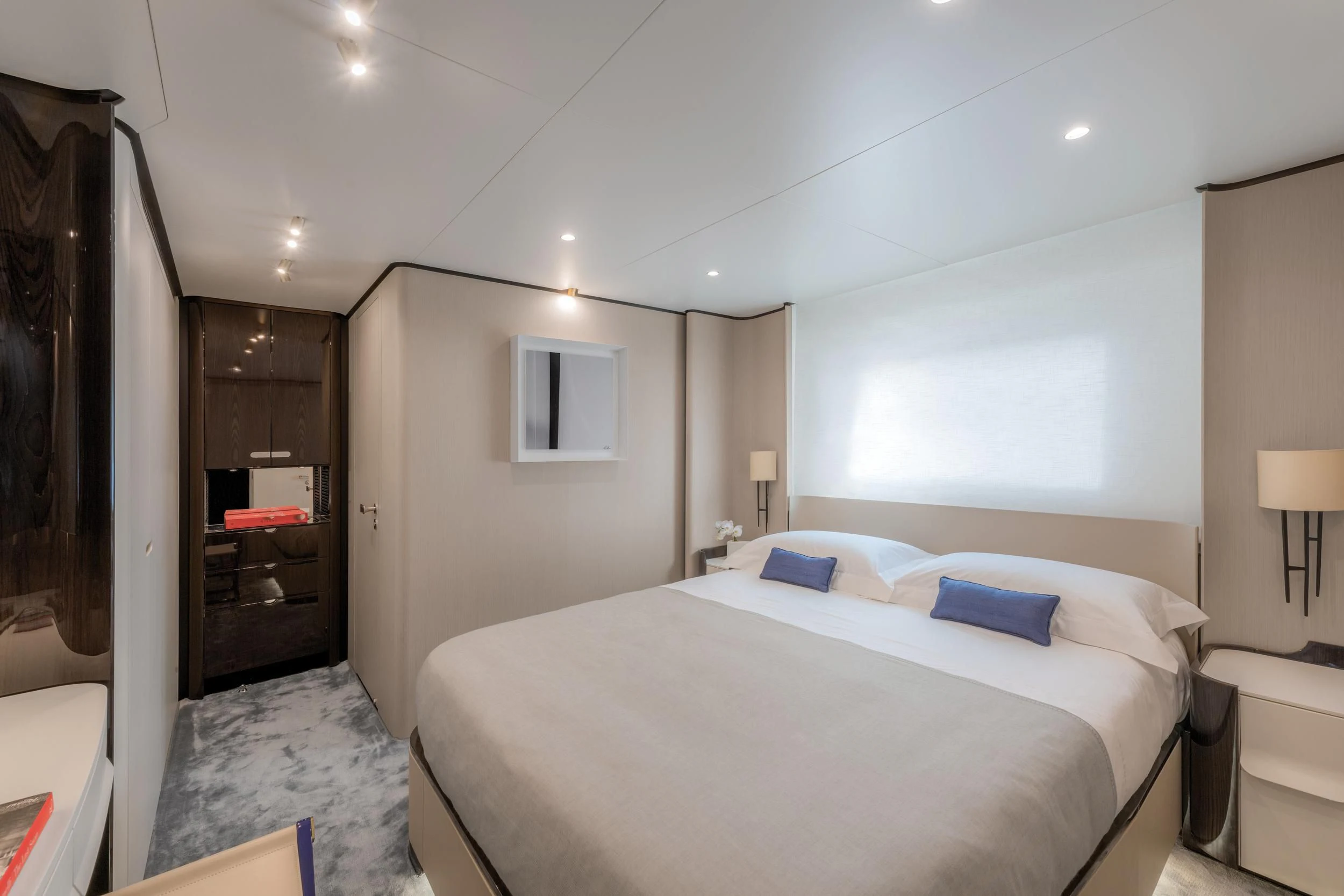 Step inside CARPE DIEM, and you'll be greeted by an interior that exudes understated luxury. Every detail has been meticulously crafted to create an ambiance that is both welcoming and refined. The color palette is a harmonious blend of neutral tones accentuated by tasteful pops of color, creating a visual feast for the eyes. Unique design elements are scattered throughout the yacht, adding character and charm to each room.