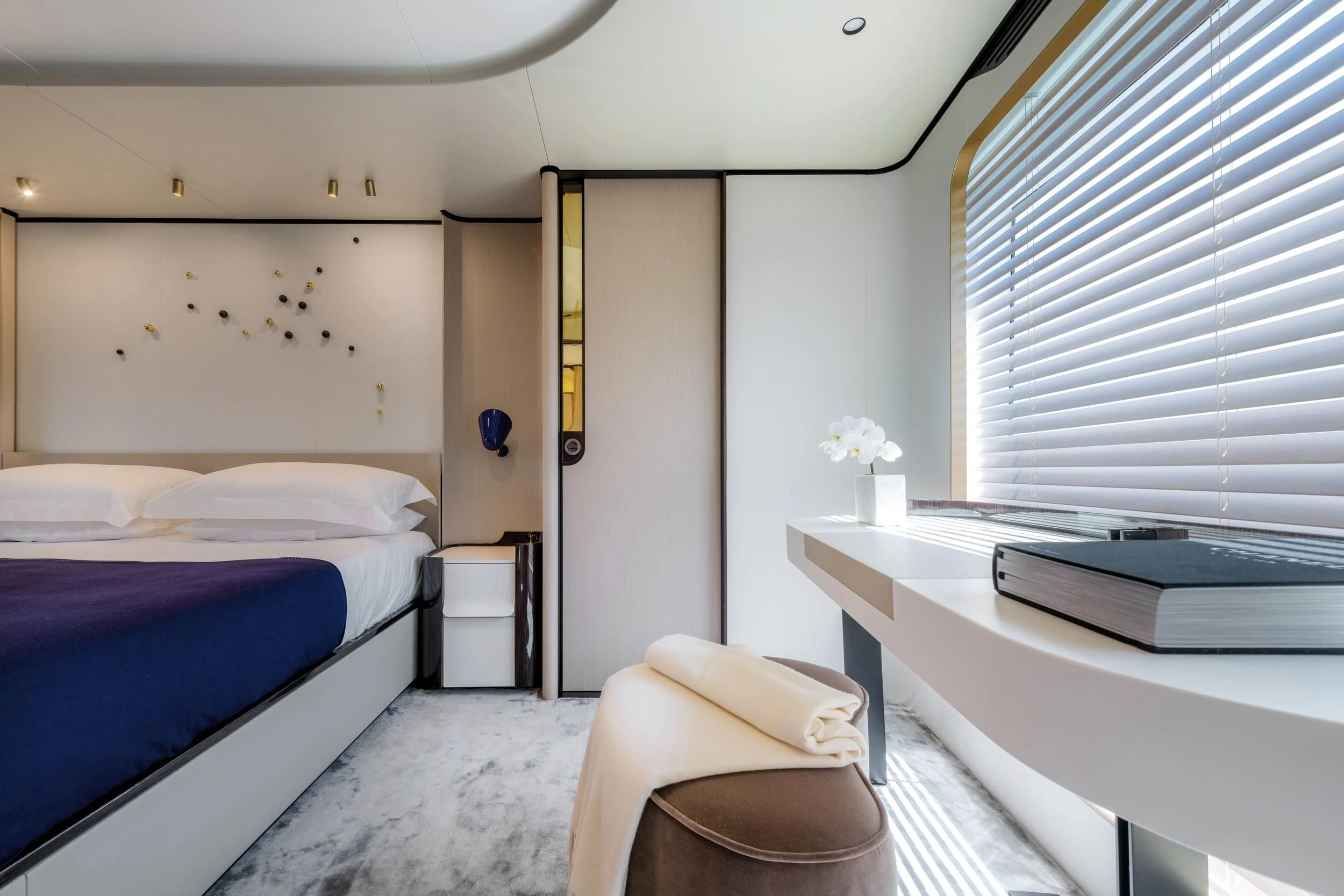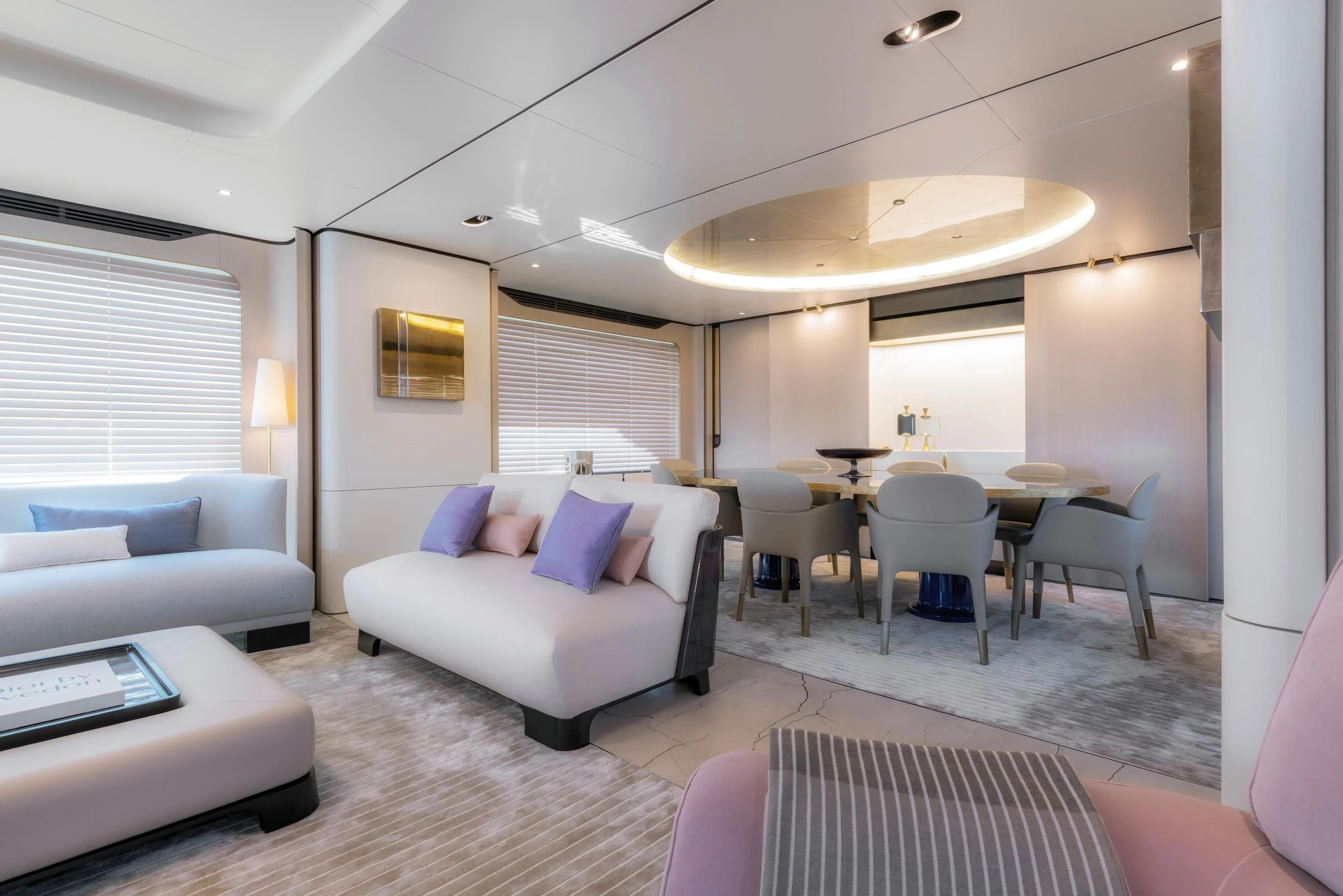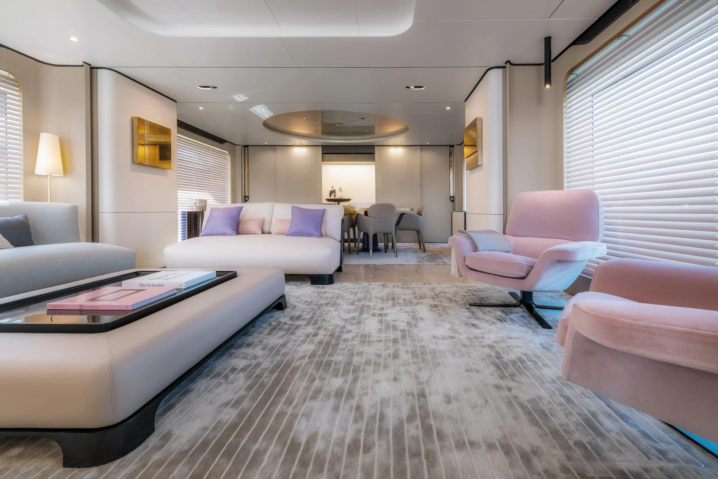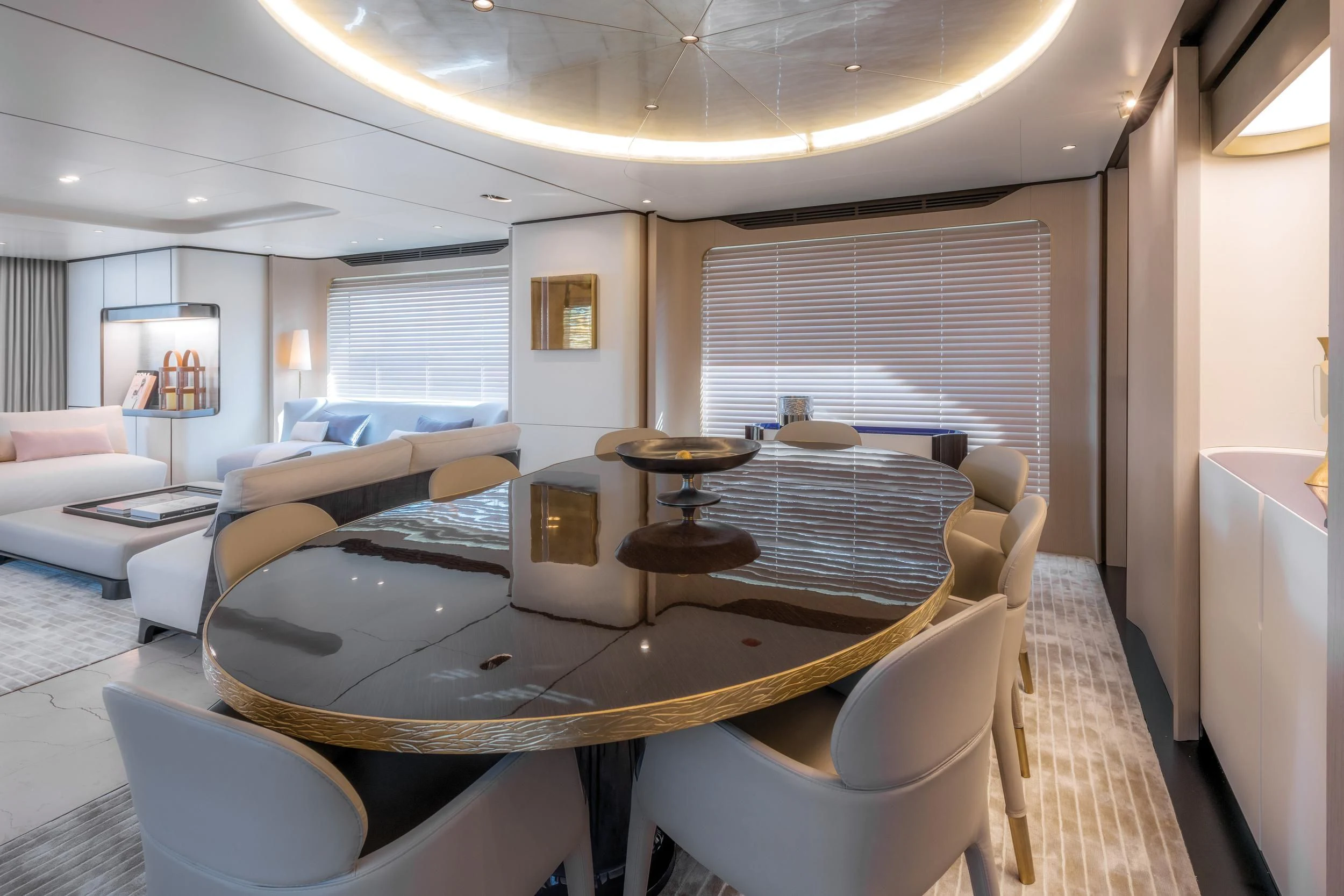 Step inside CARPE DIEM, and you'll be greeted by an interior that exudes understated luxury. Every detail has been meticulously crafted to create an ambiance that is both welcoming and refined. The color palette is a harmonious blend of neutral tones accentuated by tasteful pops of color, creating a visual feast for the eyes. Unique design elements are scattered throughout the yacht, adding character and charm to each room.