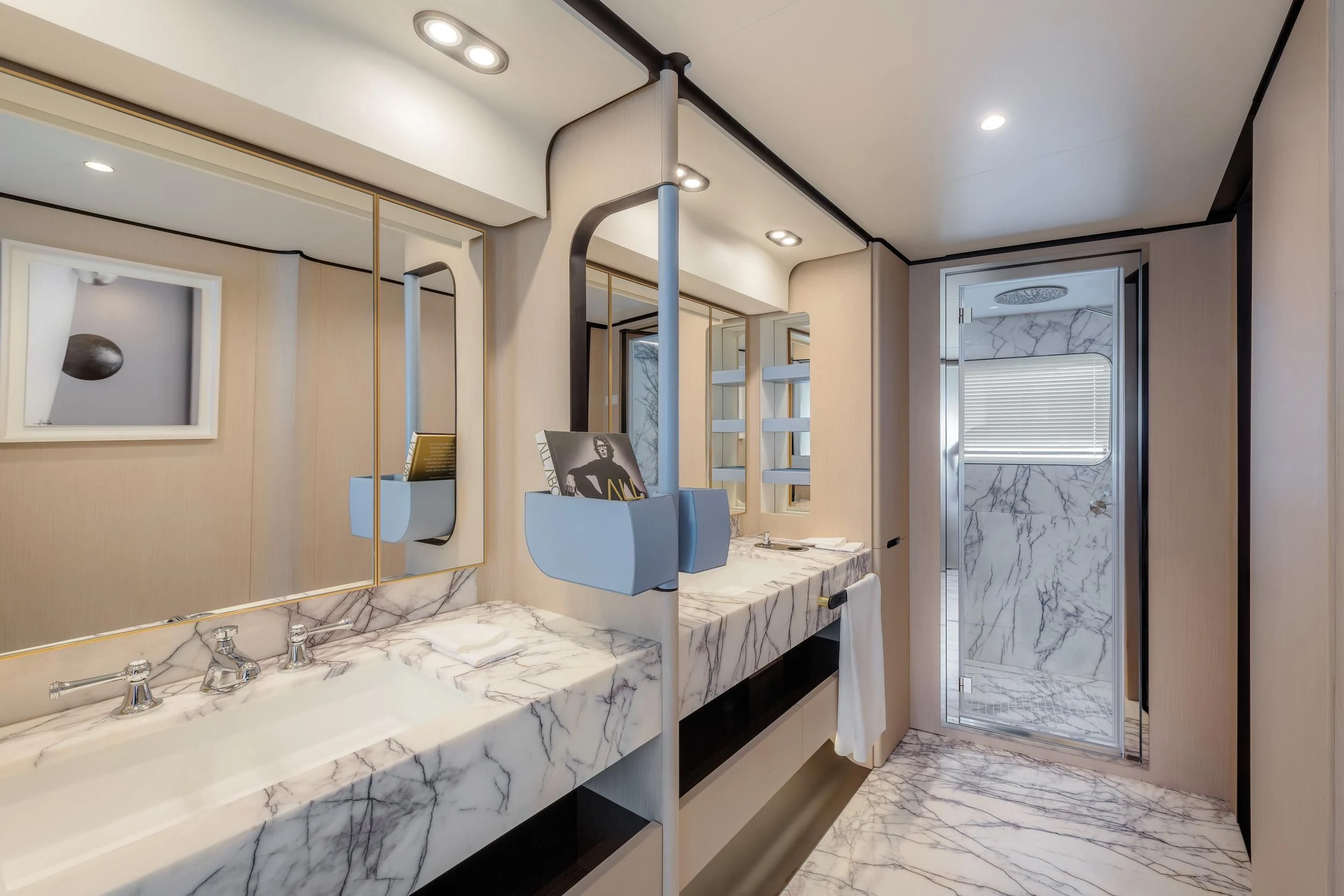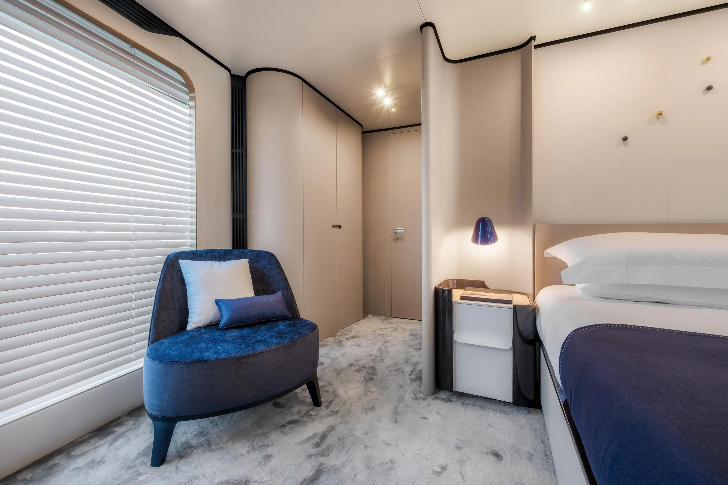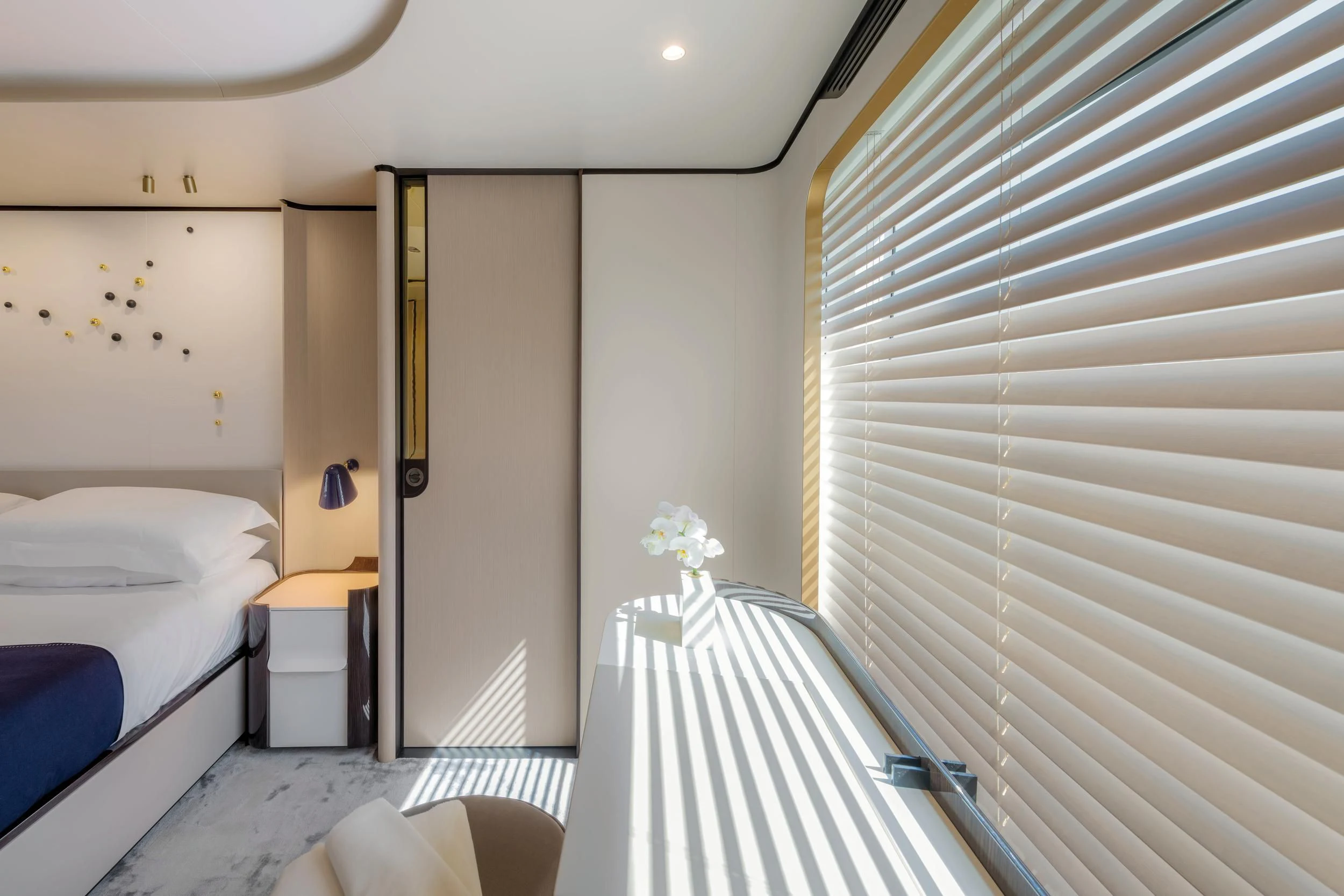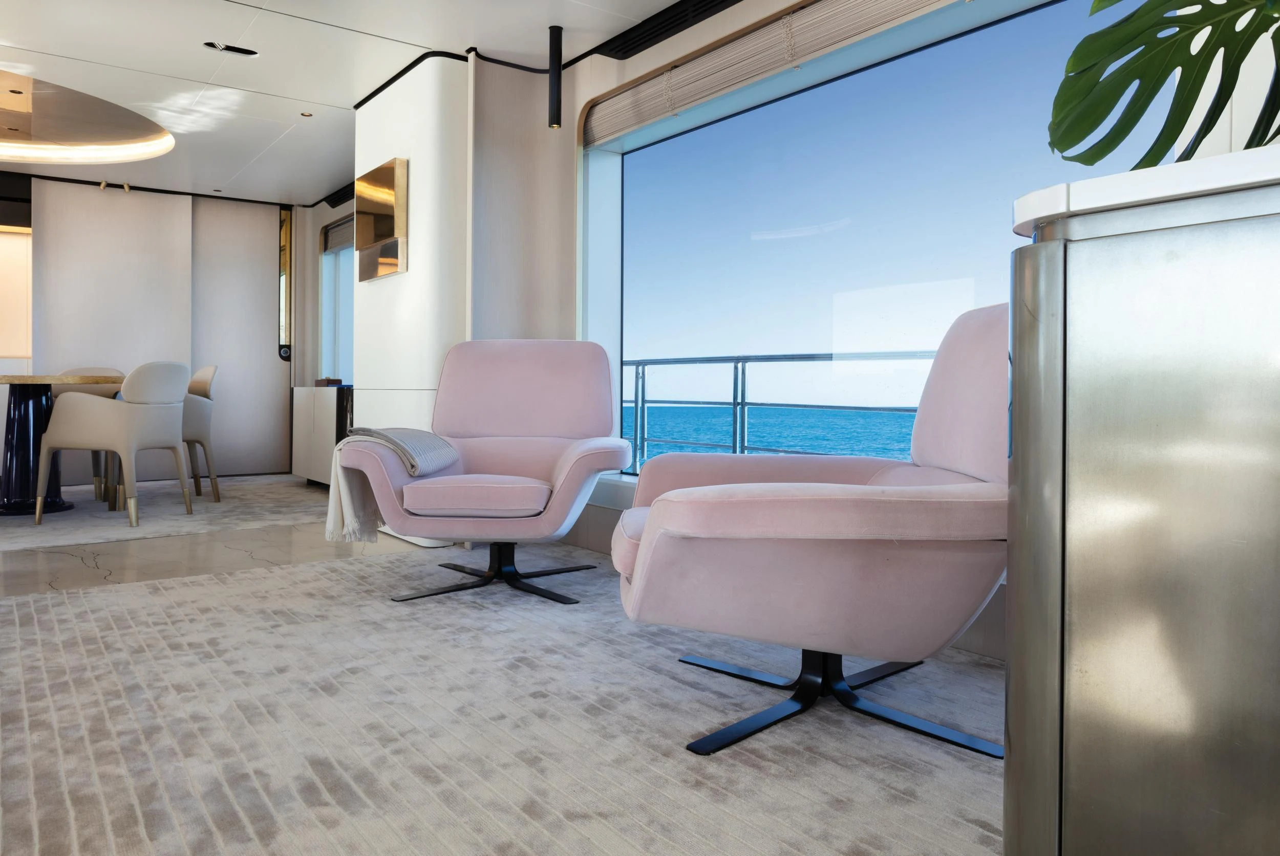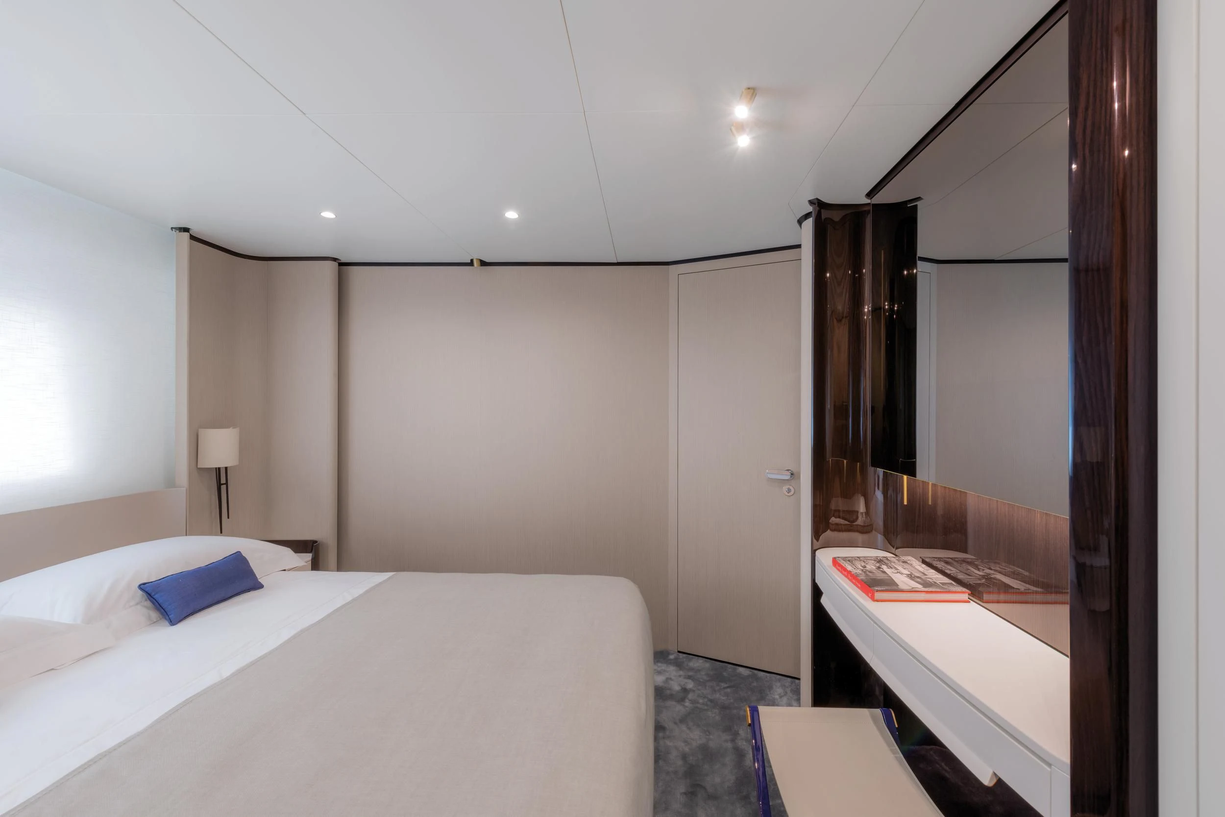 Step inside CARPE DIEM, and you'll be greeted by an interior that exudes understated luxury. Every detail has been meticulously crafted to create an ambiance that is both welcoming and refined. The color palette is a harmonious blend of neutral tones accentuated by tasteful pops of color, creating a visual feast for the eyes. Unique design elements are scattered throughout the yacht, adding character and charm to each room.