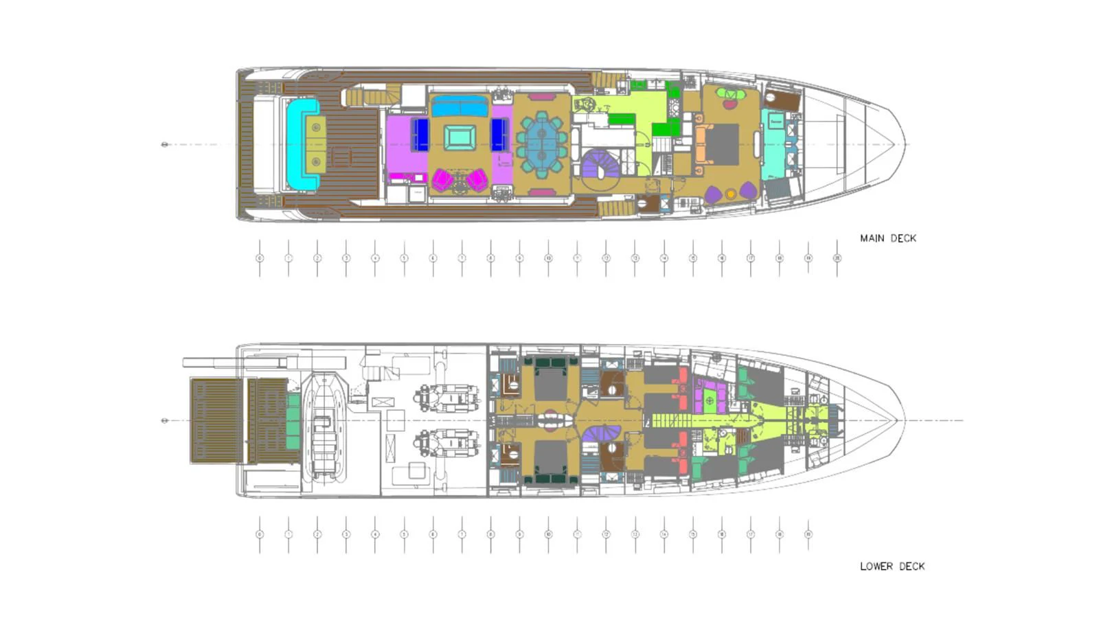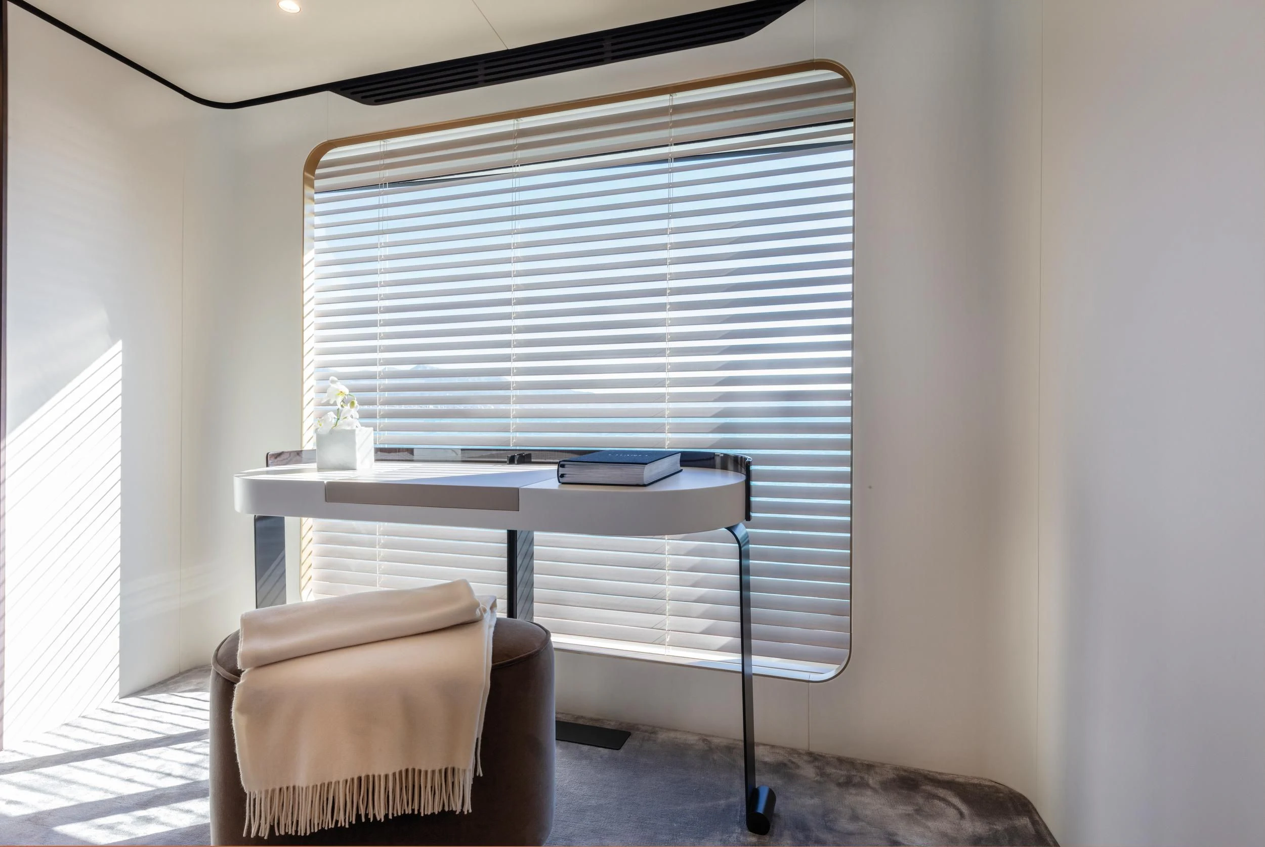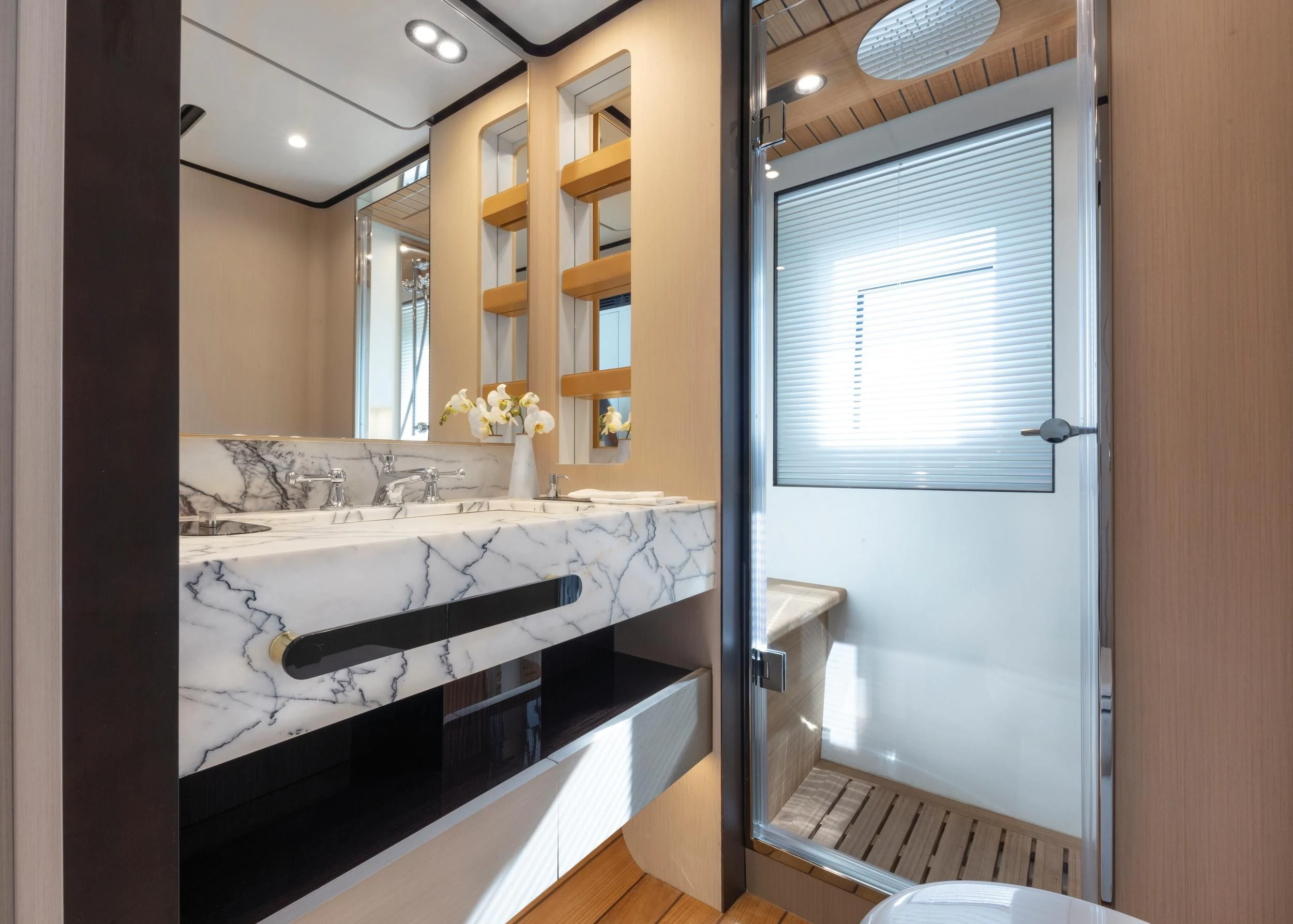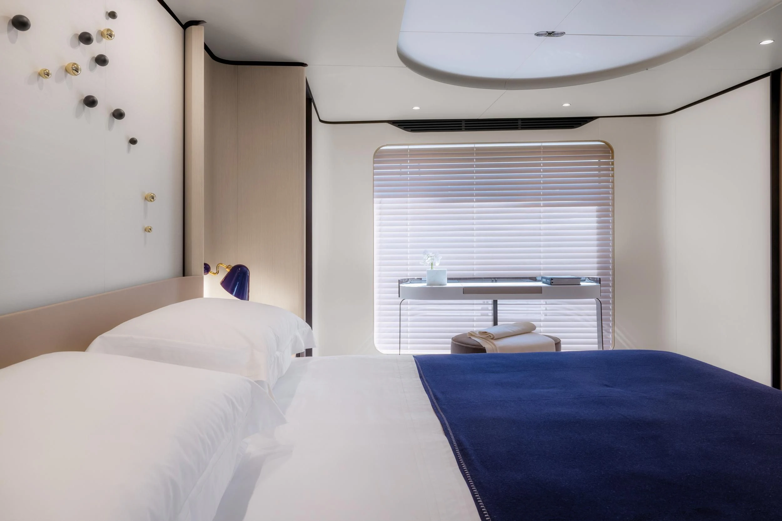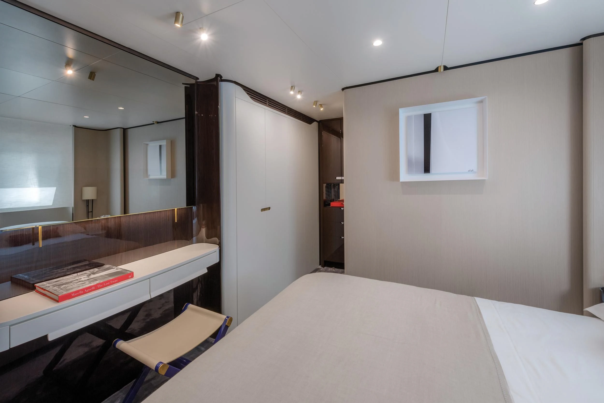 Step inside CARPE DIEM, and you'll be greeted by an interior that exudes understated luxury. Every detail has been meticulously crafted to create an ambiance that is both welcoming and refined. The color palette is a harmonious blend of neutral tones accentuated by tasteful pops of color, creating a visual feast for the eyes. Unique design elements are scattered throughout the yacht, adding character and charm to each room.