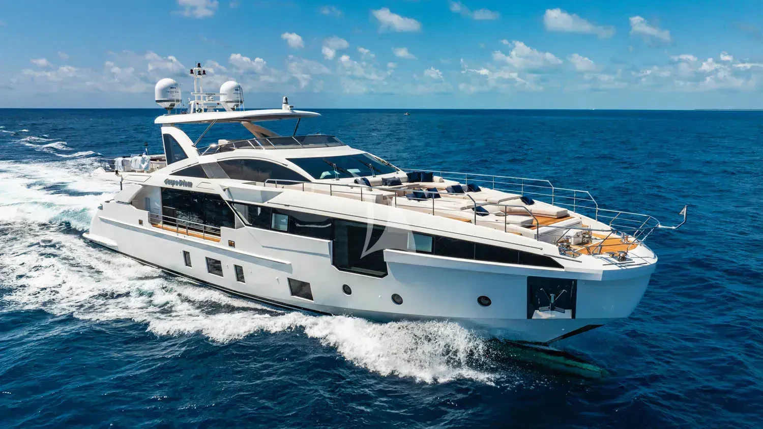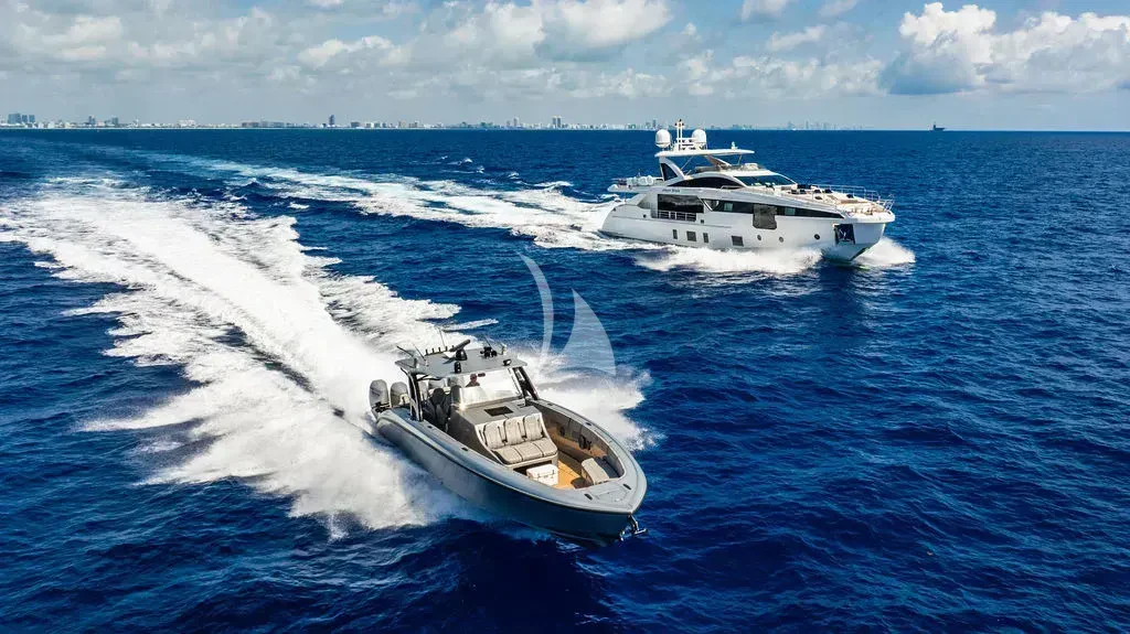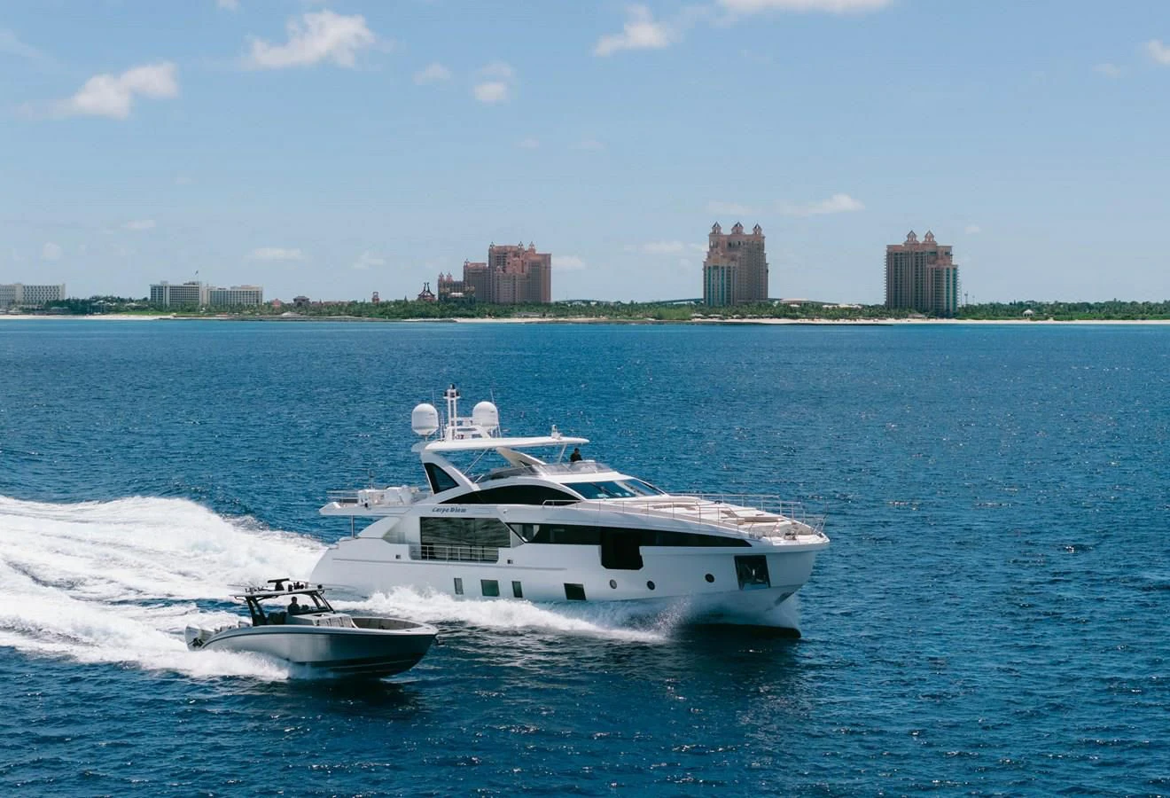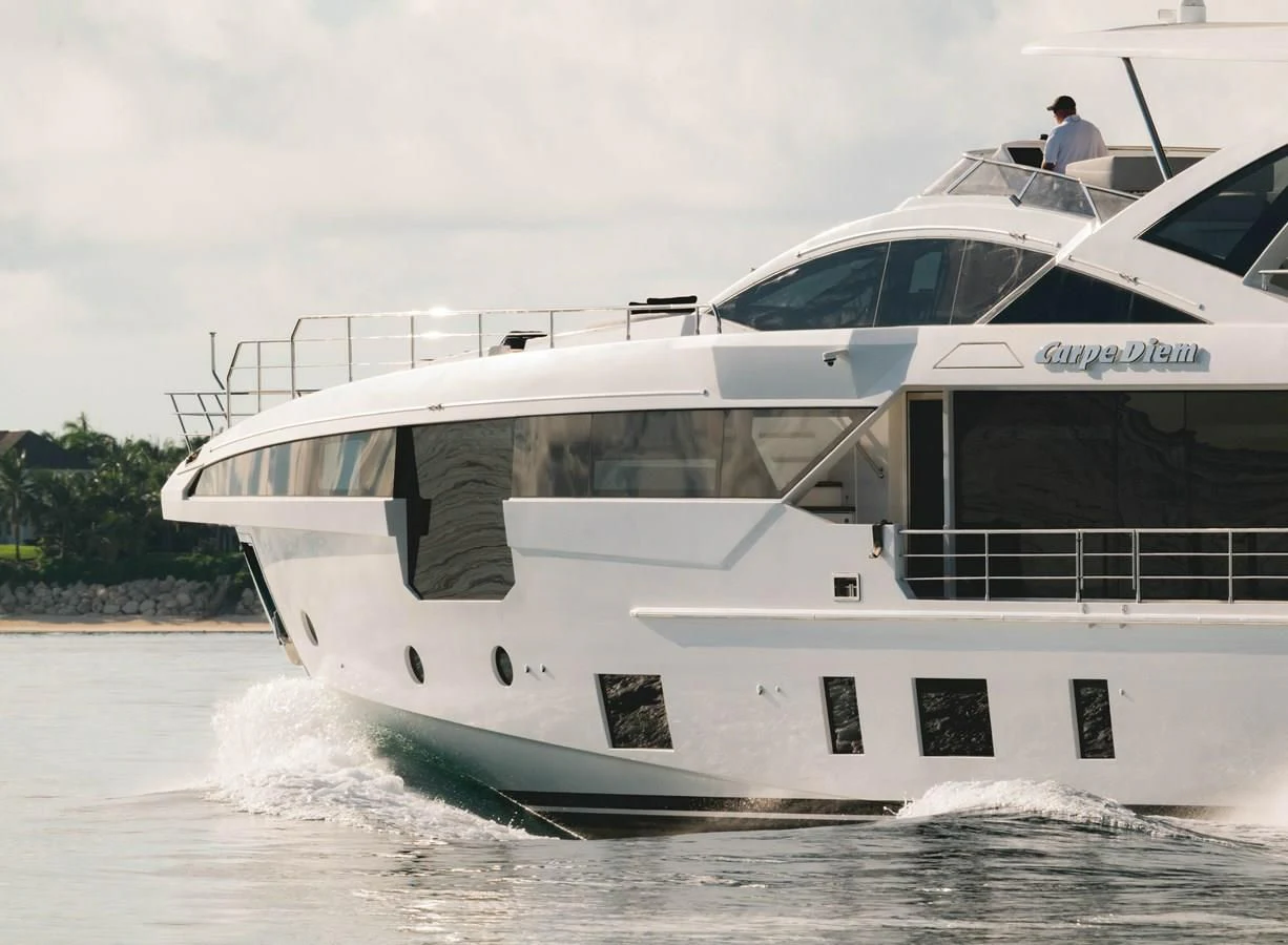 Welcome aboard the CARPE DIEM, a striking embodiment of luxury and sophistication. This 104-foot (32 meters) epitome of opulence was built by the prestigious Azimut Yachts shipyard and launched in 2023 as part of their illustrious Grande 32M collection. The yacht's exterior design is a testament to timeless elegance, combining sleek lines with a commanding presence that leaves an indelible impression on every observer.