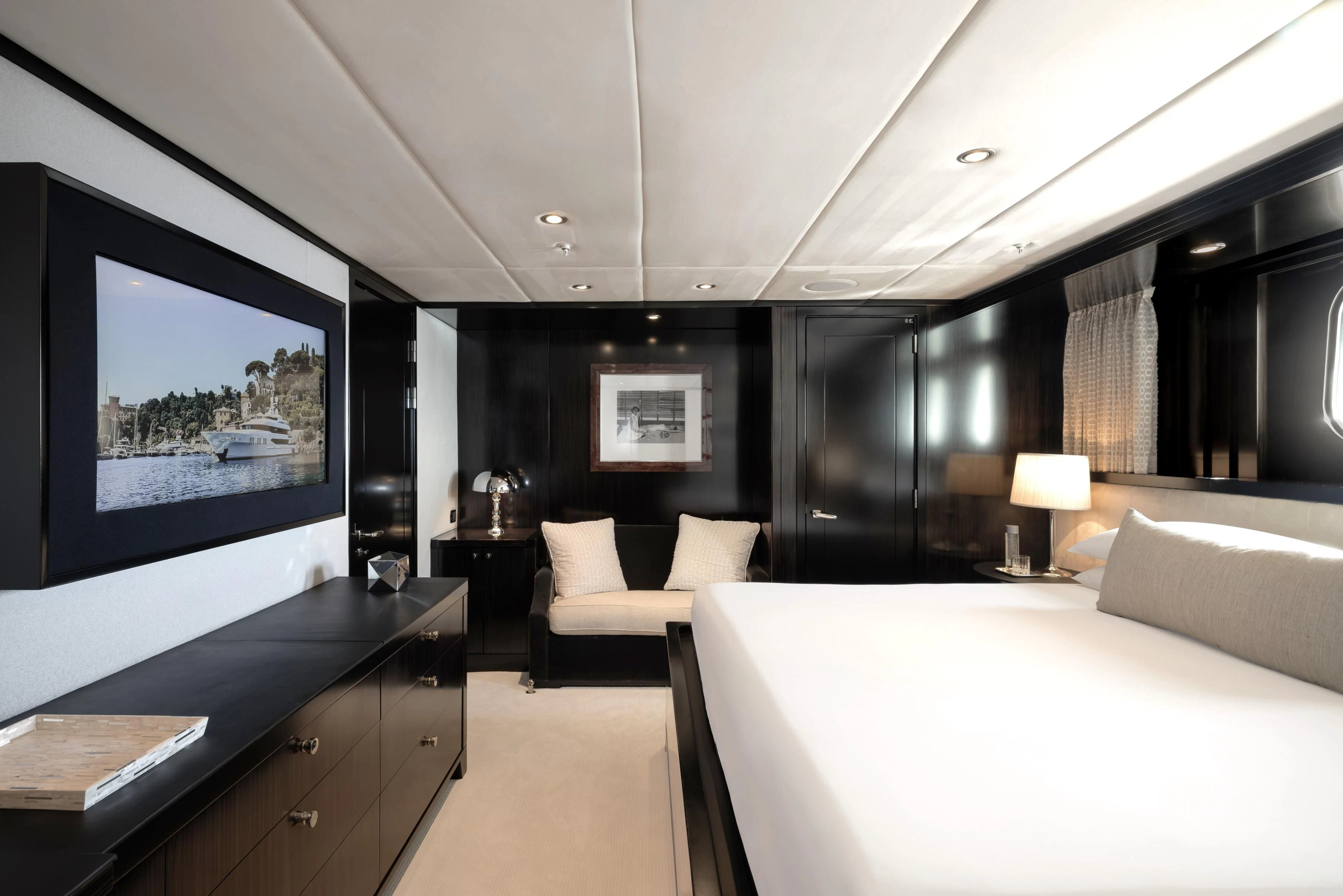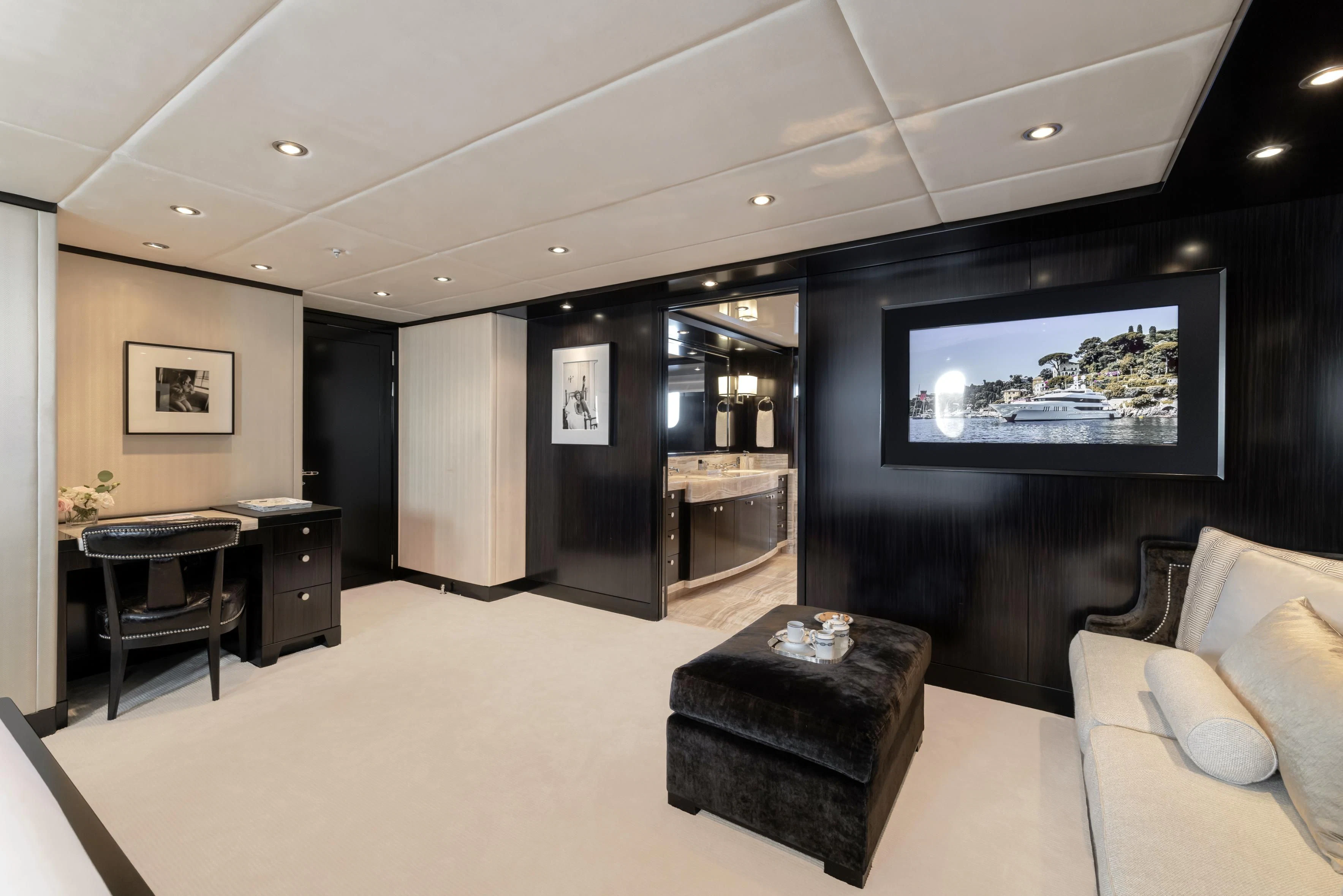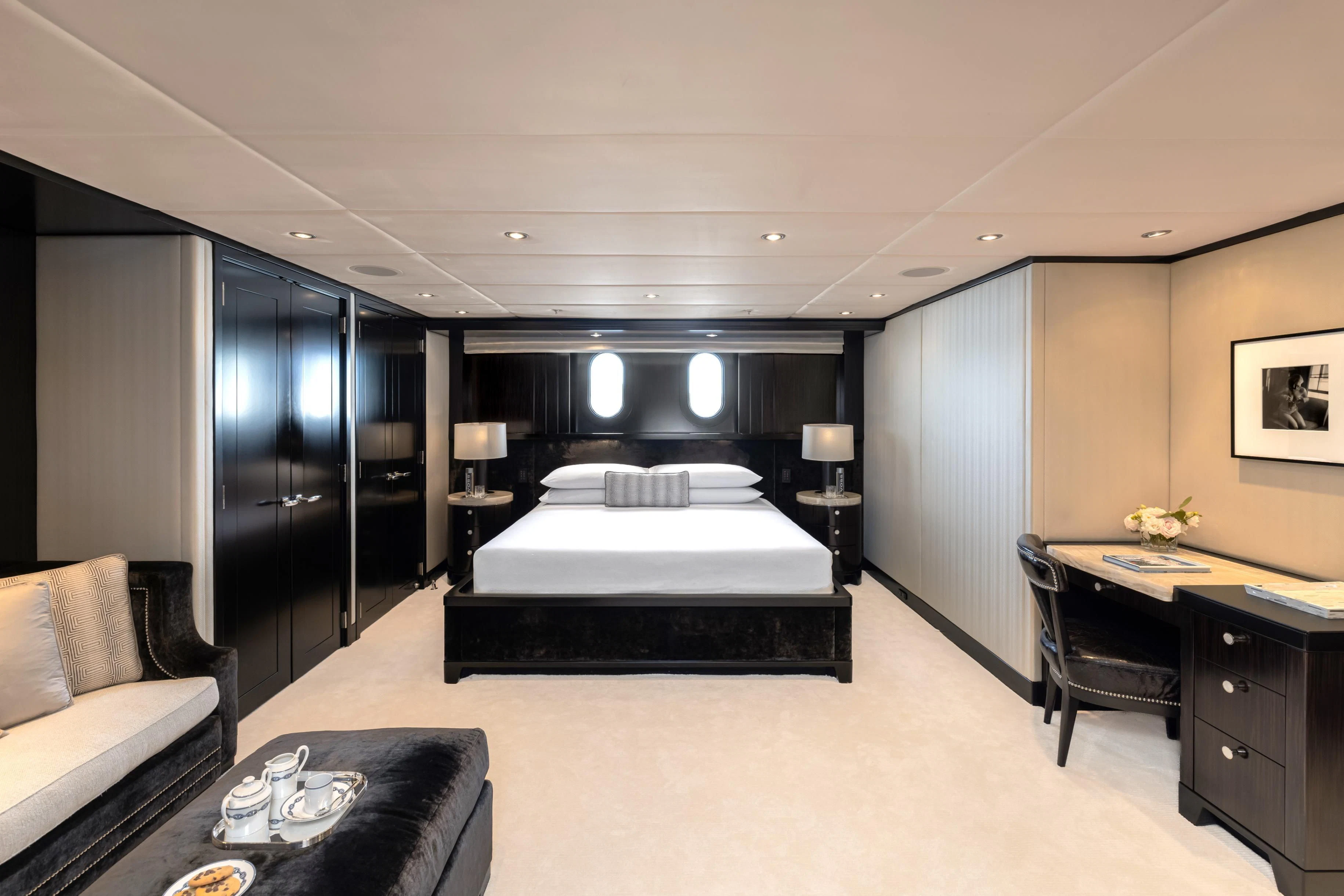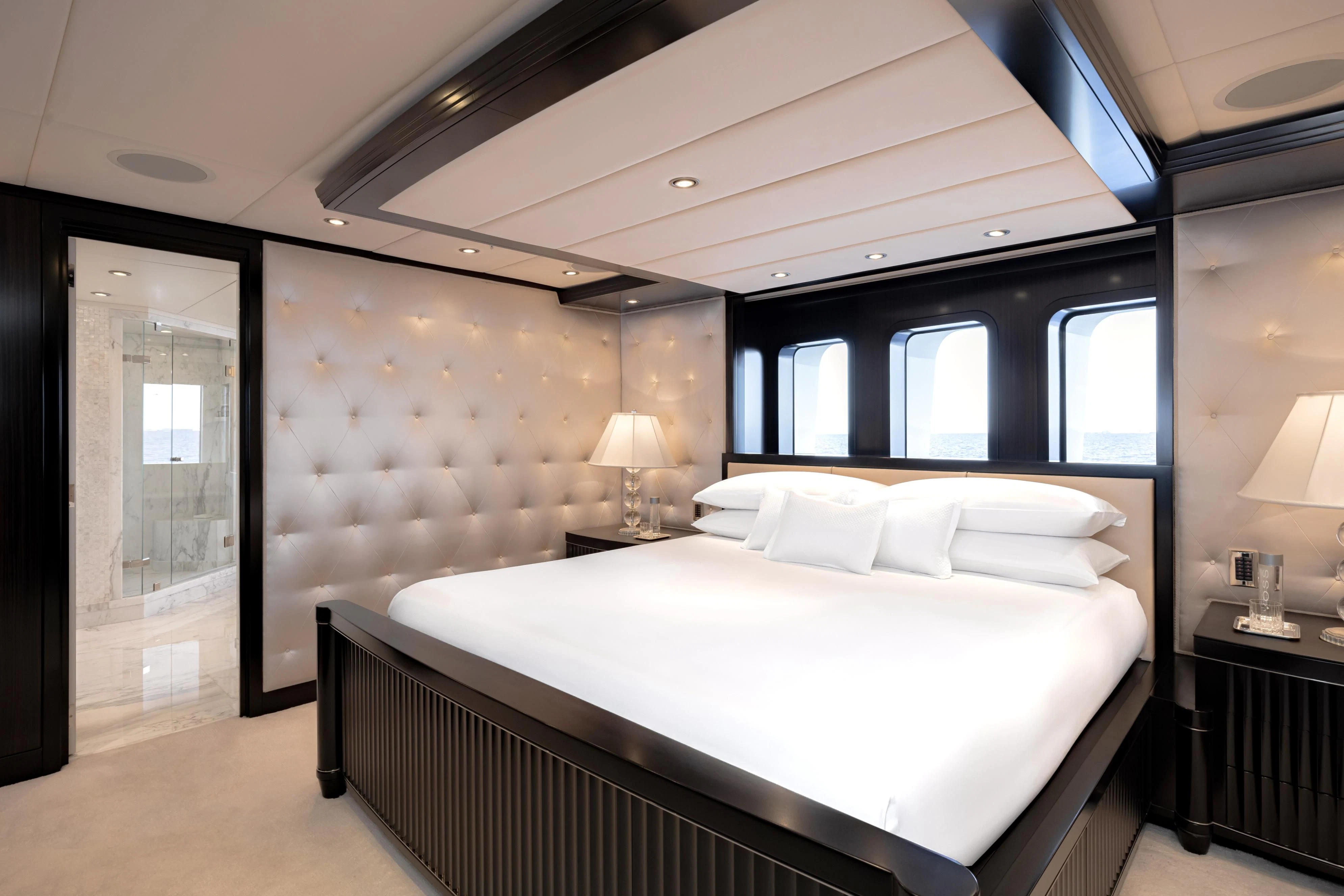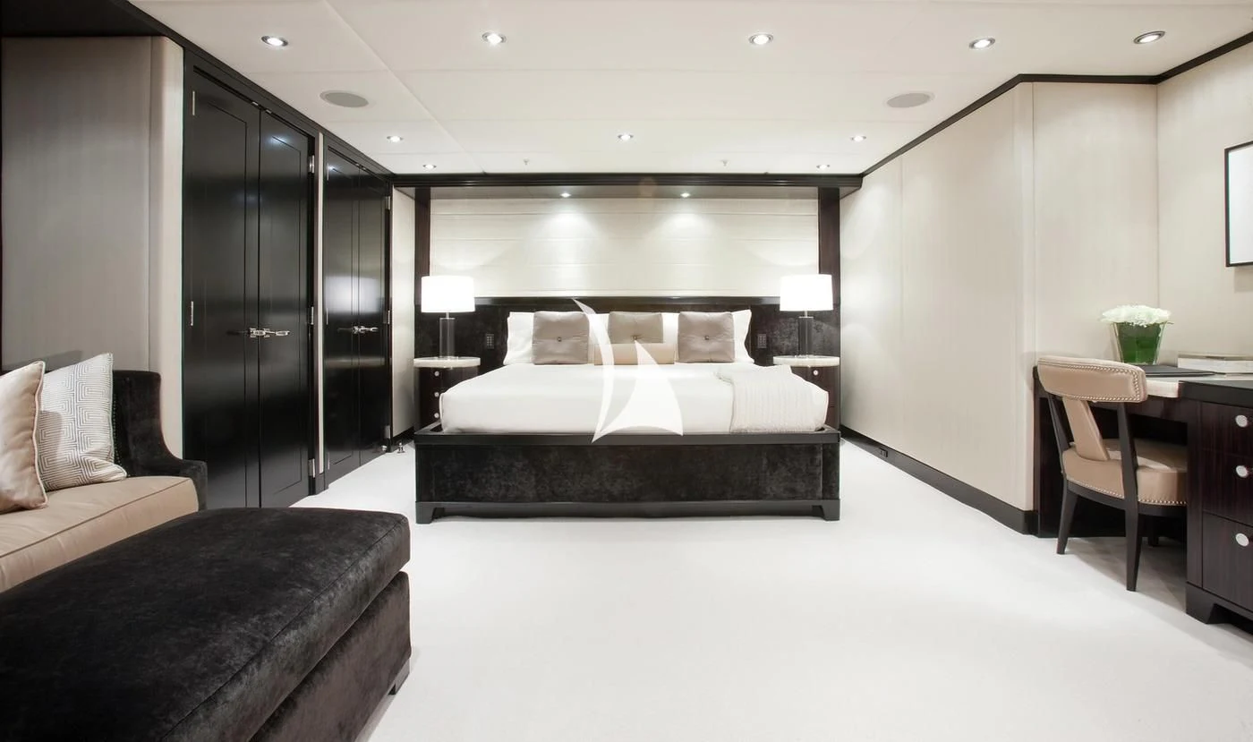 Uniquely, CARPE DIEM offers extraordinary flexibility with three full-width Master Suites: the Owner’s King Suite forward on the main deck, complemented by a VIP King Suite aft and a convertible VIP King Suite forward on the lower deck. In total, she accommodates 12 guests in six beautifully appointed staterooms.