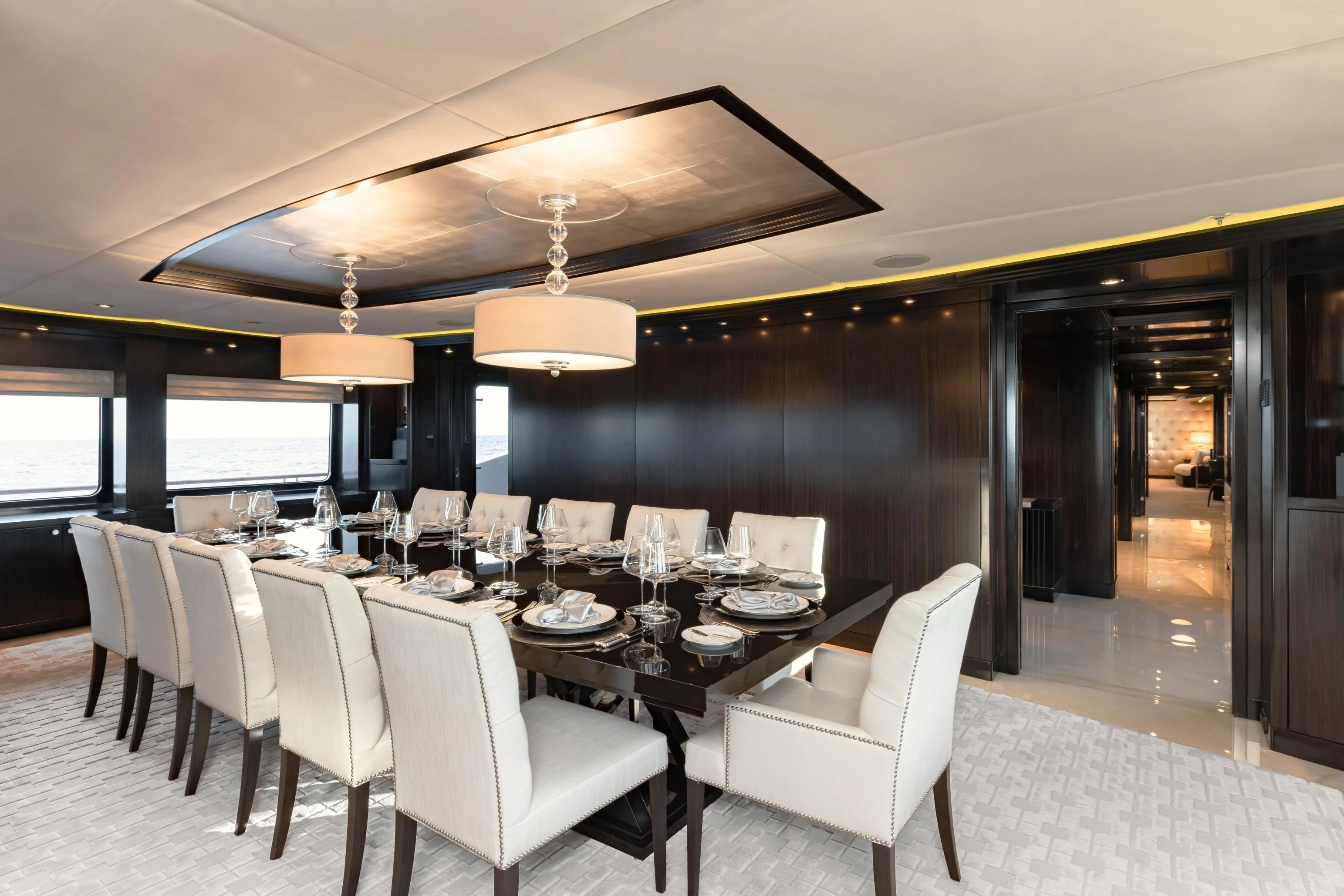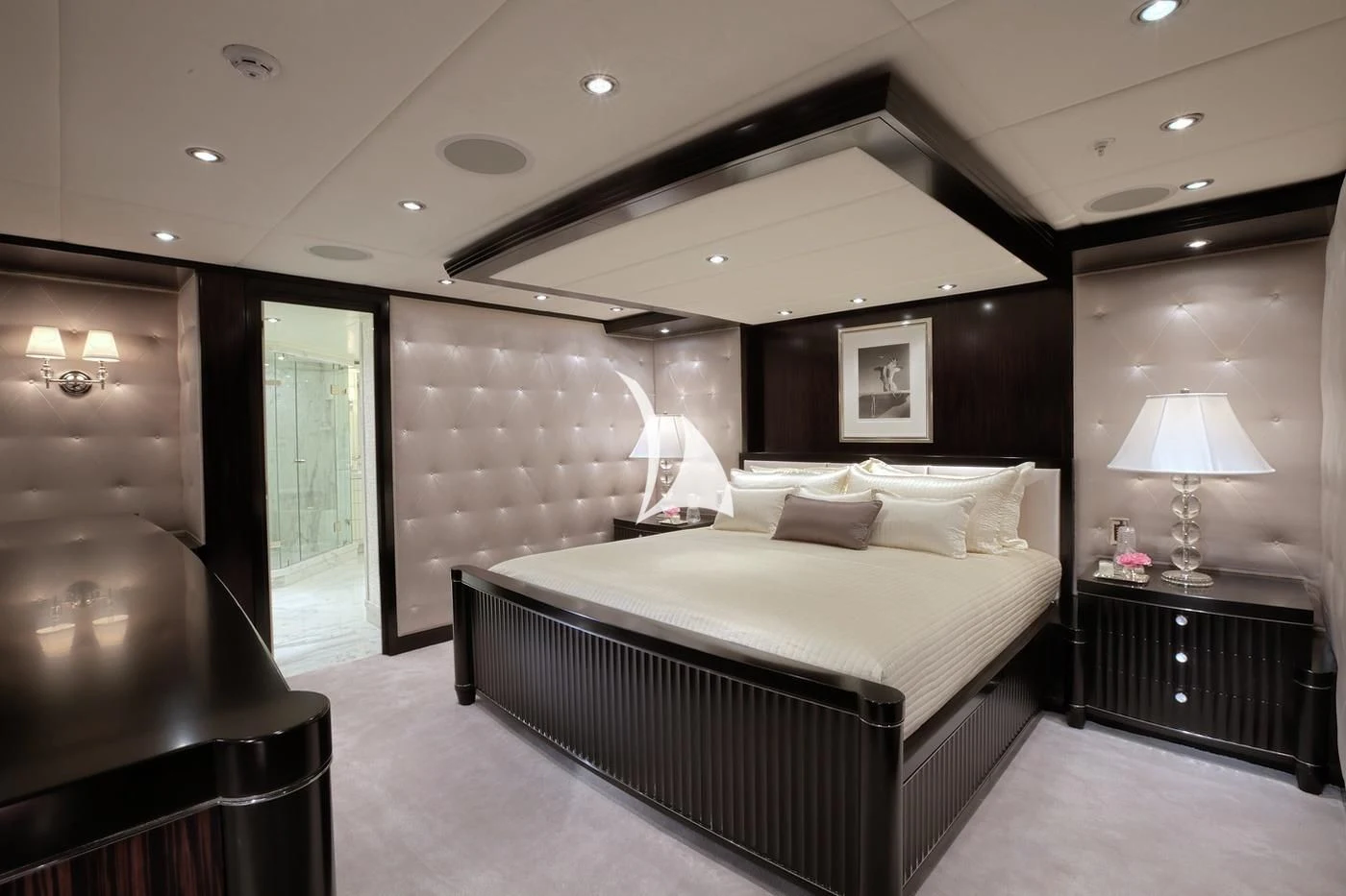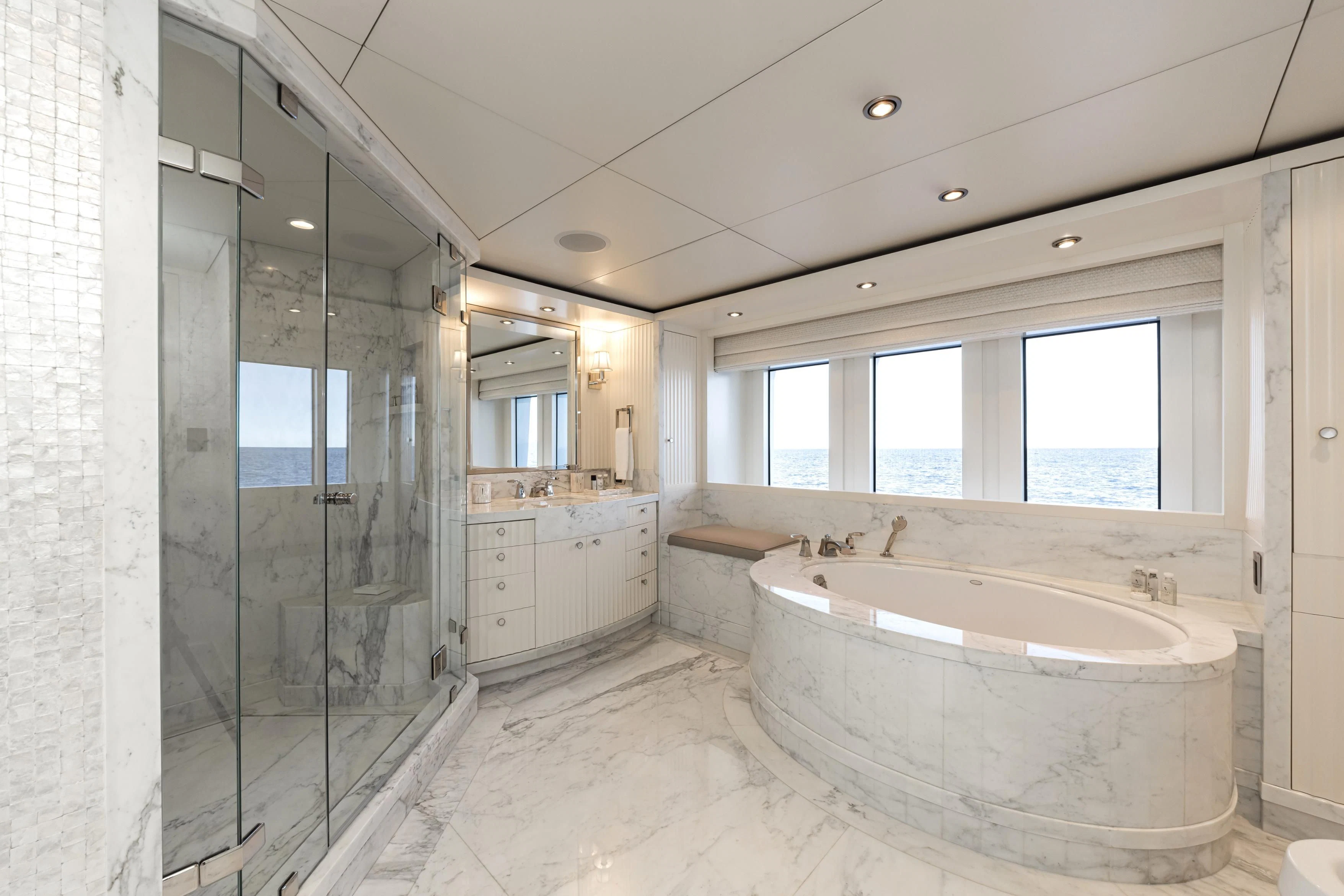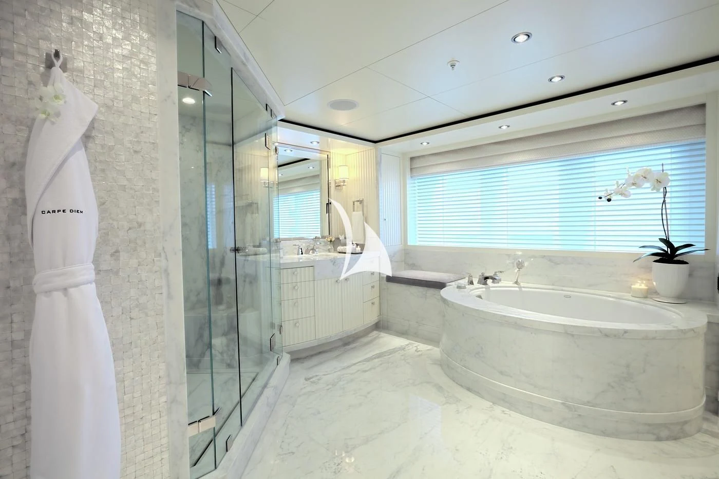 Uniquely, CARPE DIEM offers extraordinary flexibility with three full-width Master Suites: the Owner’s King Suite forward on the main deck, complemented by a VIP King Suite aft and a convertible VIP King Suite forward on the lower deck. In total, she accommodates 12 guests in six beautifully appointed staterooms.