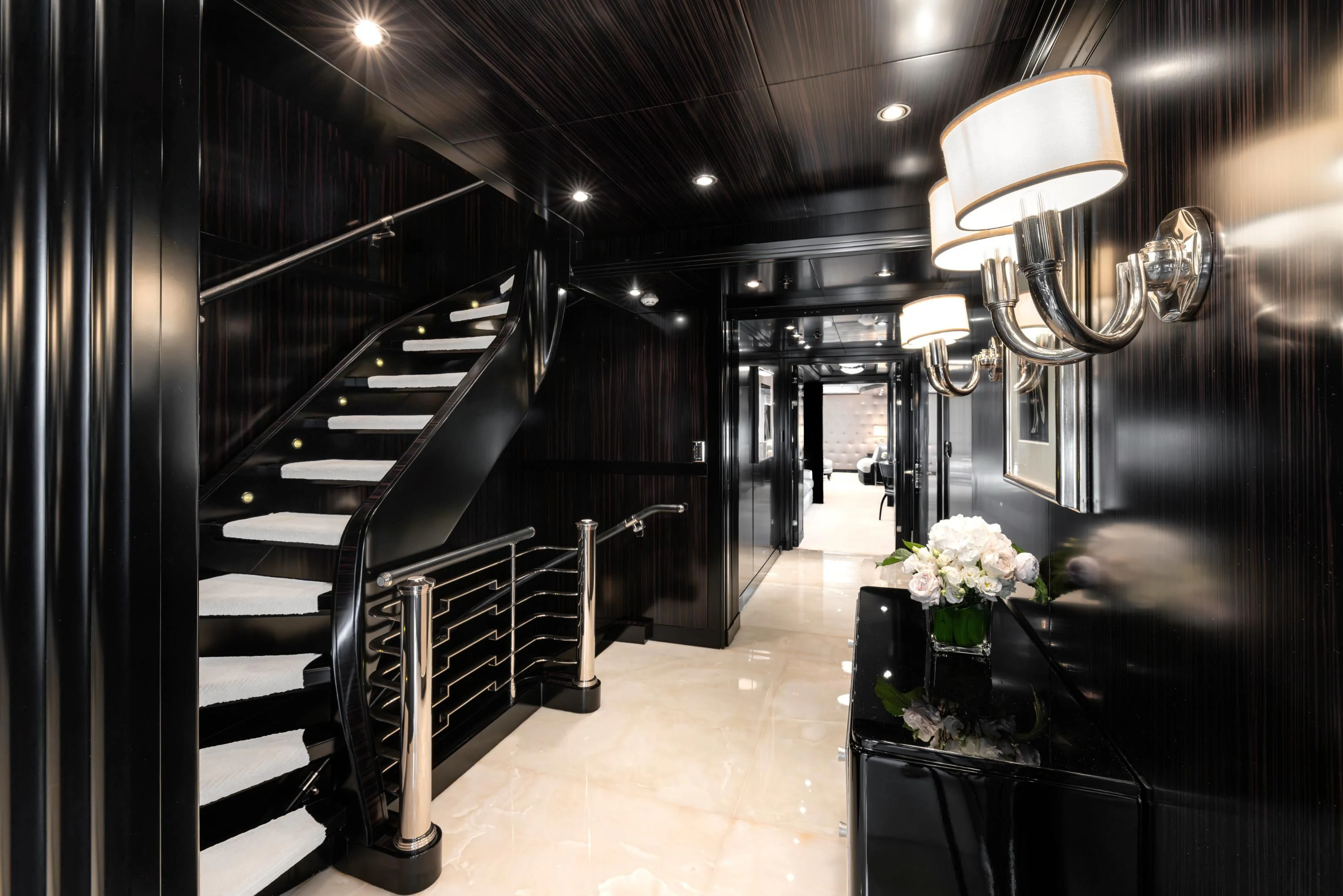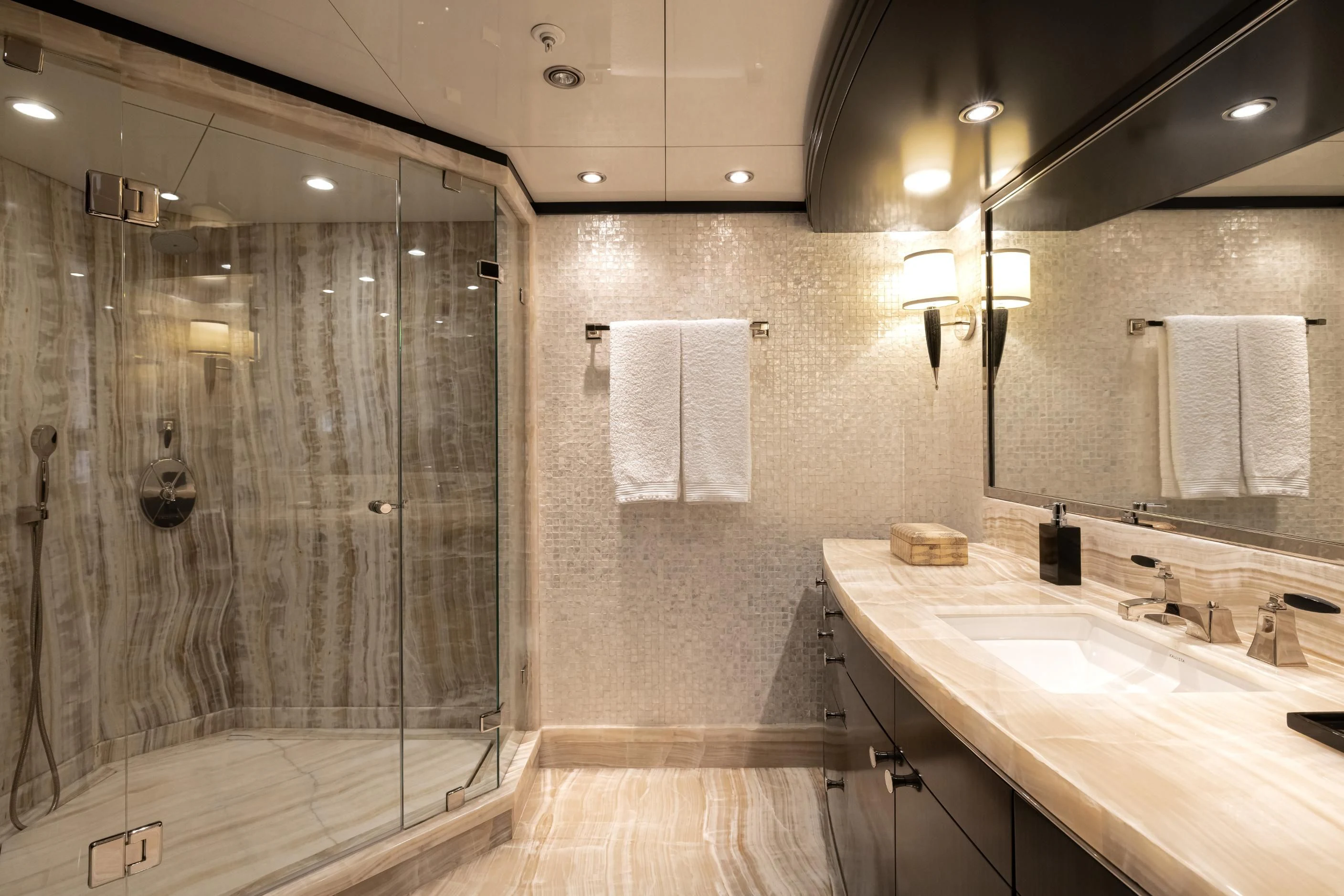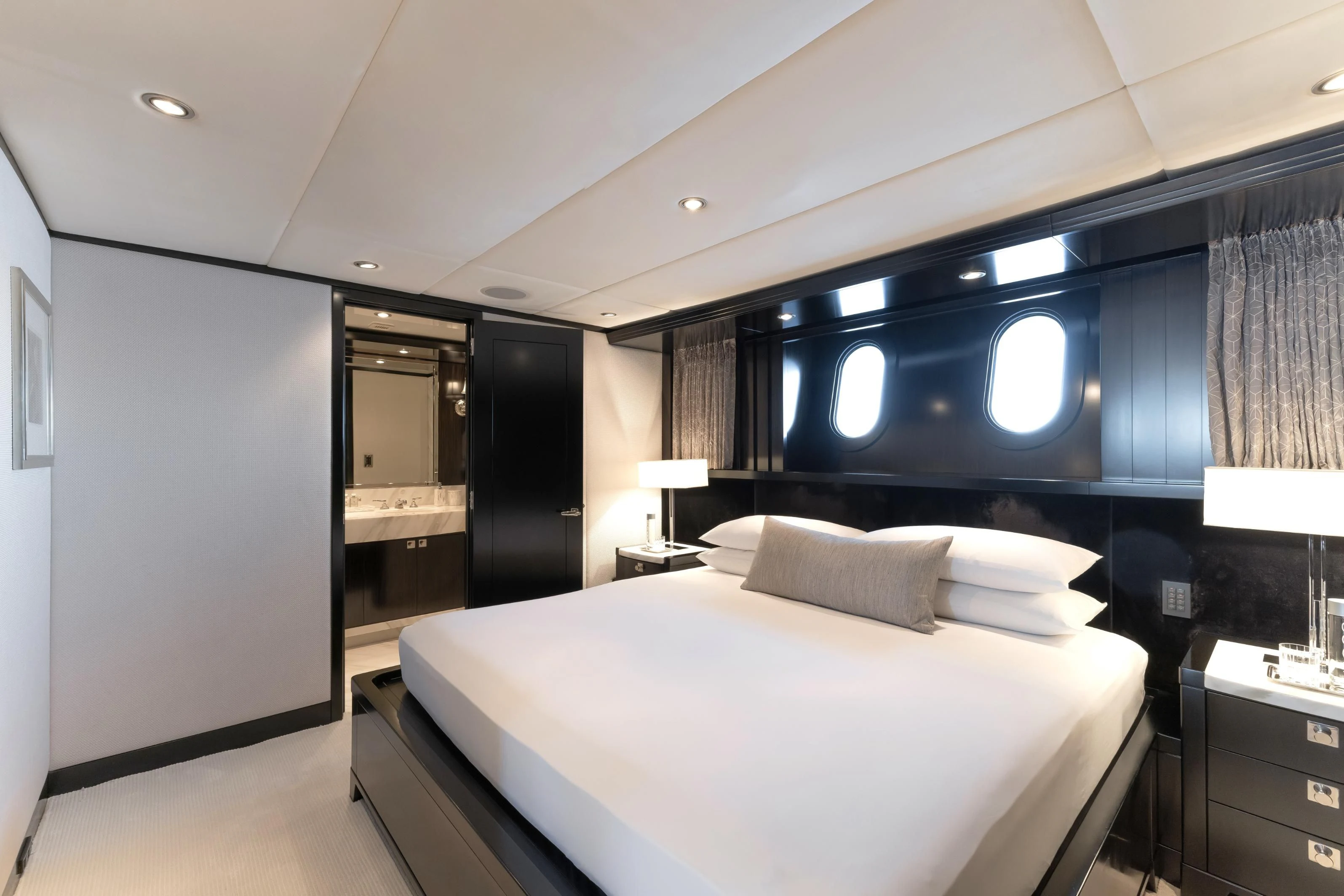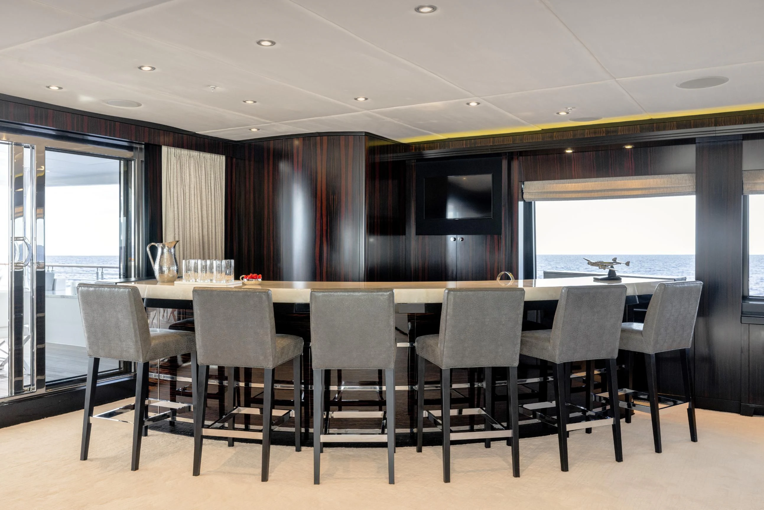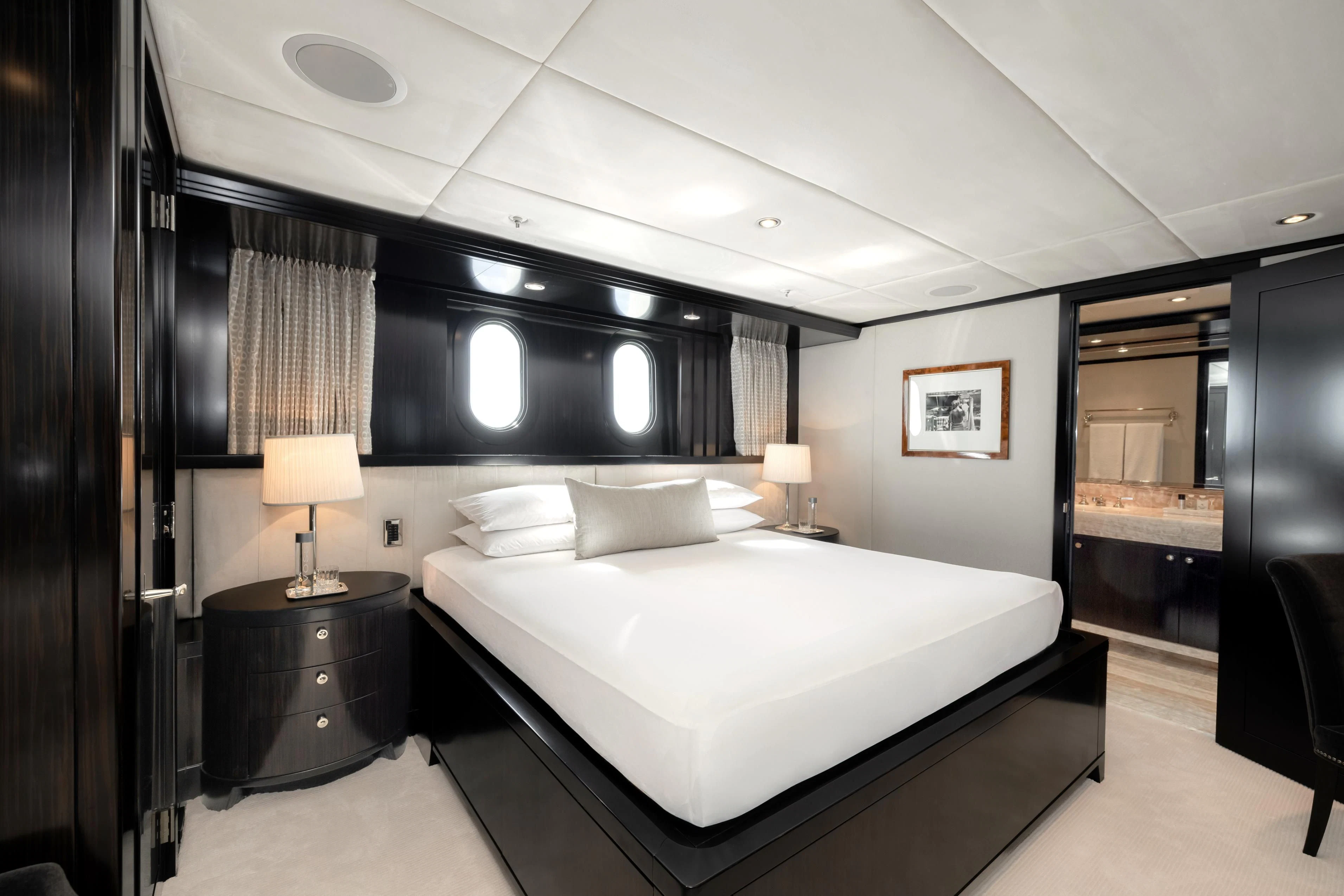 Uniquely, CARPE DIEM offers extraordinary flexibility with three full-width Master Suites: the Owner’s King Suite forward on the main deck, complemented by a VIP King Suite aft and a convertible VIP King Suite forward on the lower deck. In total, she accommodates 12 guests in six beautifully appointed staterooms.