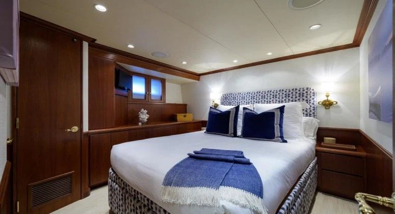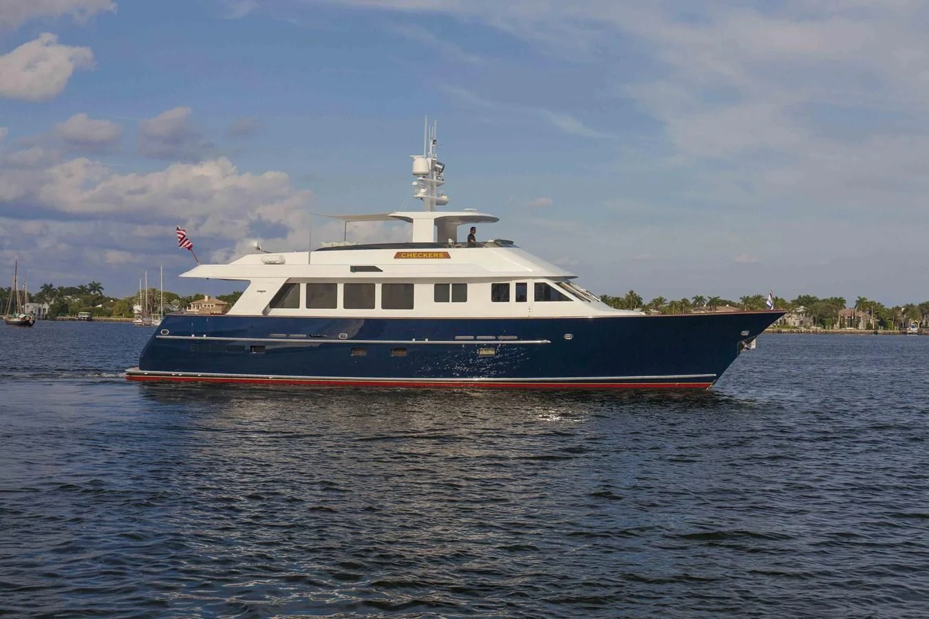 Custom built and continuing the longstanding ethic of the Burger Boat Company, CHECKERS is unique and masterfully built. Large salon windows and incredible headroom throughout highlight the richly crafted Mokore (African Cherry) woodwork. A separate and secluded master suite amidship is comparable in size to those on 100' yachts with amenities to match. Powered by twin Caterpillar C32 diesel engines, 1550hp and two 38kW generators. Key features include stabilization, bow thruster, Furuno electronics, and many more.