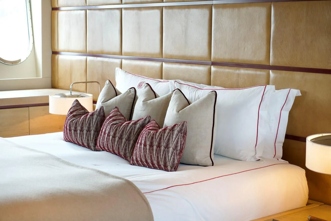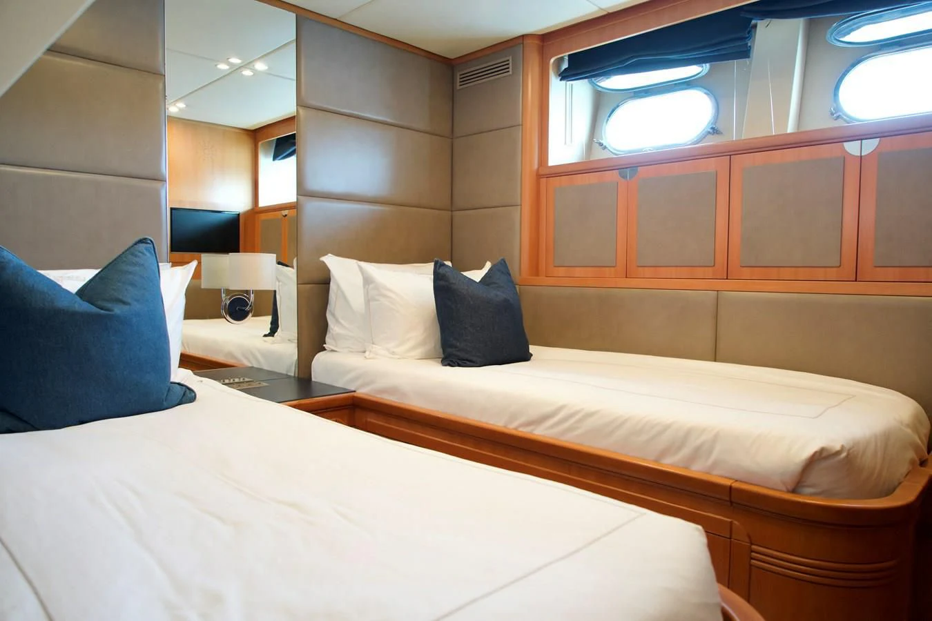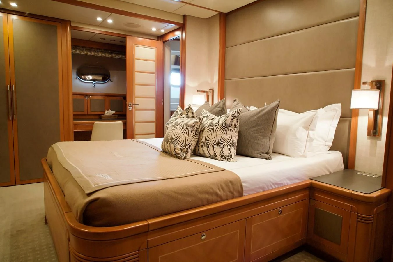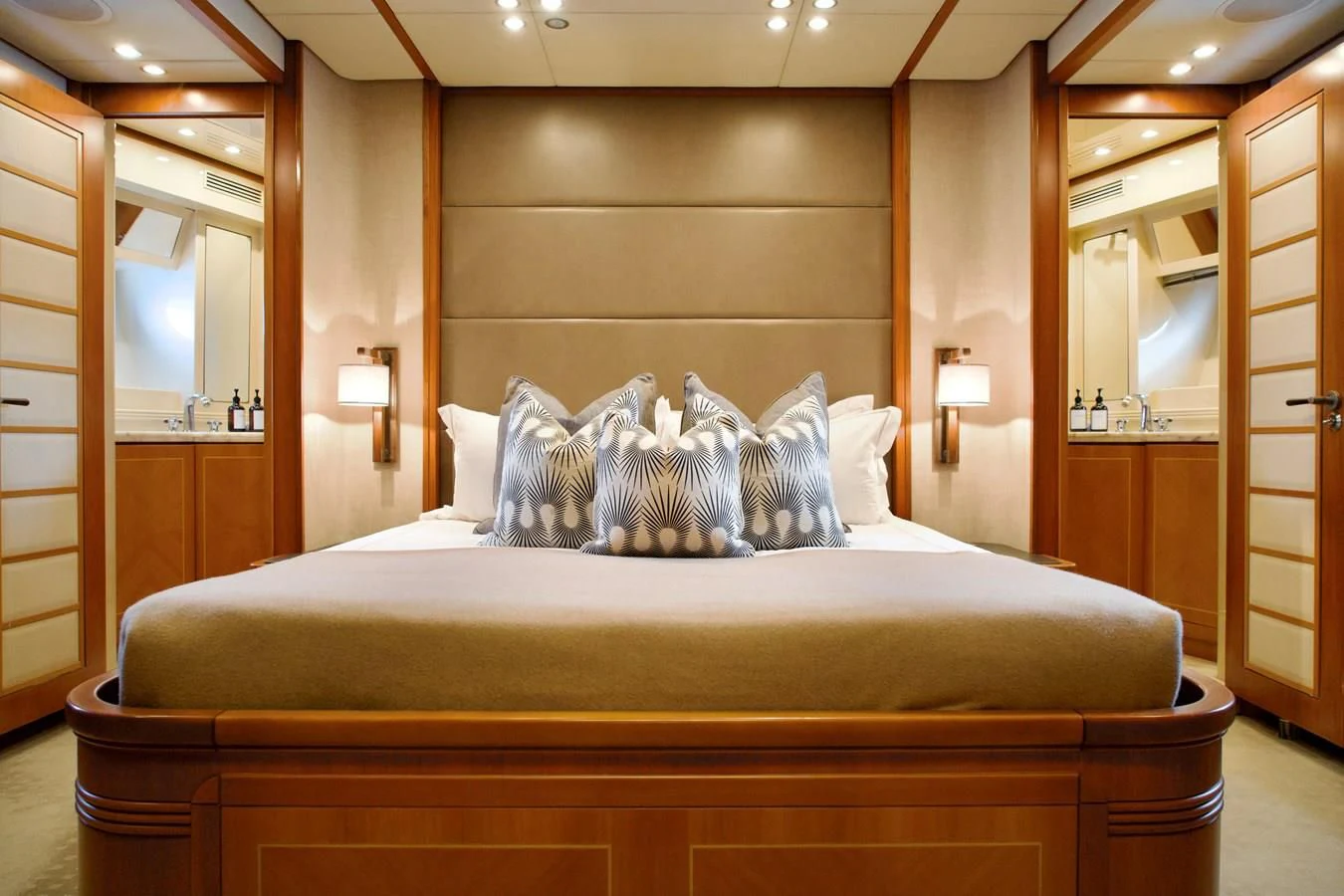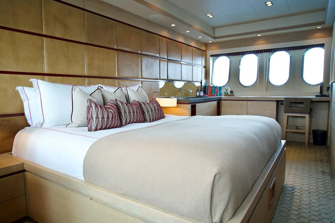 The master stateroom stands out with its opulent décor and state-of-the-art amenities including Wi-Fi connectivity throughout the vessel. The remaining guest cabins are equally lavish offering plush bedding options coupled with breathtaking ocean views through large portholes - truly making every waking moment onboard an experience worth cherishing.