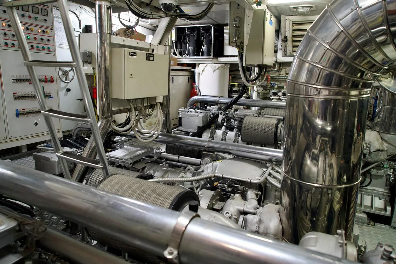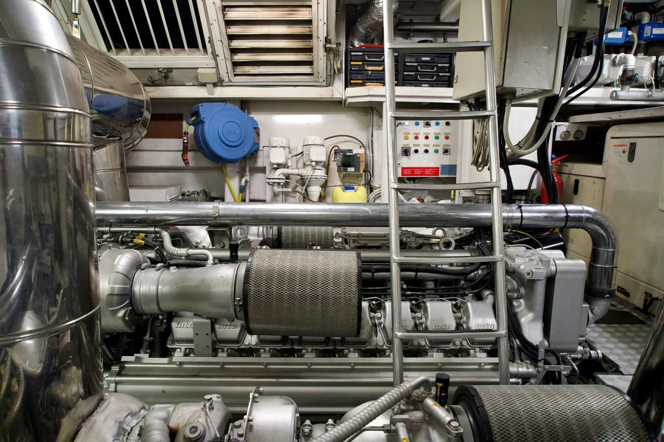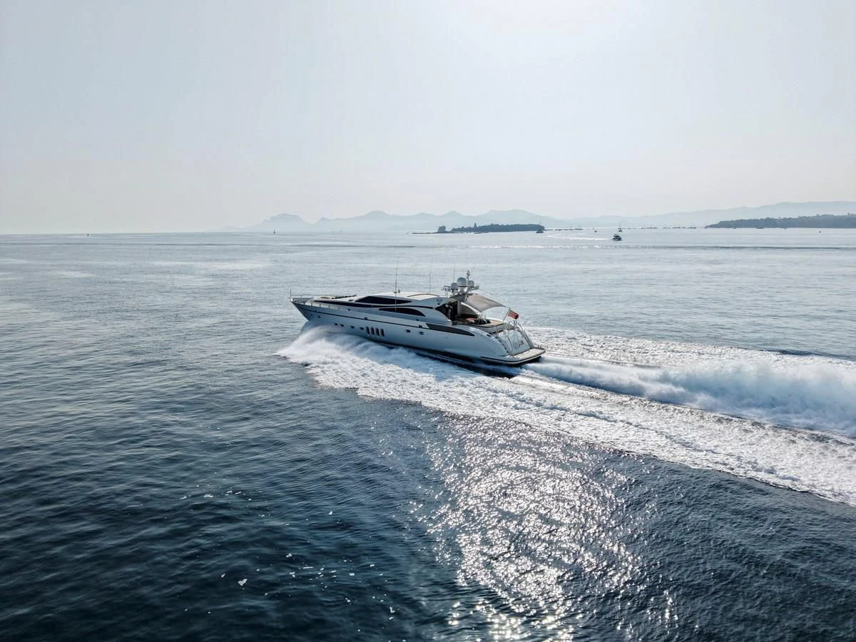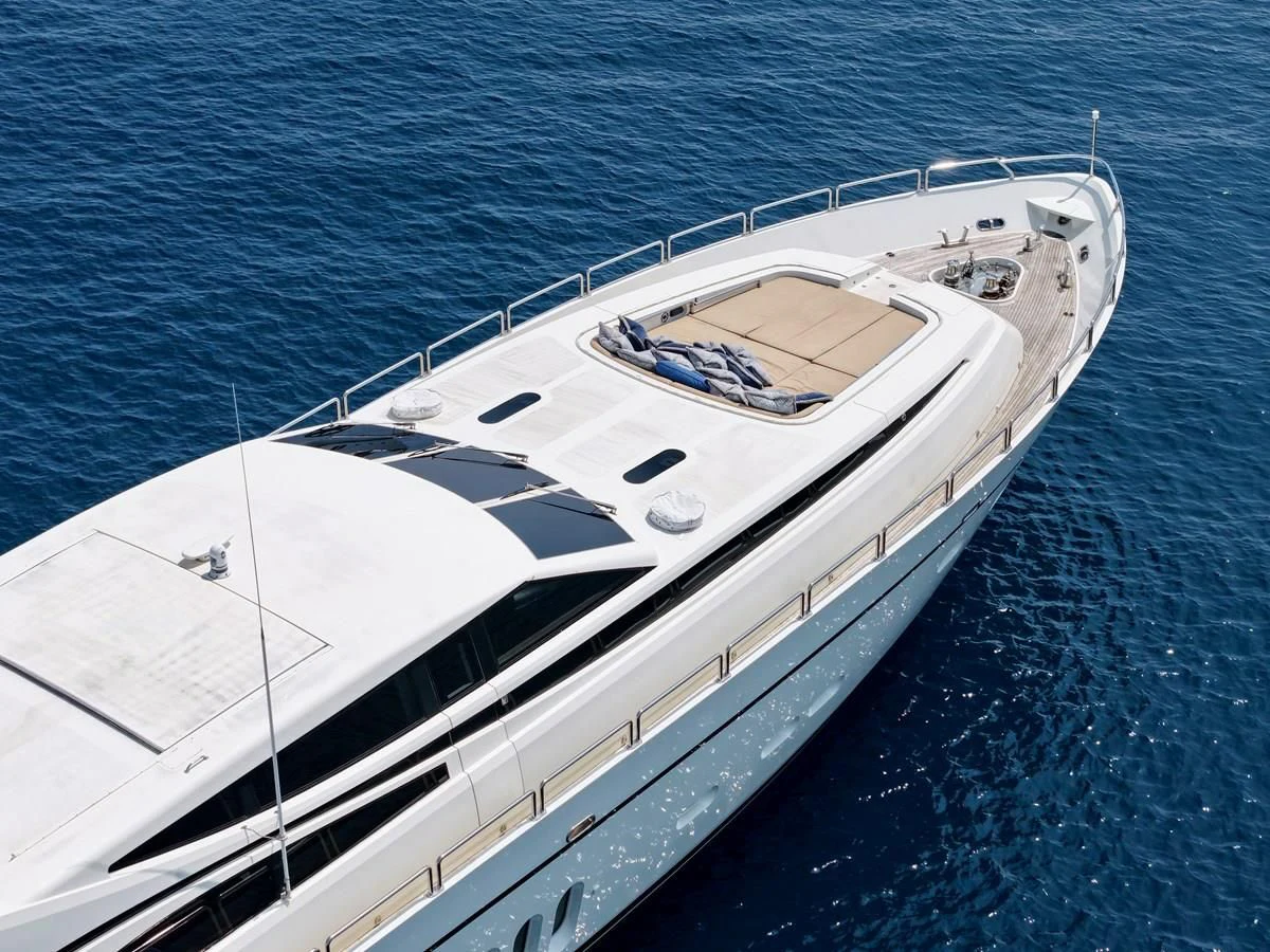 The exterior design is strikingly modern with sleek lines that hint at her sporty nature. This sport boat can reach cruising speeds of up to 30 knots and can push to maximum speeds of around 36 knots, thanks to her twin MTU engines each delivering a whopping power output of 1999 horsepower or approximately 1491 kilowatts. Her spacious decks provide ample room for alfresco dining, sunbathing, or simply taking in the panoramic views as you glide across the waters.