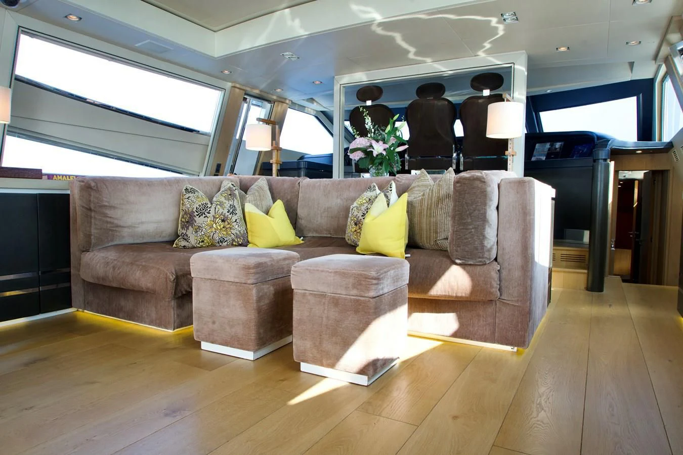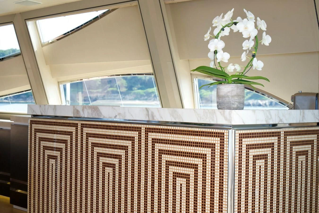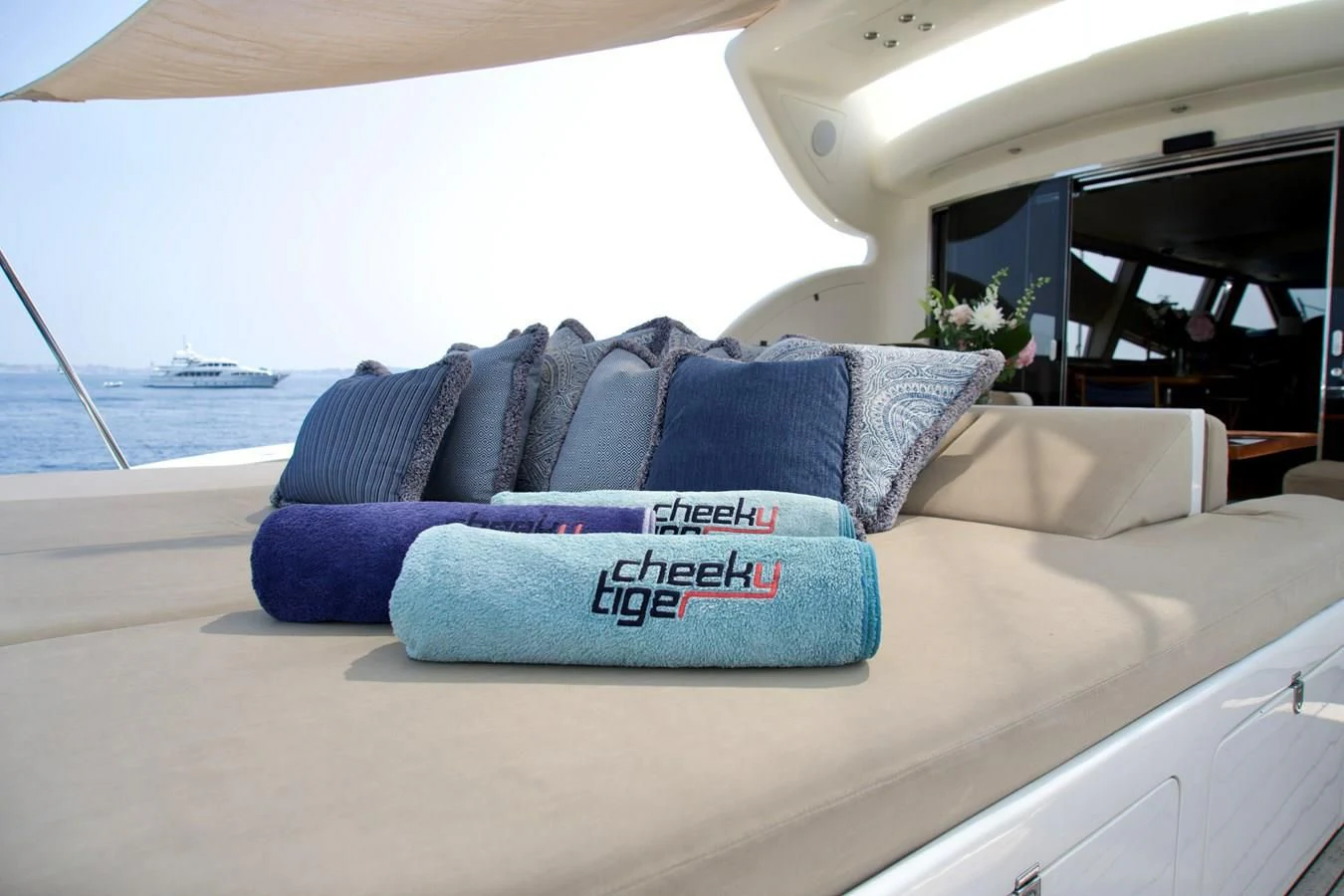Step inside the CHEEKY TIGER and be prepared to be enthralled by her exquisite interior design that mirrors her bold exterior aesthetic yet adds a layer of warmth and comfort that makes you feel right at home on the sea. Four luxurious cabins comfortably accommodate up to ten guests while providing quarters for five crew members who are dedicated to ensuring your stay onboard is nothing short of exceptional.
