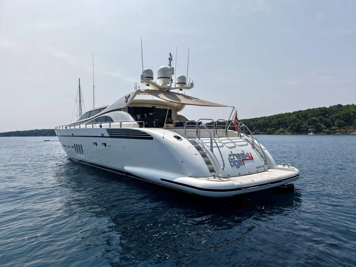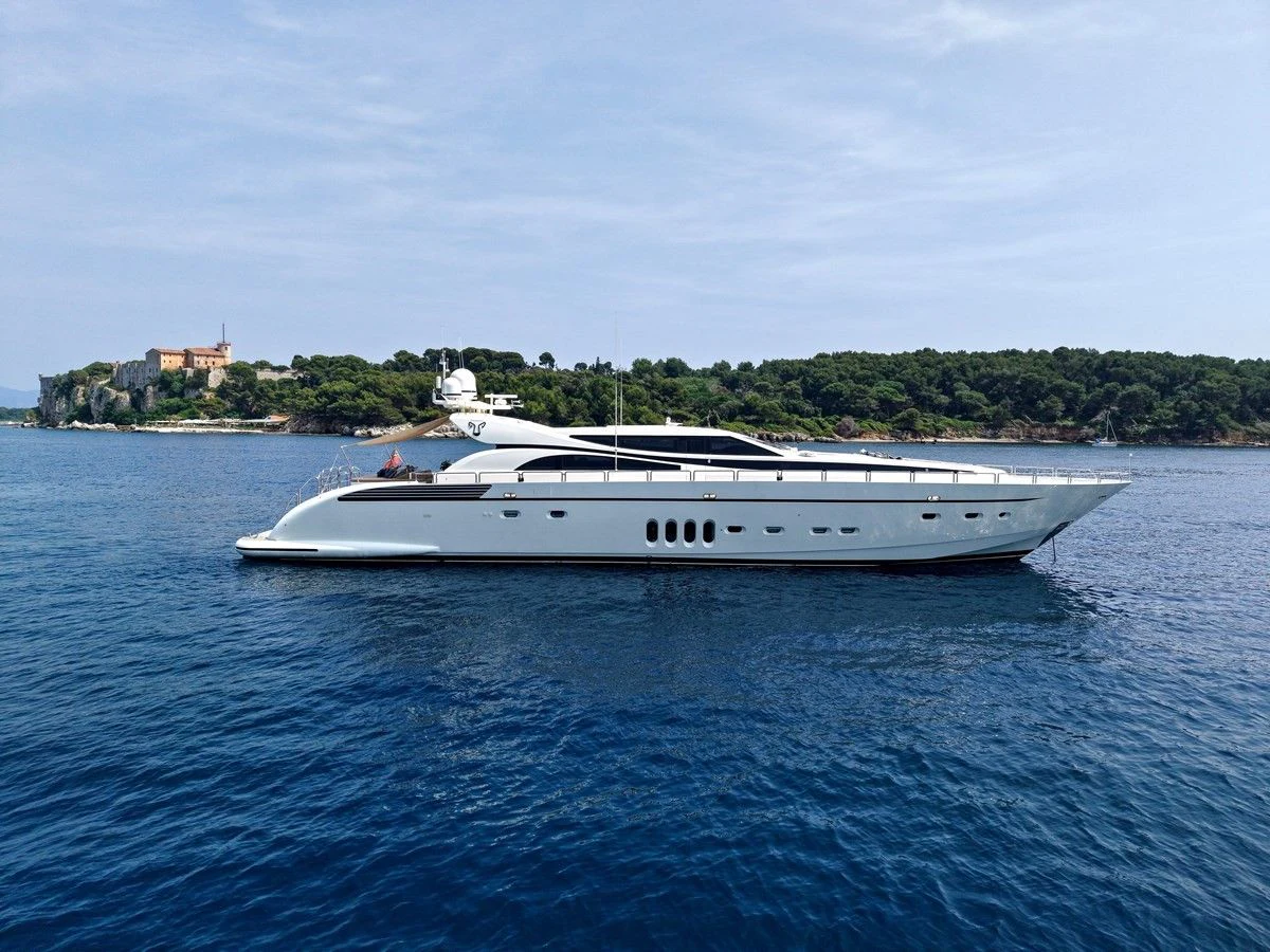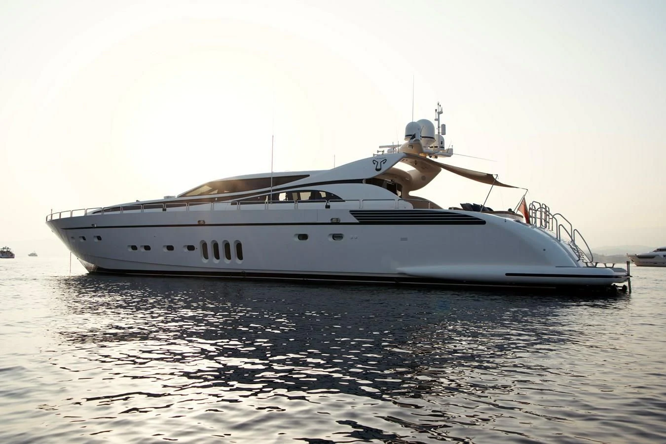 Welcome aboard the CHEEKY TIGER, a quintessence of luxury and speed. Built by the renowned Italian shipyard Leopard in 2004, this majestic motor yacht underwent an extensive refit in 2015 to elevate its grandeur further. The CHEEKY TIGER is a remarkable example of the Leopard 34 Sport model, boasting a length overall of 111 feet (34.1 meters) and an impressive beam of over 23 feet (7.04 meters). The hull material is GRP, which guarantees durability and longevity while maintaining lightweight characteristics for optimal performance.