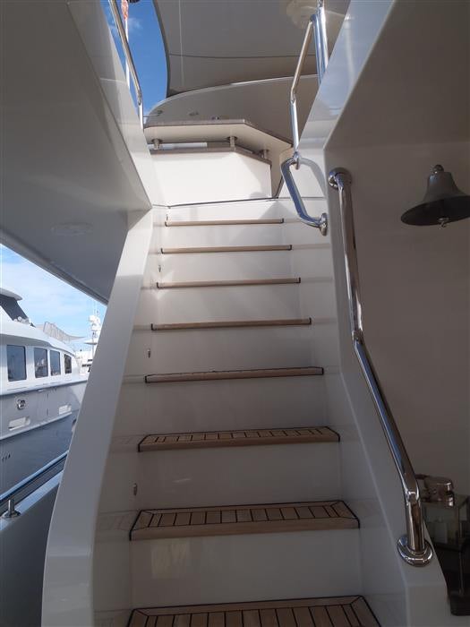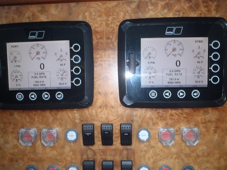 This awesome vessel boasts all of the features of a 100 plus ft motor yacht in a 90 ft package. The 3 huge owner & guest staterooms are forward mid ship The full width master suite, with his & hers heads. 2 Additional Staterooms with private head for crew. Twin MTU 12V2000M94 , Twin 53 KW Generators, Zero Speed Stabilizers, Bow & Stern Thrusters, Eskimo Ice Chipper & Bauer Scuba Compressor make this turn key vessel ready to go