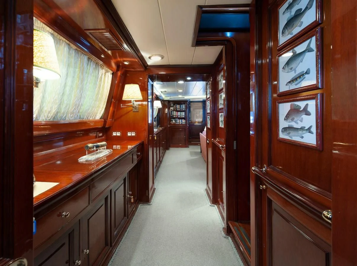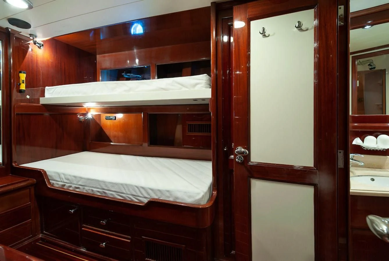 Step inside BELLE BRISE and be welcomed by an interior that is as luxurious as it is comfortable. With accommodations for nine guests across four well-appointed cabins, each space has been meticulously crafted to ensure utmost comfort during your voyage at sea. The master stateroom stands out with its opulent décor and spacious layout while additional guest rooms offer equally exquisite living quarters. A crew capacity for eight ensures a personalized service experience throughout your journey.