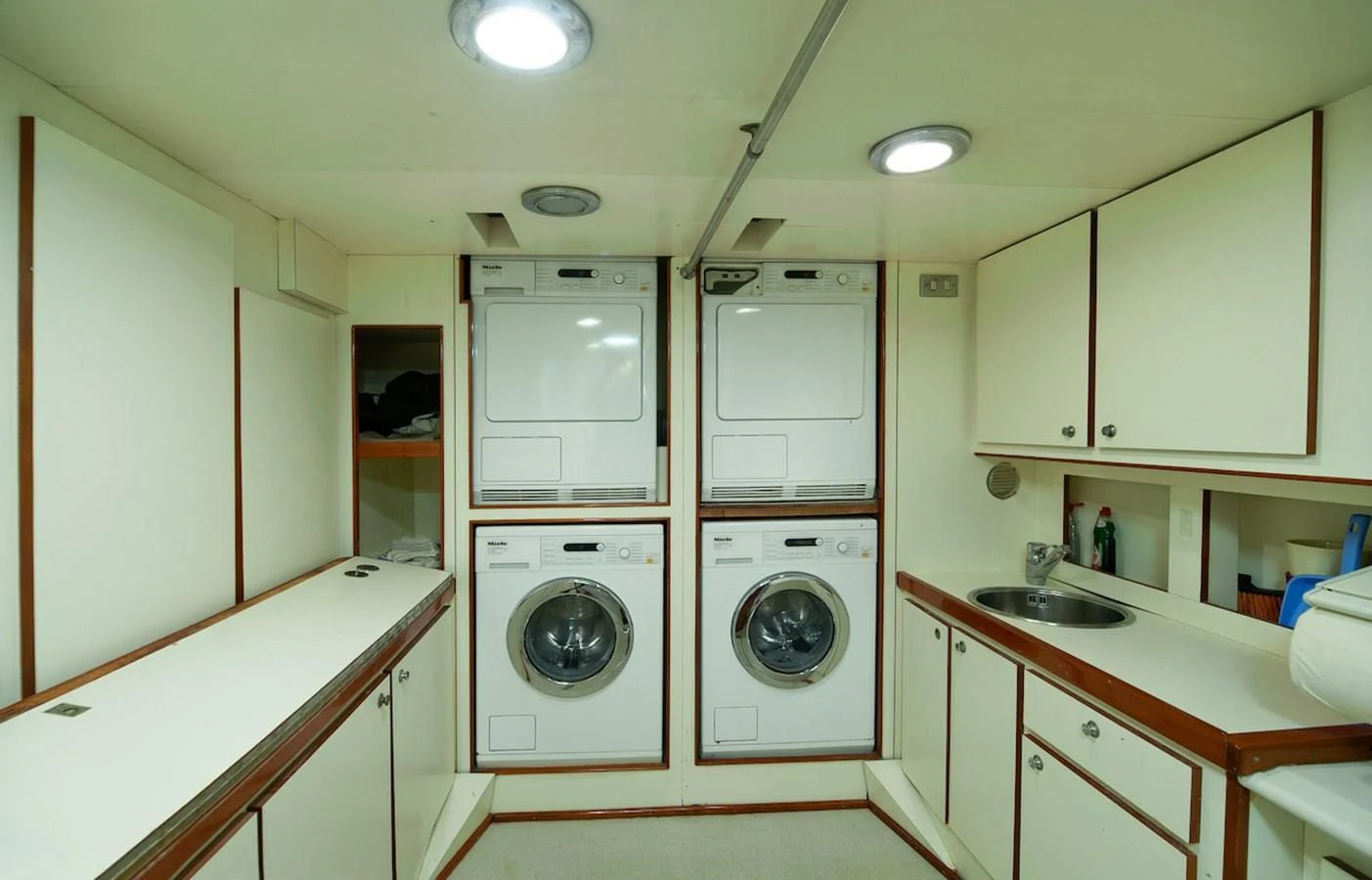 The exterior spaces on BELLE BRISE are nothing short of breathtaking. Her sundecks are generously proportioned, offering guests plenty of room to bask in the sun or enjoy alfresco dining against the backdrop of stunning ocean vistas. Lounging areas are thoughtfully designed for relaxation and socializing, while her dual MTU engines offer a cruising speed of 12 knots and can reach maximum speeds up to 14.5 knots - perfect for those who appreciate a blend of leisurely sailing with moments of exhilarating speed.