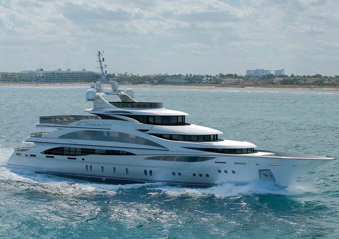 DIAMONDS ARE FOREVER also comes equipped with a fuel capacity spanning approximately 31704 gallons which allows it long-range cruising capabilities without frequent stops for refueling - perfect for those lengthy voyages across vast oceans or simply exploring secluded islands at leisure.