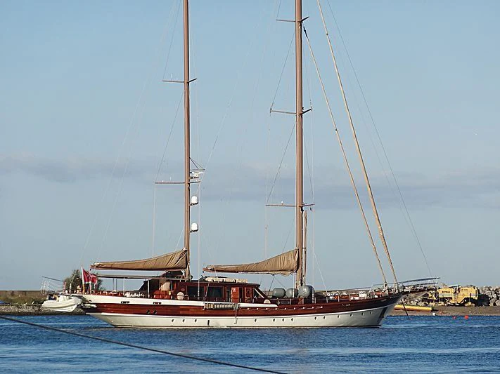 Introducing the resplendent DON CHRIS, a custom-built sailing yacht that exudes grandeur and elegance in every aspect. Launched by the esteemed Barka shipyard in 2010 and refitted meticulously in 2016, this magnificent vessel boasts an impressive length overall (LOA) of 127 feet (39 meters). With its steel hull material and broad beam of 26 feet (8.6 meters), DON CHRIS showcases a perfect blend of strength and spaciousness. The exterior design is nothing short of breathtaking, with sleek lines that effortlessly cut through the waters at cruising speeds of 11 knots and can reach up to a maximum speed of 12 knots.