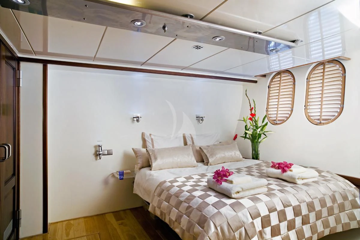 The exterior design of DWINGER is nothing short of breathtaking. Its monohull structure, crafted from resilient aluminum, exudes strength and durability while maintaining an elegant silhouette on the water. The yacht's cruising speed is set at a comfortable 10 knots, but it can reach up to an impressive maximum speed of 18 knots when the wind conditions are just right - all thanks to its powerful MTU engine boasting a power output of 462 horsepower.