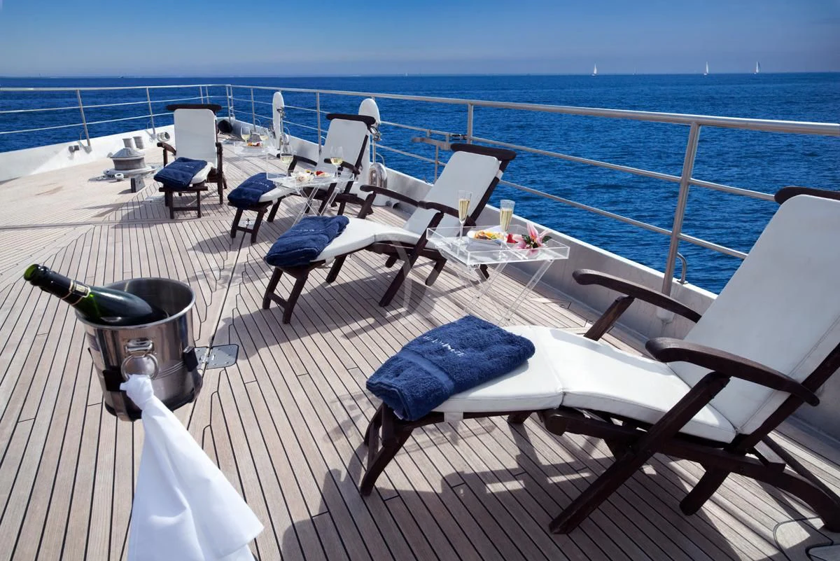 Step aboard DWINGER, and you're instantly welcomed into an oasis of luxury accentuated by its spacious sundecks perfect for basking under the sun or enjoying alfresco dining under the stars. The outdoor lounging areas are meticulously designed to offer panoramic views of your surroundings without compromising privacy or comfort.