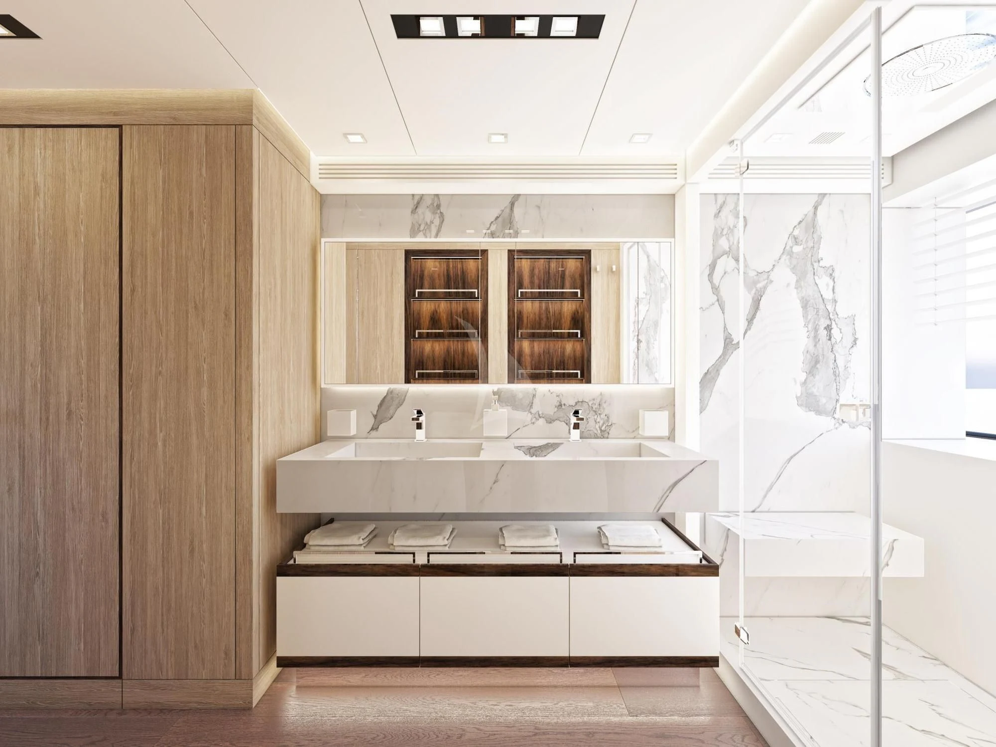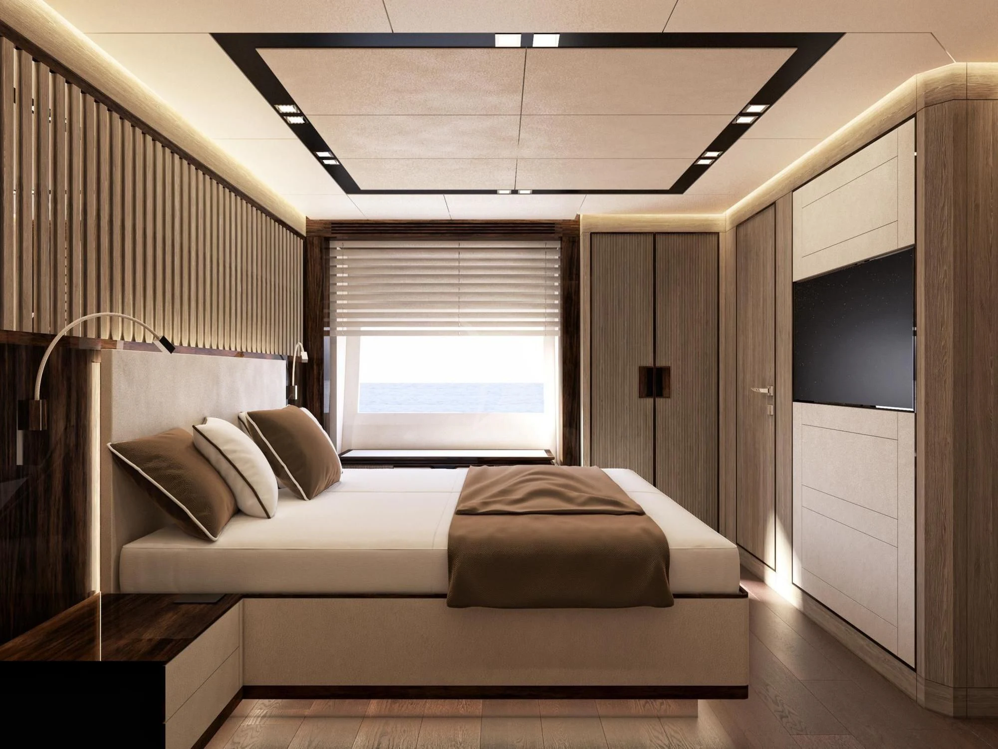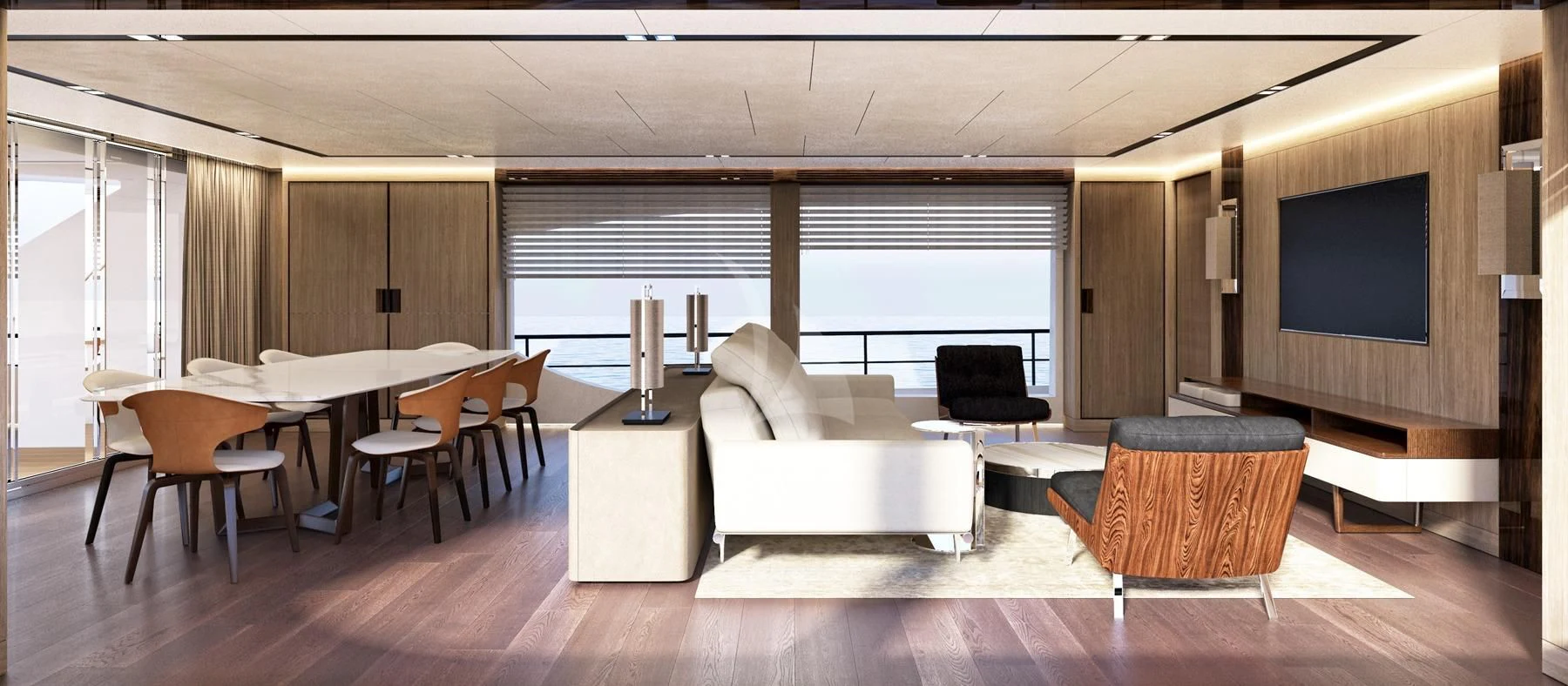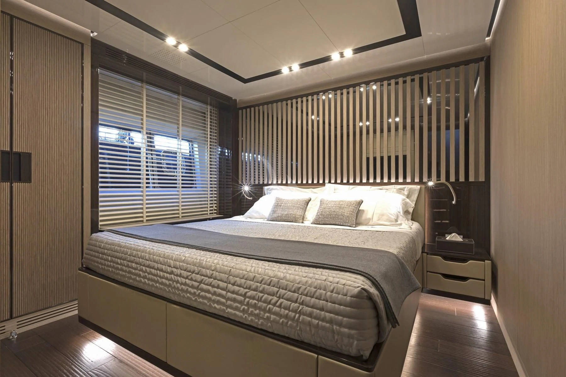 This 100’ Maiora 30 Walkaround model from the Italian brand Maiora of Next Group, is the result of a renovated in-house production, that stands out with her large outdoor areas and broad side walkways allowing easy and safe passenger access from stern to bow.