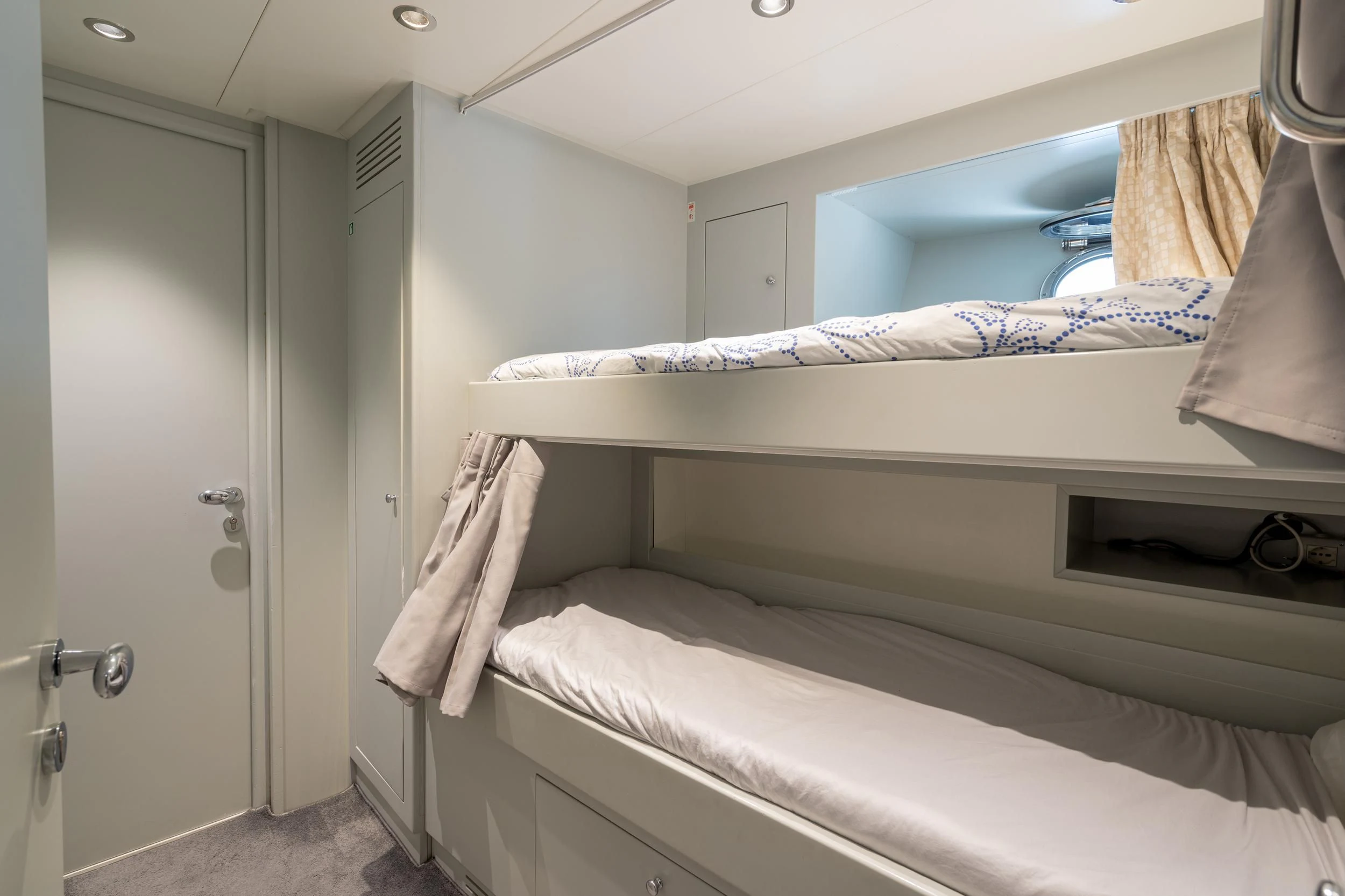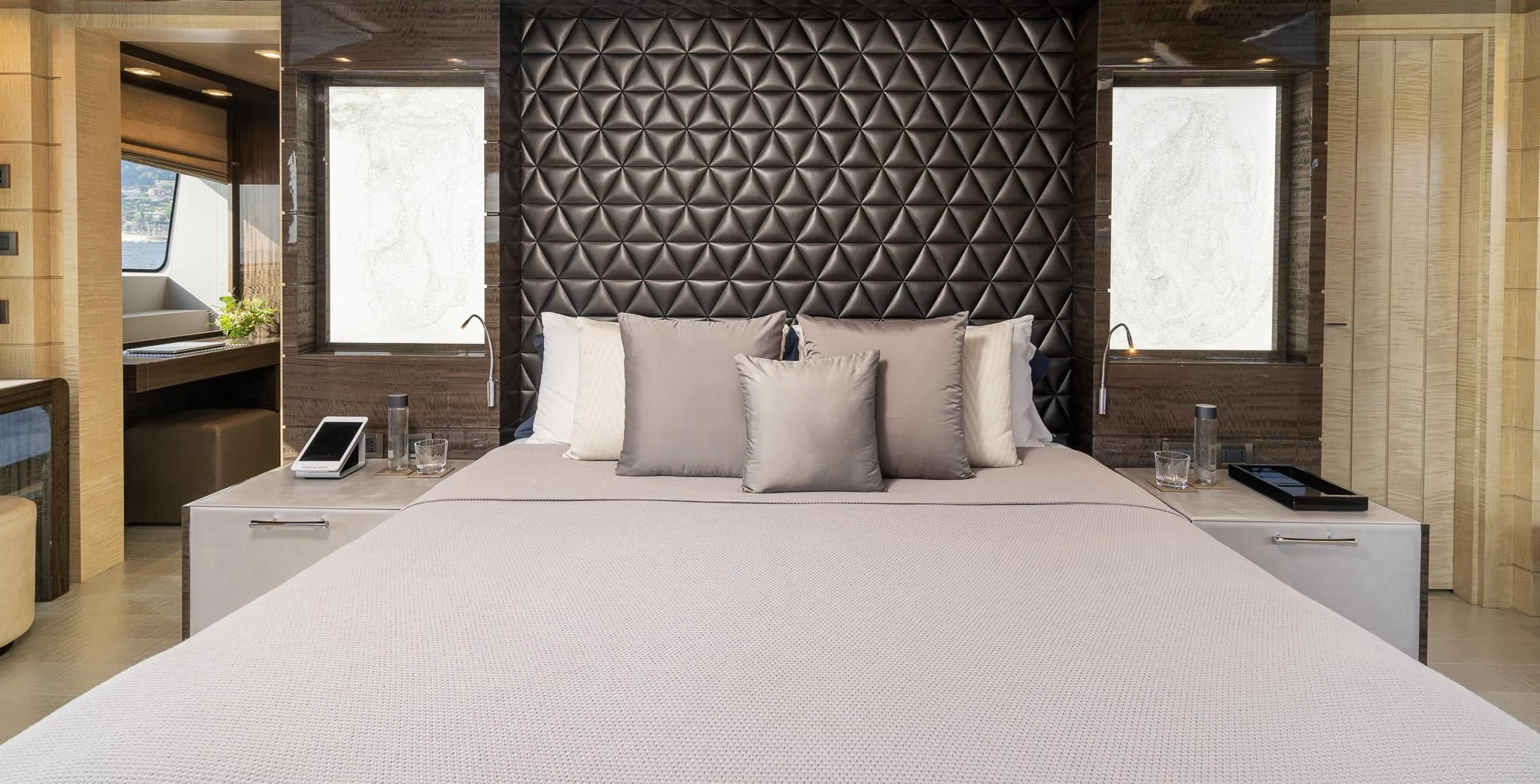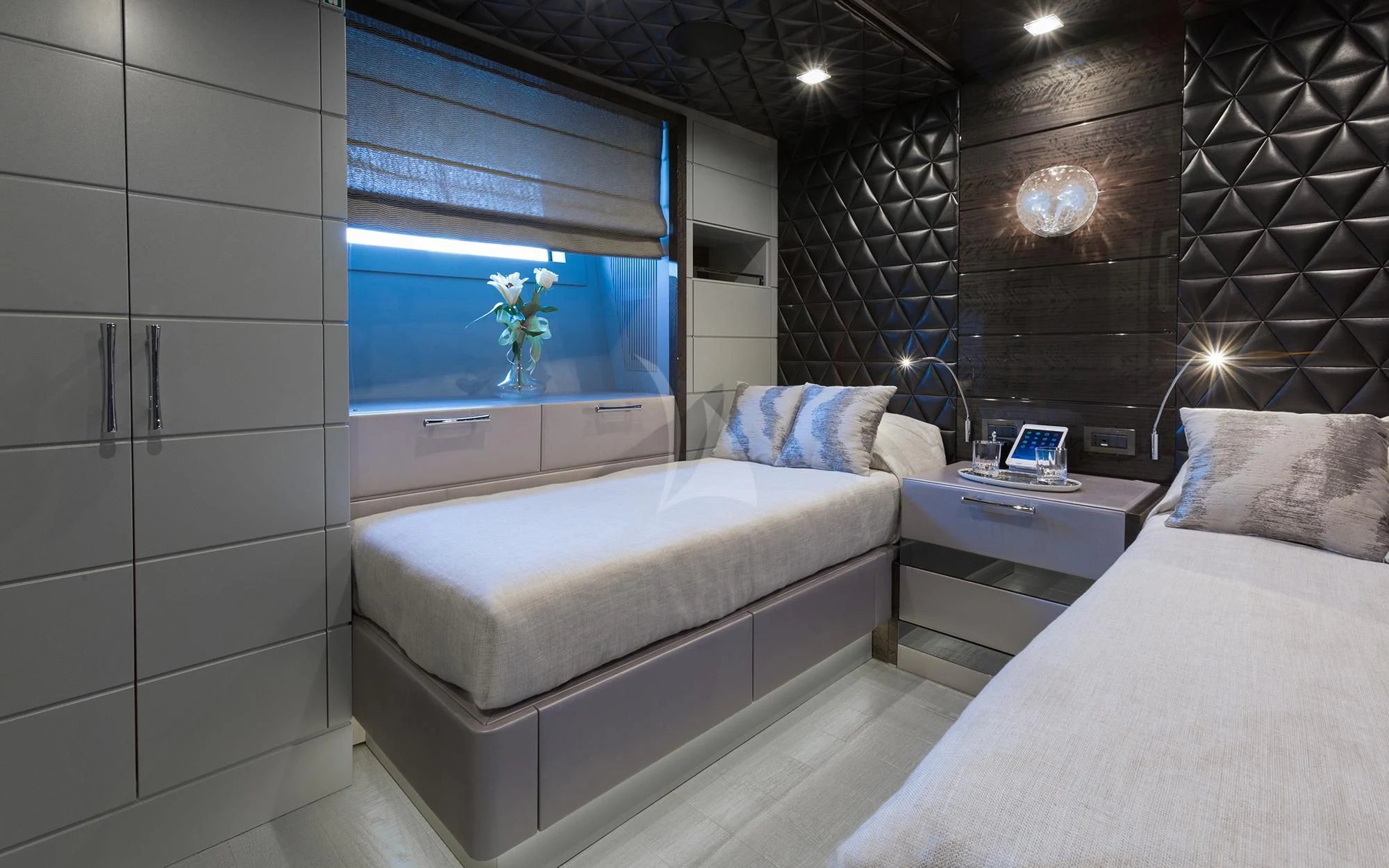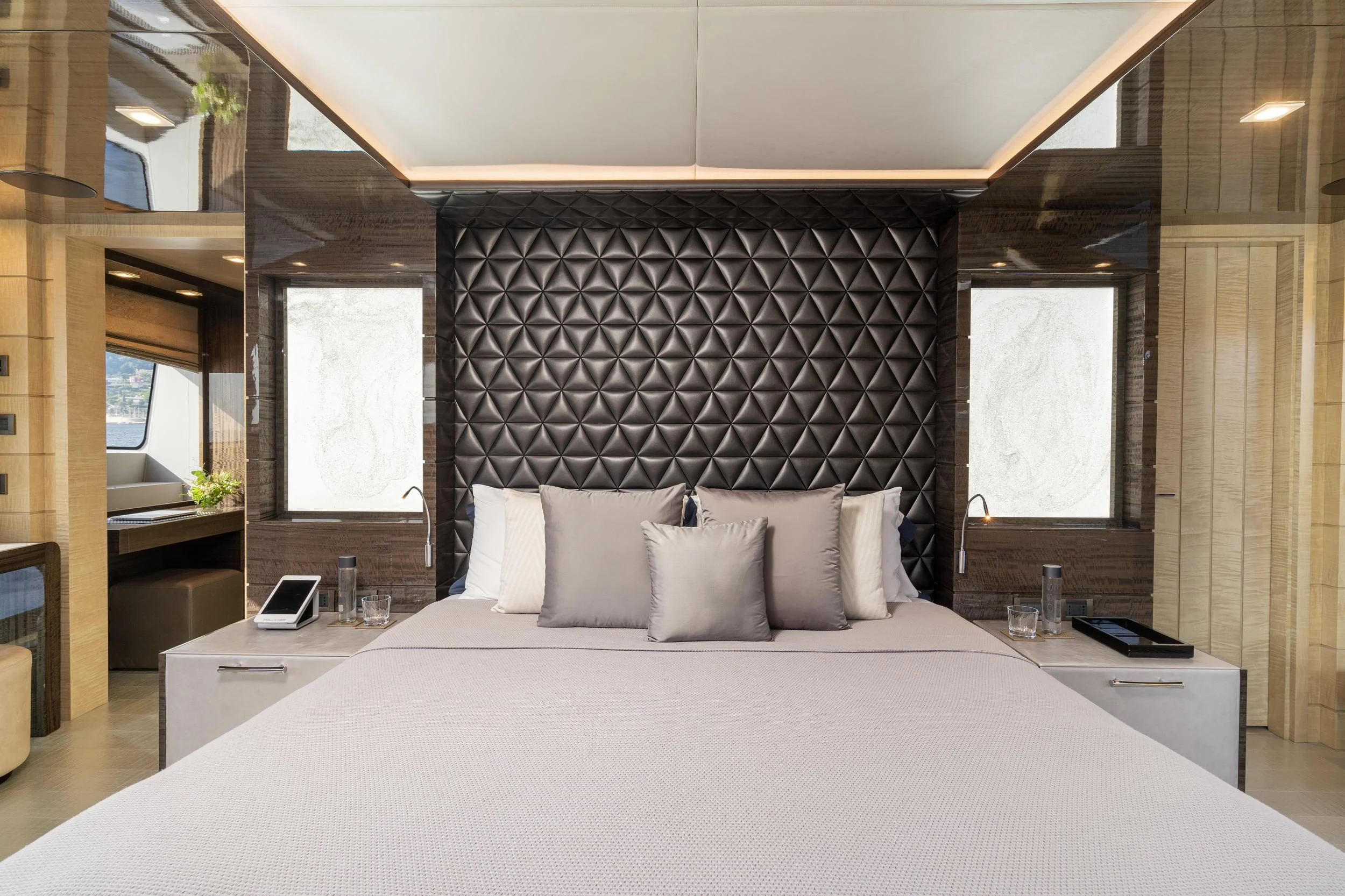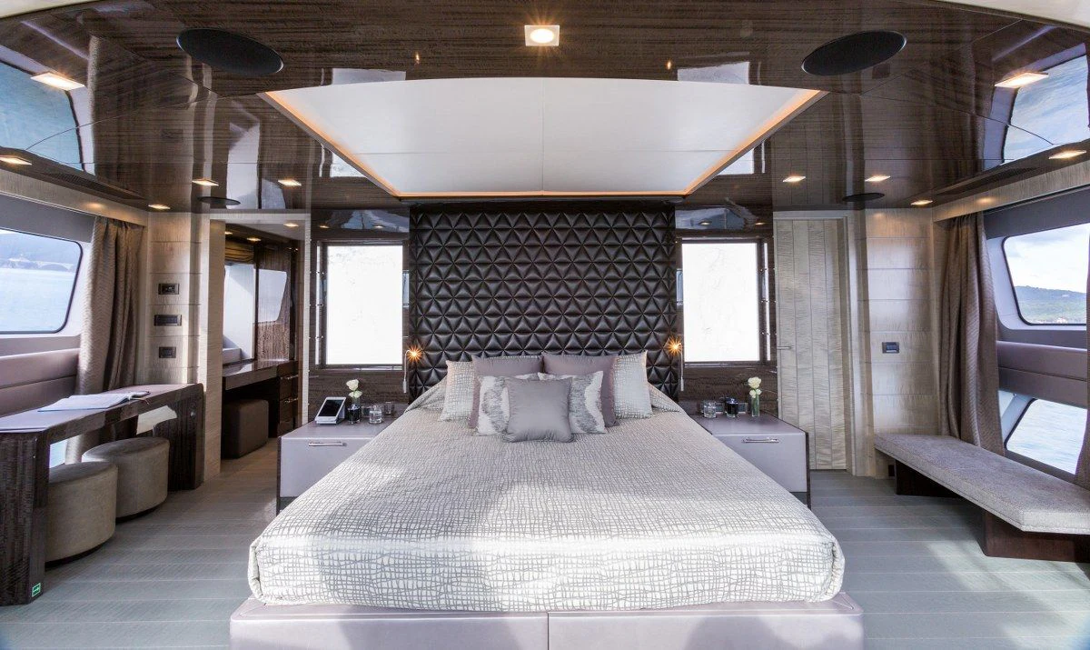Among these accommodations is the master stateroom - an opulent retreat that offers ultimate privacy for its occupants. Here one can find plush furnishings complemented by state-of-the-art entertainment systems ensuring every moment spent onboard is filled with pleasure.