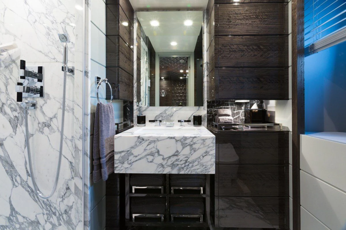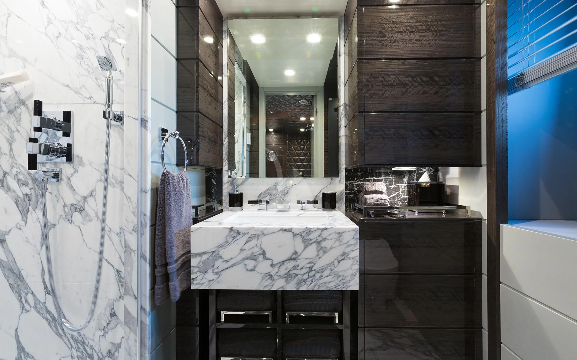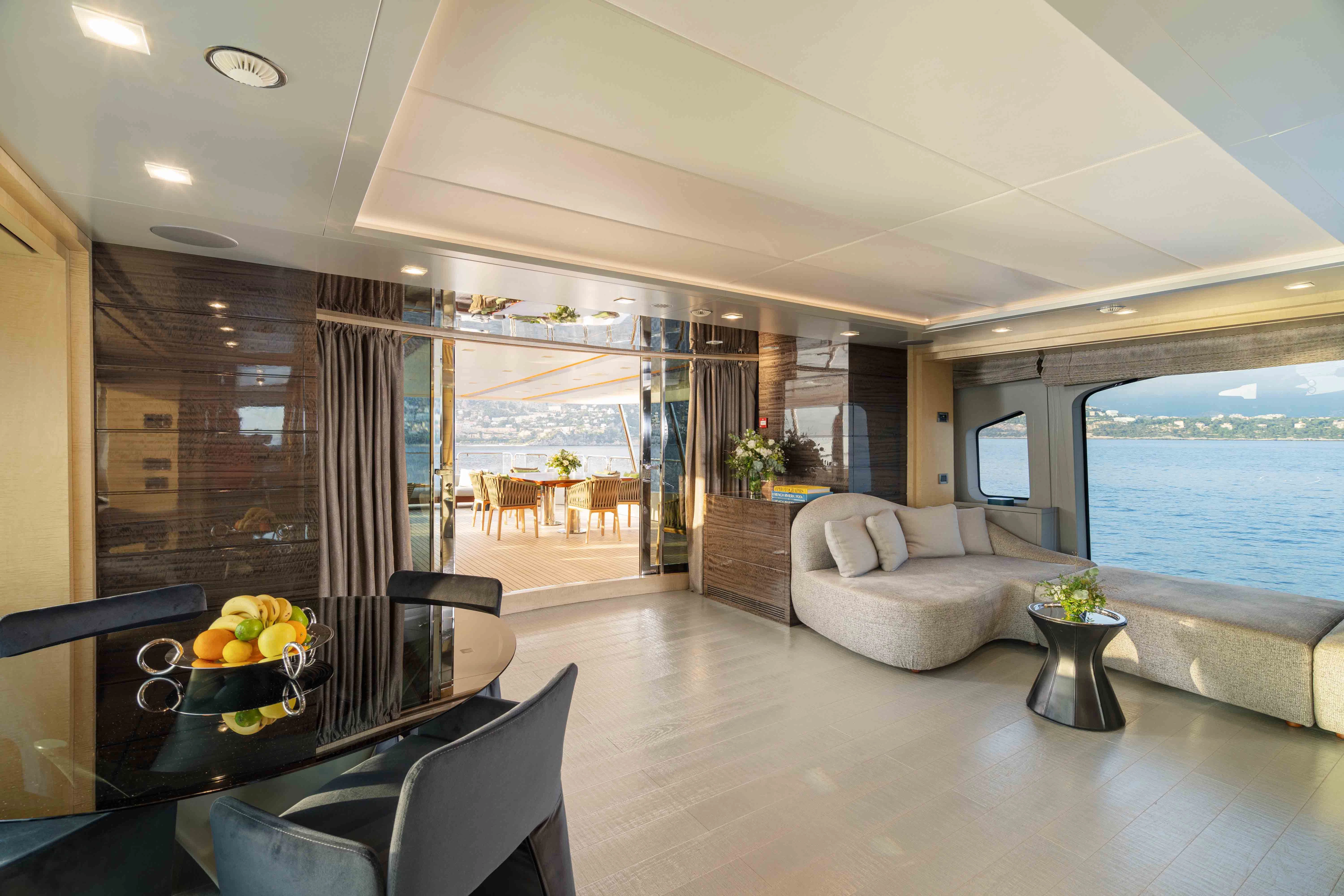 Step inside EDESIA and you are welcomed into a world where luxury meets comfort. Designed with utmost care and attention to detail, her interiors exude warmth and serenity through its choice color palette and unique design elements. Capable of accommodating up to twelve guests across five lavish cabins, each space within EDESIA has been thoughtfully designed for relaxation and rejuvenation after a day spent exploring azure waters or engaging in water sports activities using her personal watercraft.
