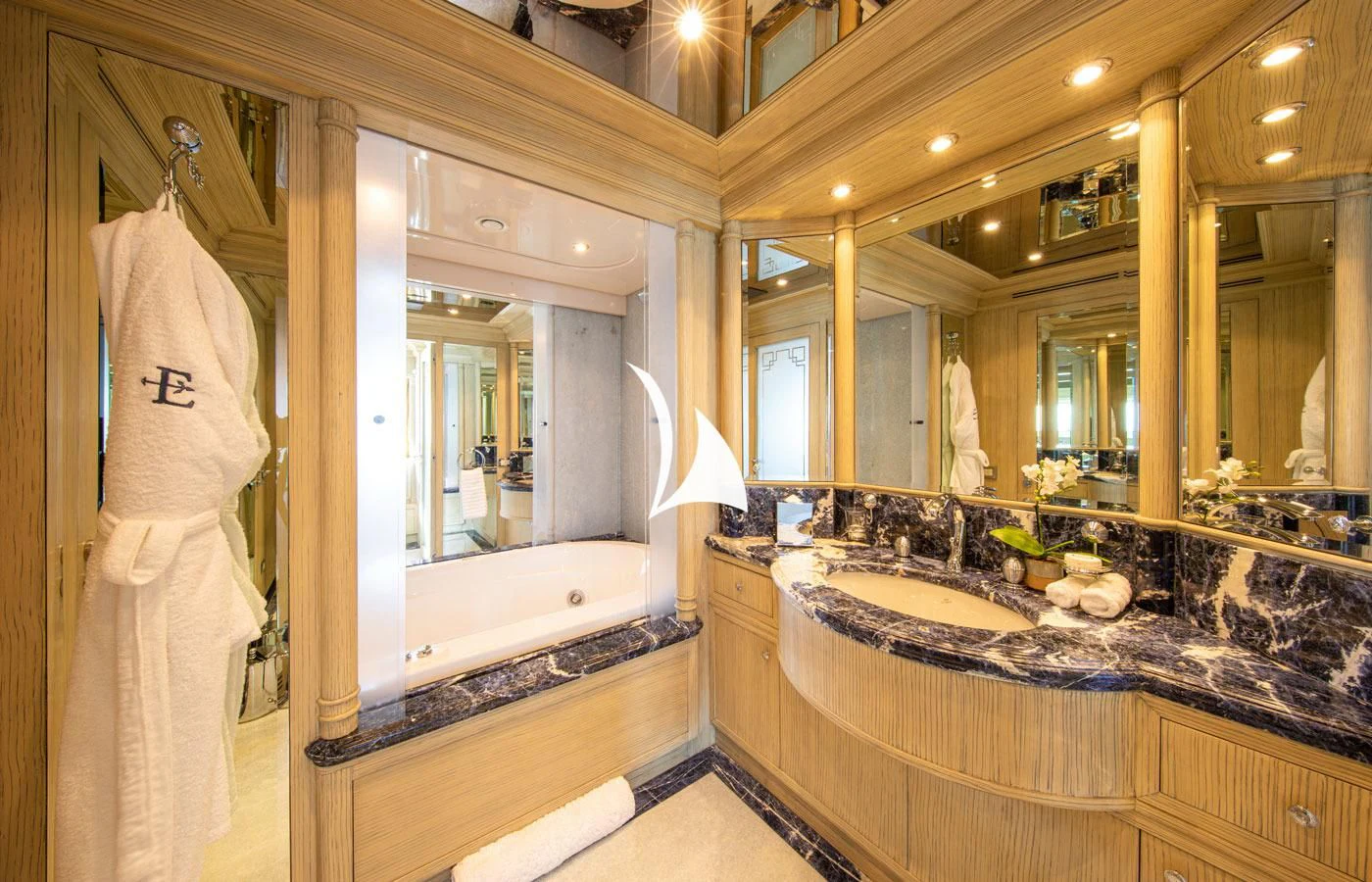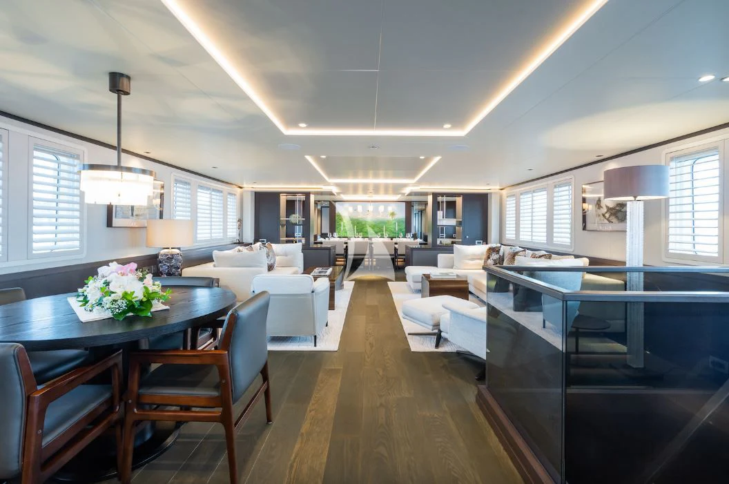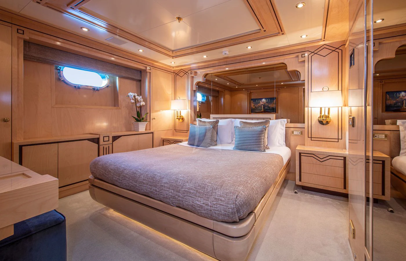 Step inside EMERALD (YET) and be captivated by her opulent interior design that perfectly complements her grand exterior stature. Boasting six luxurious cabins that comfortably accommodate up to fourteen guests along with twelve crew members, she promises an unrivaled yachting experience for all aboard. The master stateroom stands as a testament to refined luxury, featuring plush furnishings set against a backdrop of tastefully chosen colors and textures that exude warmth and comfort.