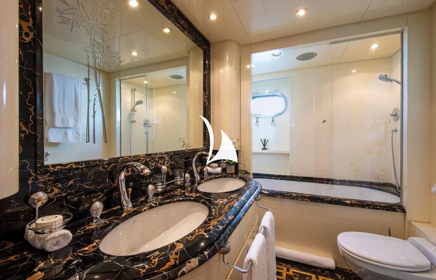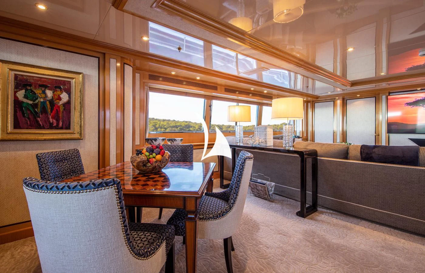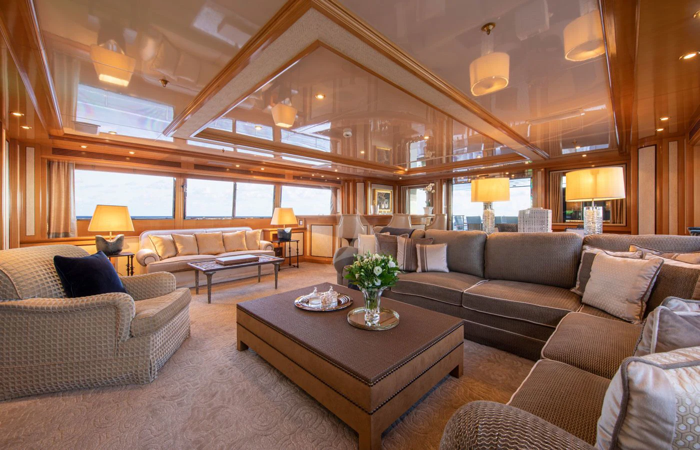 Step inside EMERALD (YET) and be captivated by her opulent interior design that perfectly complements her grand exterior stature. Boasting six luxurious cabins that comfortably accommodate up to fourteen guests along with twelve crew members, she promises an unrivaled yachting experience for all aboard. The master stateroom stands as a testament to refined luxury, featuring plush furnishings set against a backdrop of tastefully chosen colors and textures that exude warmth and comfort.