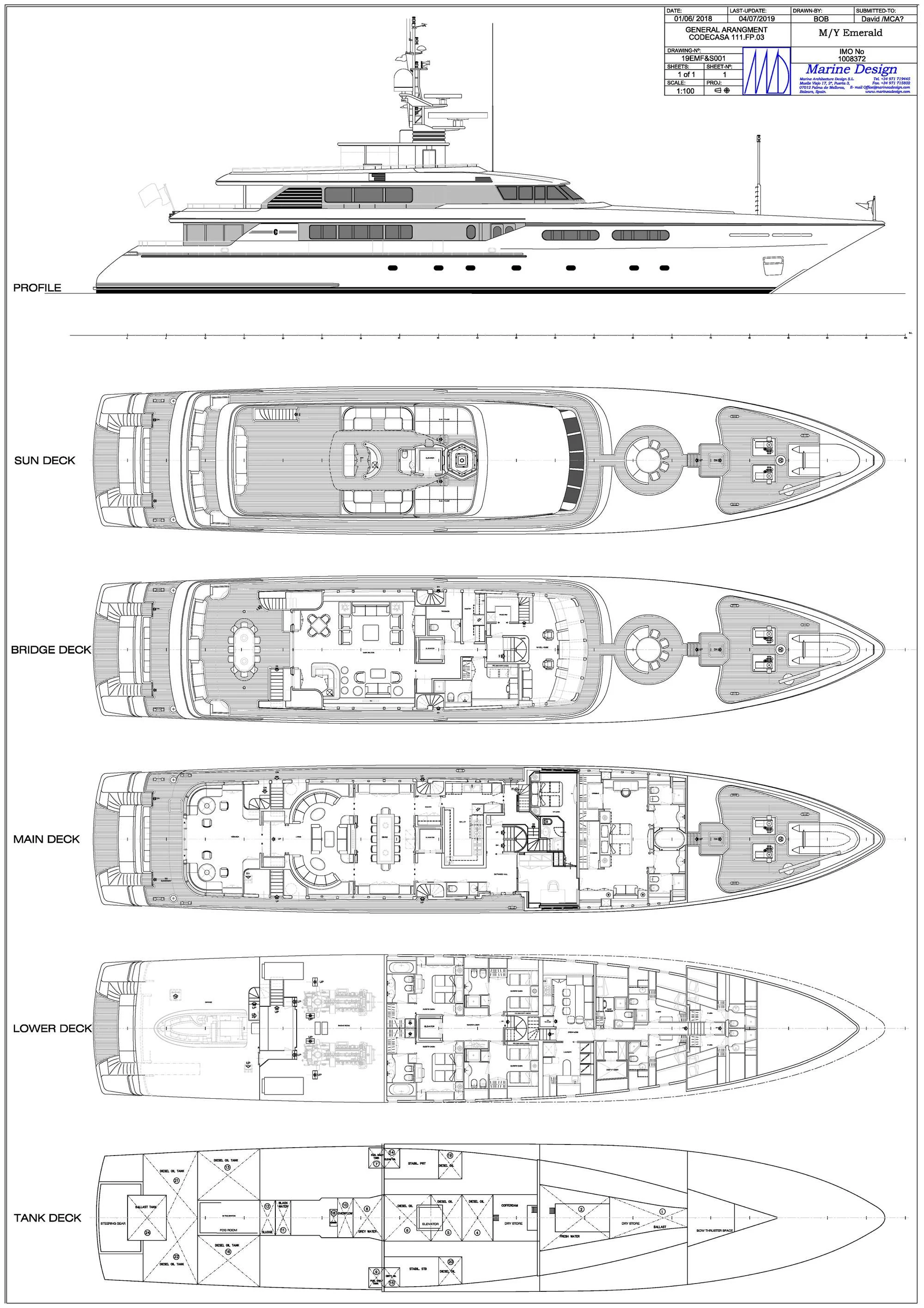 Welcome to the world of luxury yachting, where we present you with an exquisite masterpiece, EMERALD (YET). Built by the renowned Italian shipyard Codecasa Due in 2005 and refurbished in 2019, this majestic motor yacht is a testament to fine craftsmanship and timeless elegance. With her displacement hull crafted from robust steel, EMERALD (YET) measures a substantial 167 feet (51 meters) in length with a beam of 31 feet (9.5 meters) and a maximum draft of just over 9 feet (3.5 meters). This graceful vessel boasts an impressive gross tonnage of 620 tons and displaces approximately 565 tons.