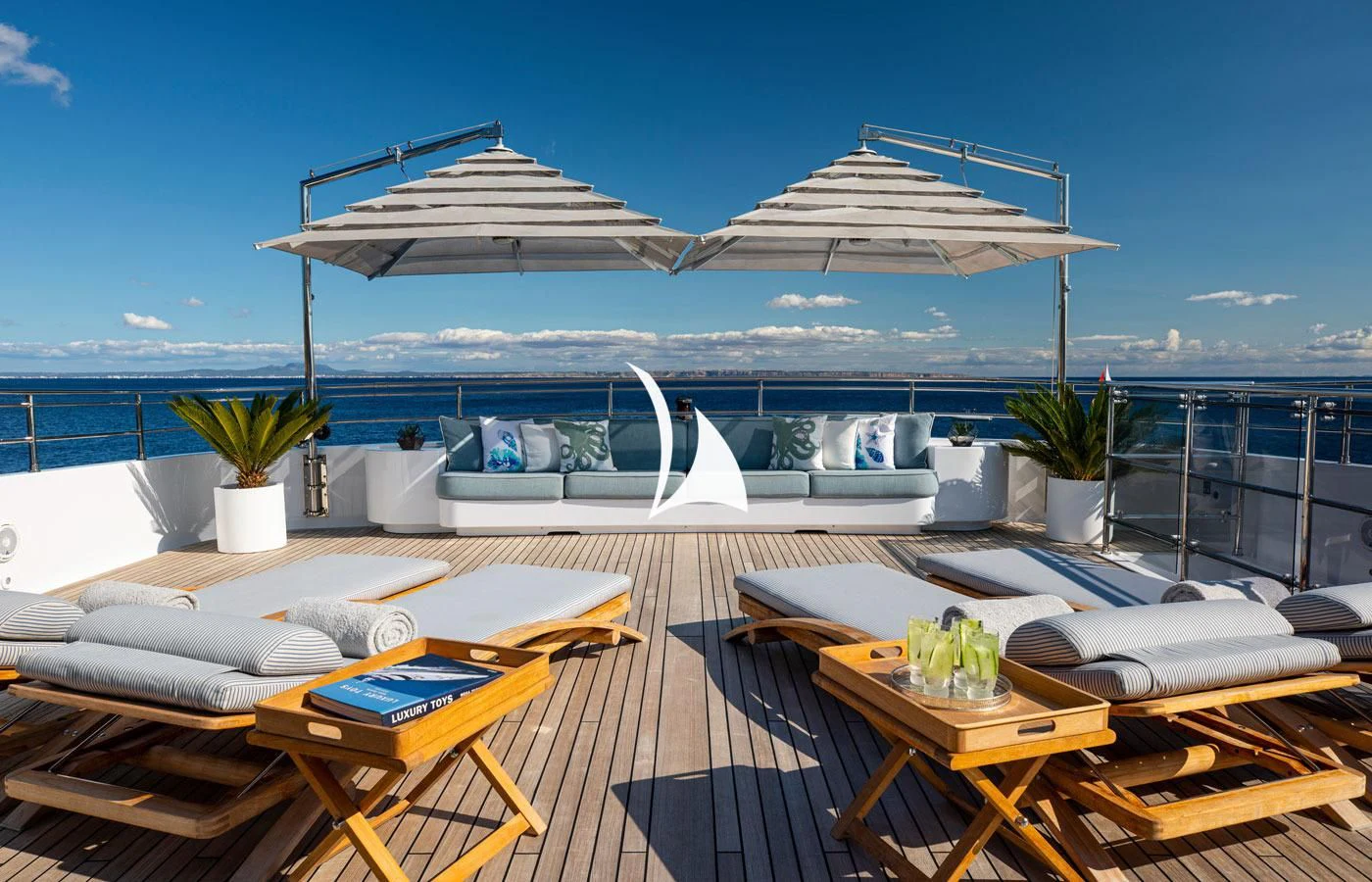 EMERALD (YET)'s exterior design presents a harmonious blend of style and functionality. Her expansive sundecks offer ample space for sunbathing or simply enjoying the breathtaking views that only ocean travel can provide. Al fresco dining areas invite guests to dine under the stars while lounging areas offer comfortable spaces for relaxation or socializing. The yacht's beach club enhances her connection with the sea, providing easy access to water activities or quiet moments by the water's edge.