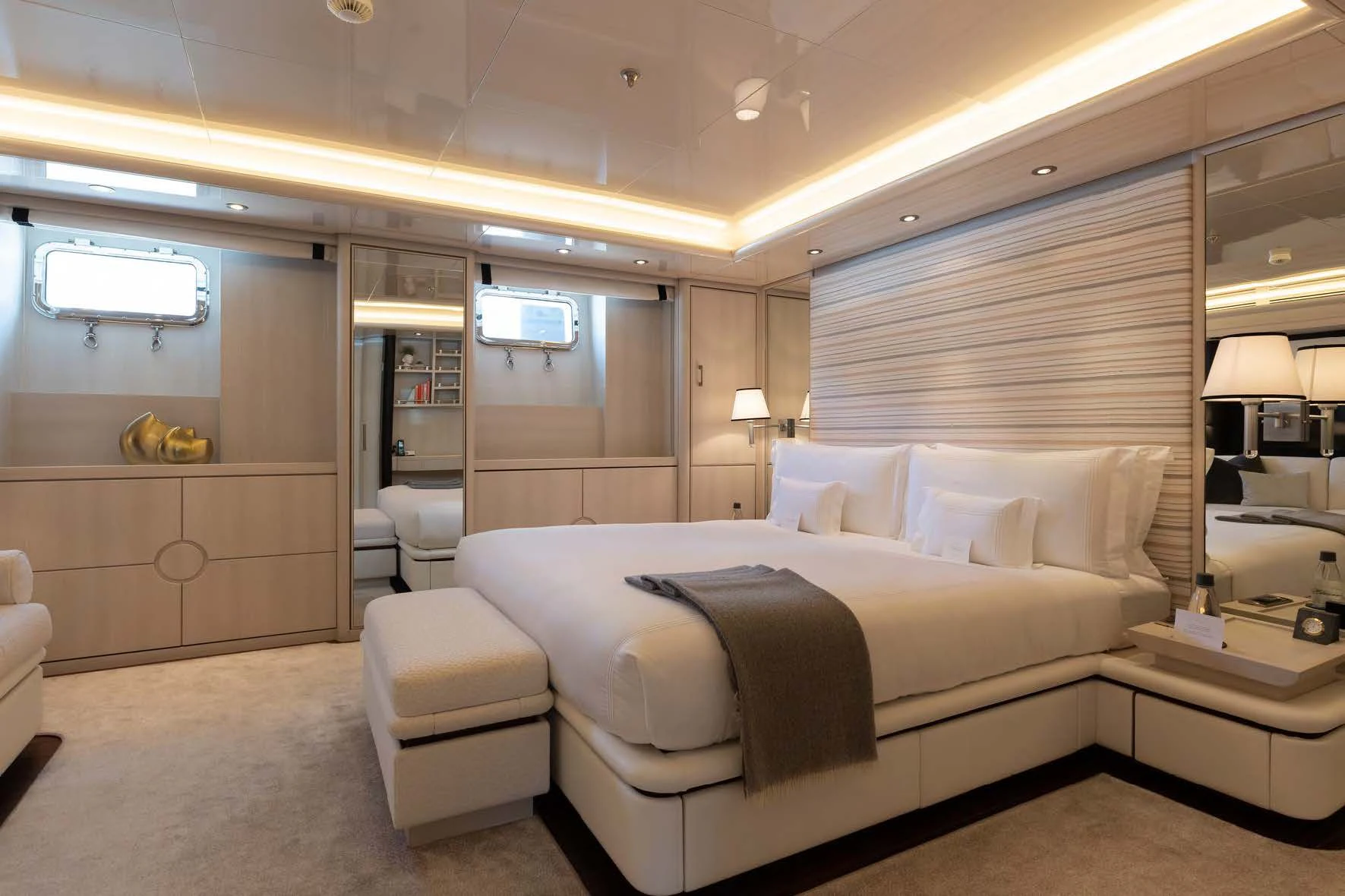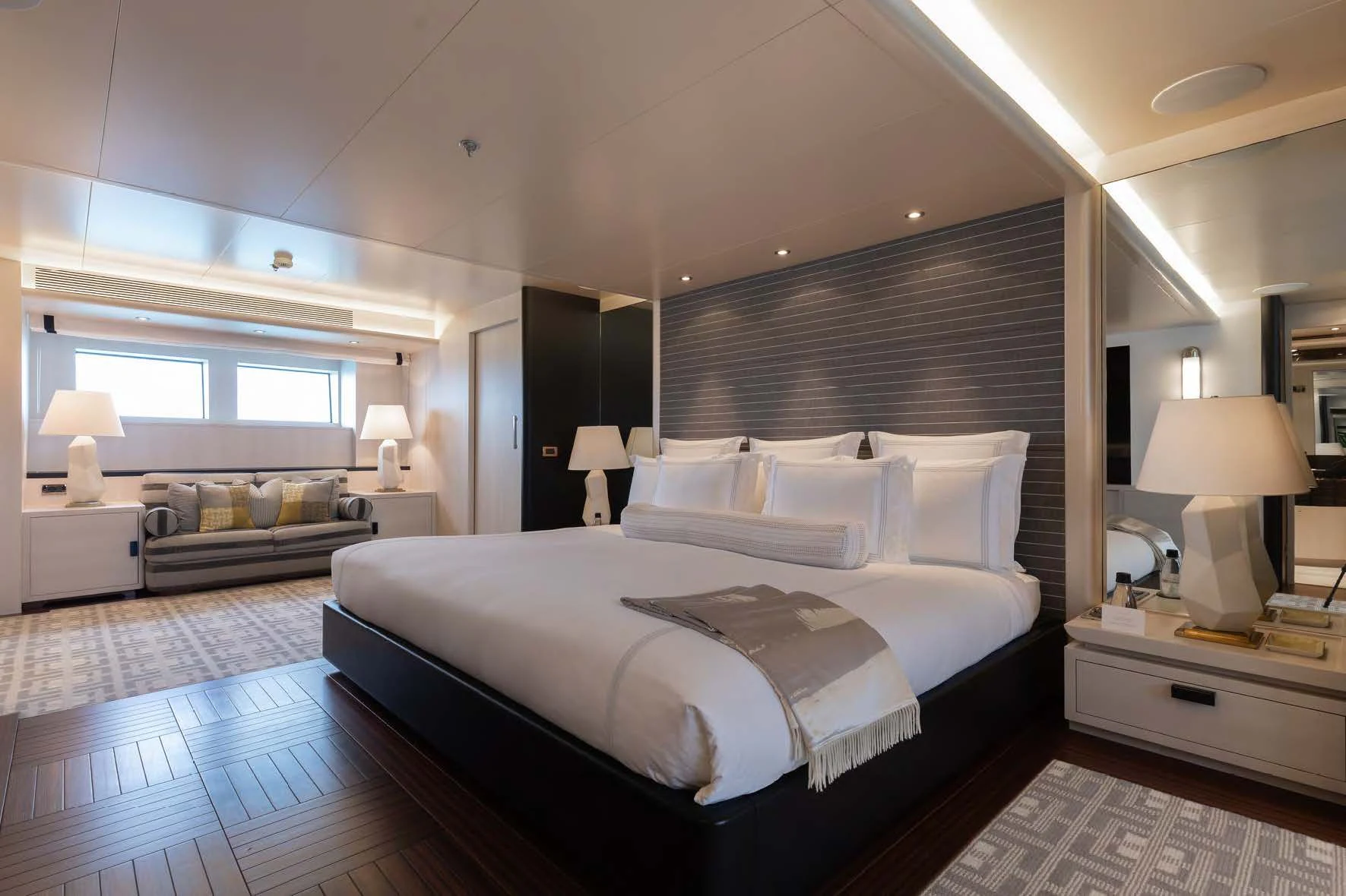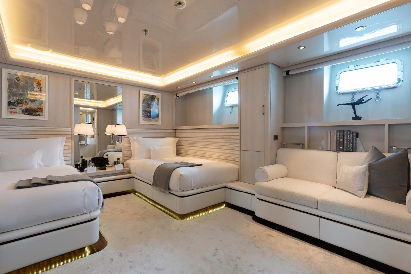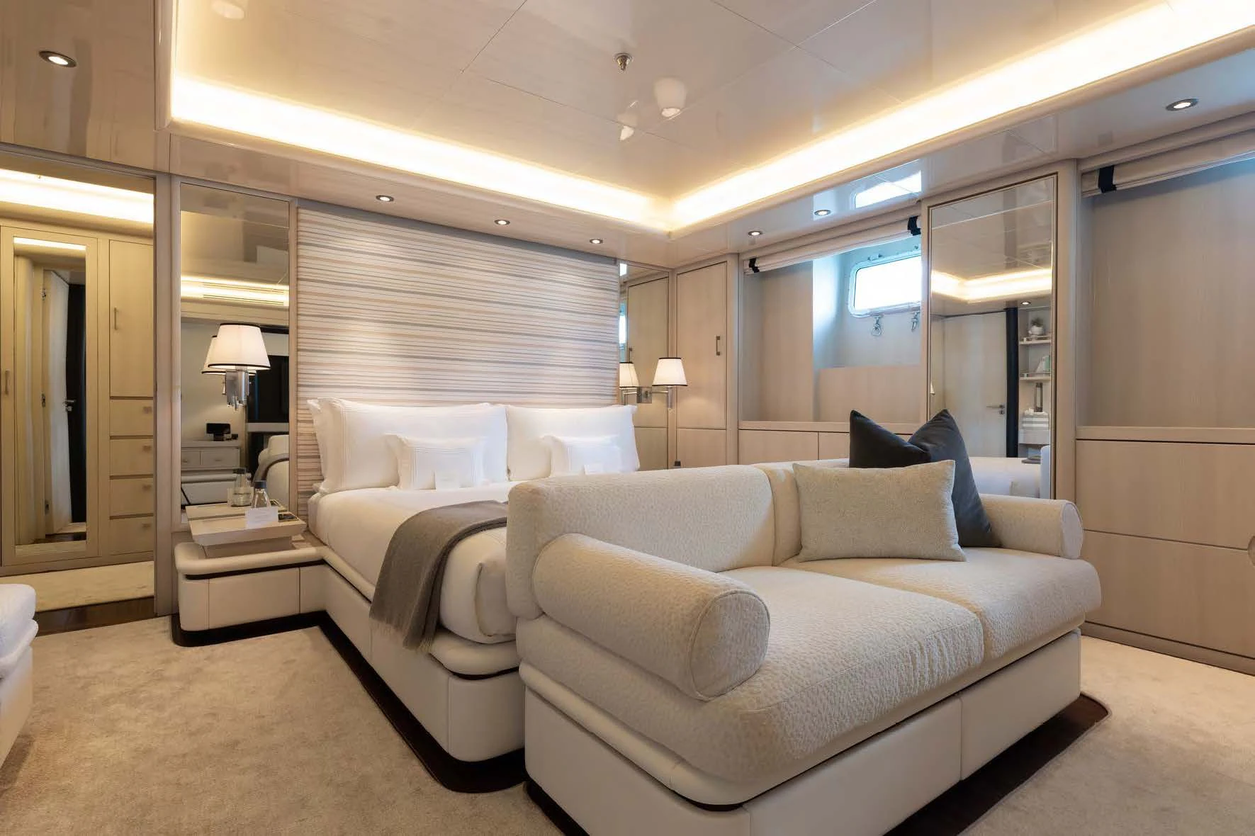 Upon stepping onboard, one is immediately enveloped by opulence and attention to detail that defines ETERNITY’s interior spaces. With accommodations for up to twelve guests across seven lavish cabins and ample space for a crew team of fourteen members, every inch exudes luxury and comfort. Each stateroom offers unique features and design elements that cater to every guest's taste while ensuring they enjoy absolute privacy and serenity throughout their stay.