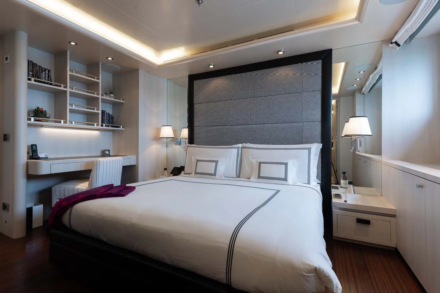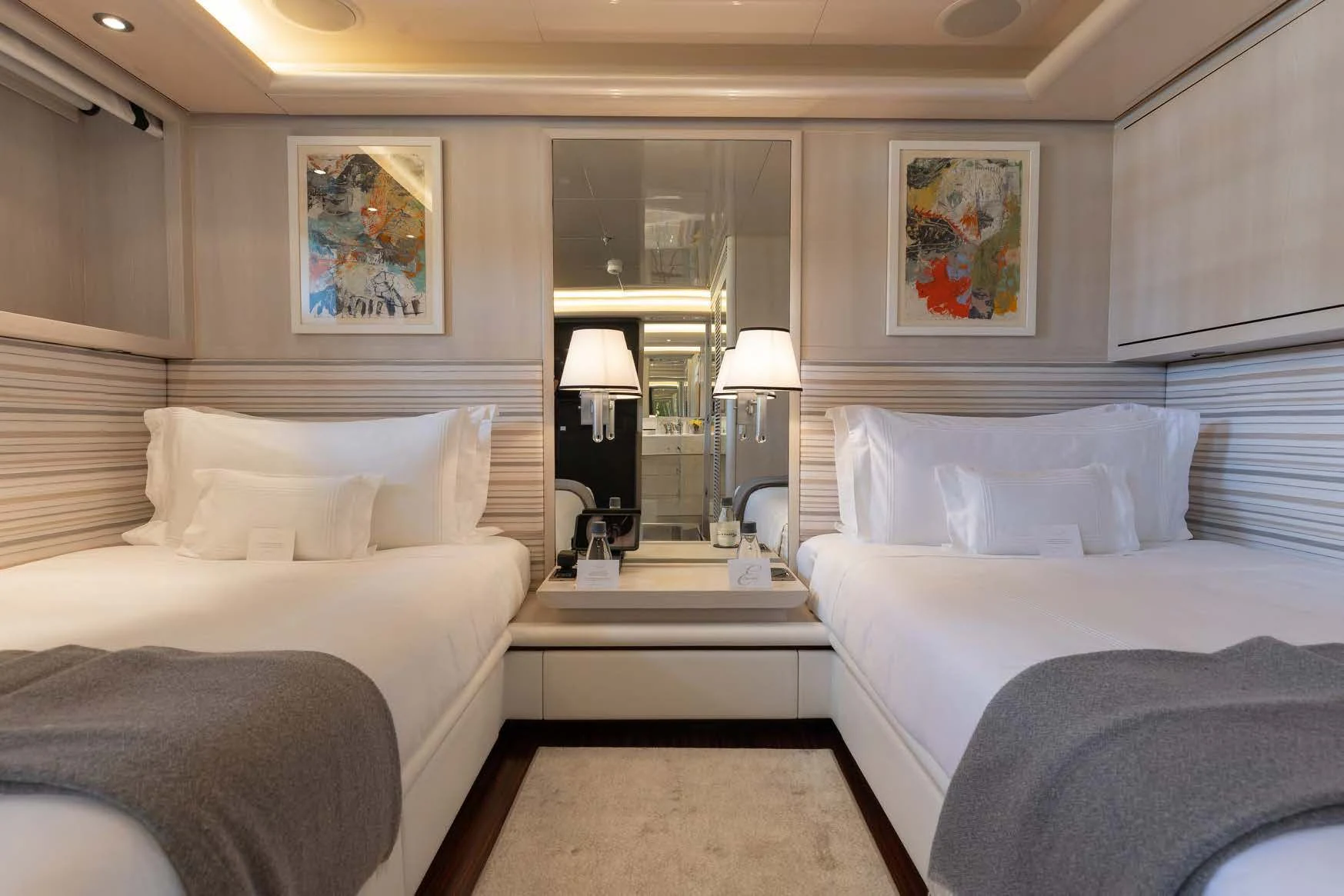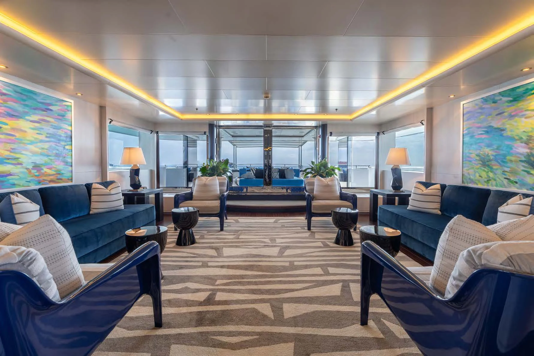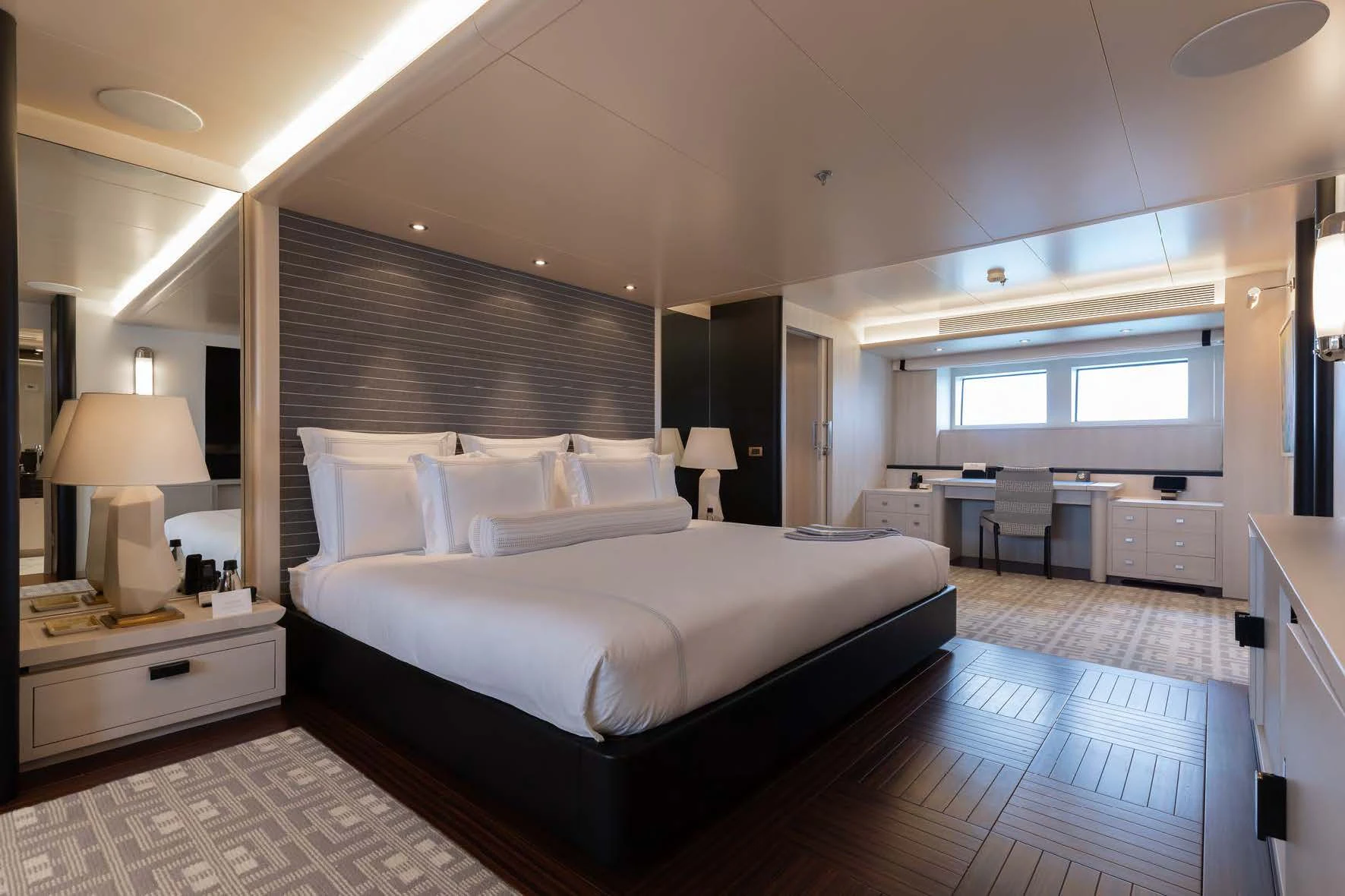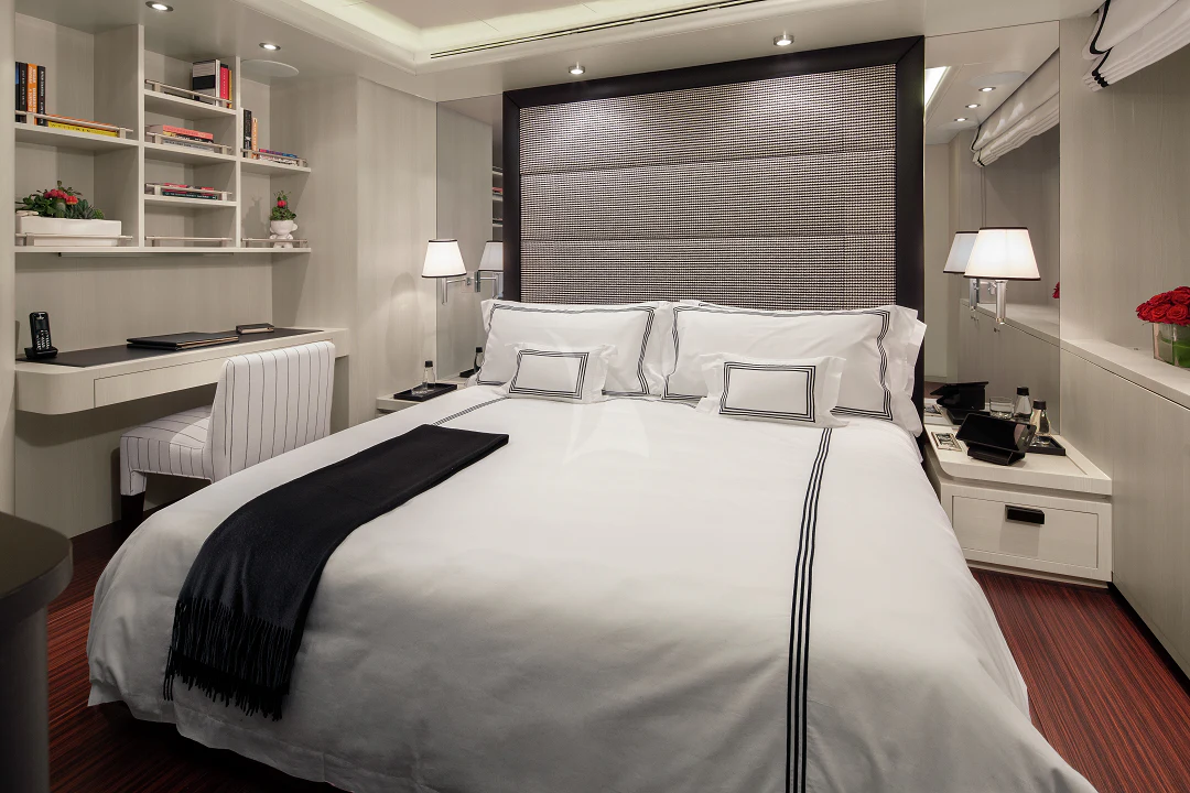 Upon stepping onboard, one is immediately enveloped by opulence and attention to detail that defines ETERNITY’s interior spaces. With accommodations for up to twelve guests across seven lavish cabins and ample space for a crew team of fourteen members, every inch exudes luxury and comfort. Each stateroom offers unique features and design elements that cater to every guest's taste while ensuring they enjoy absolute privacy and serenity throughout their stay.