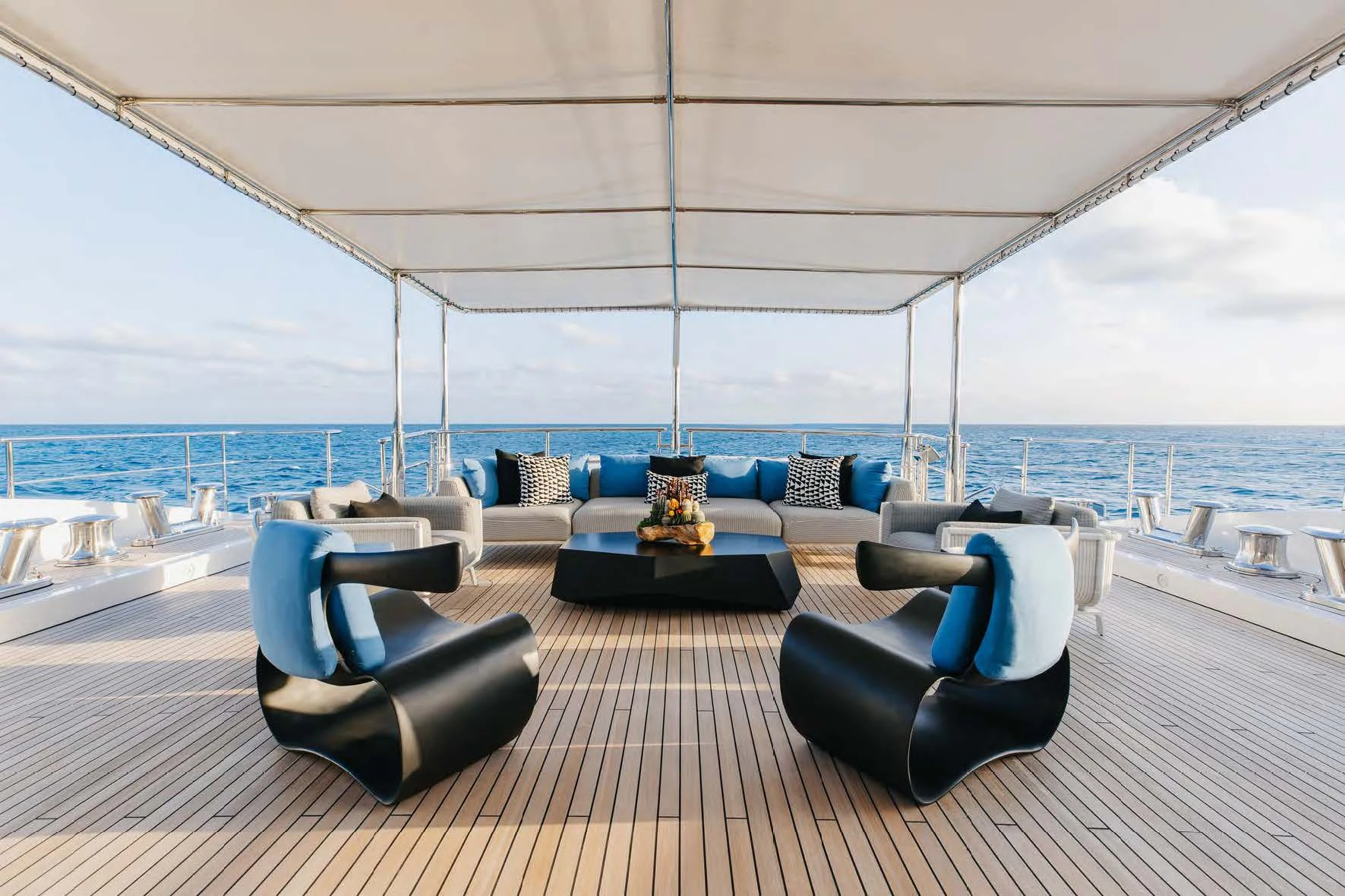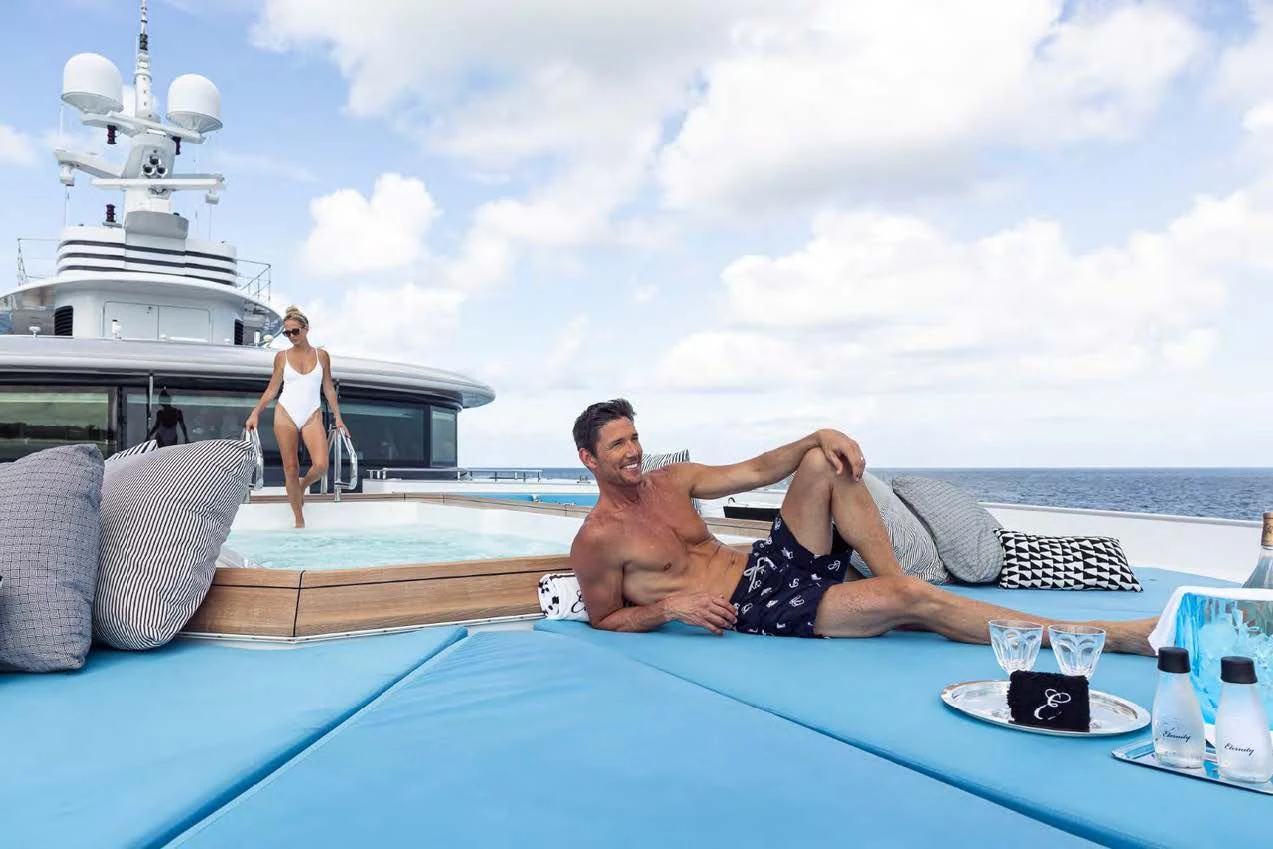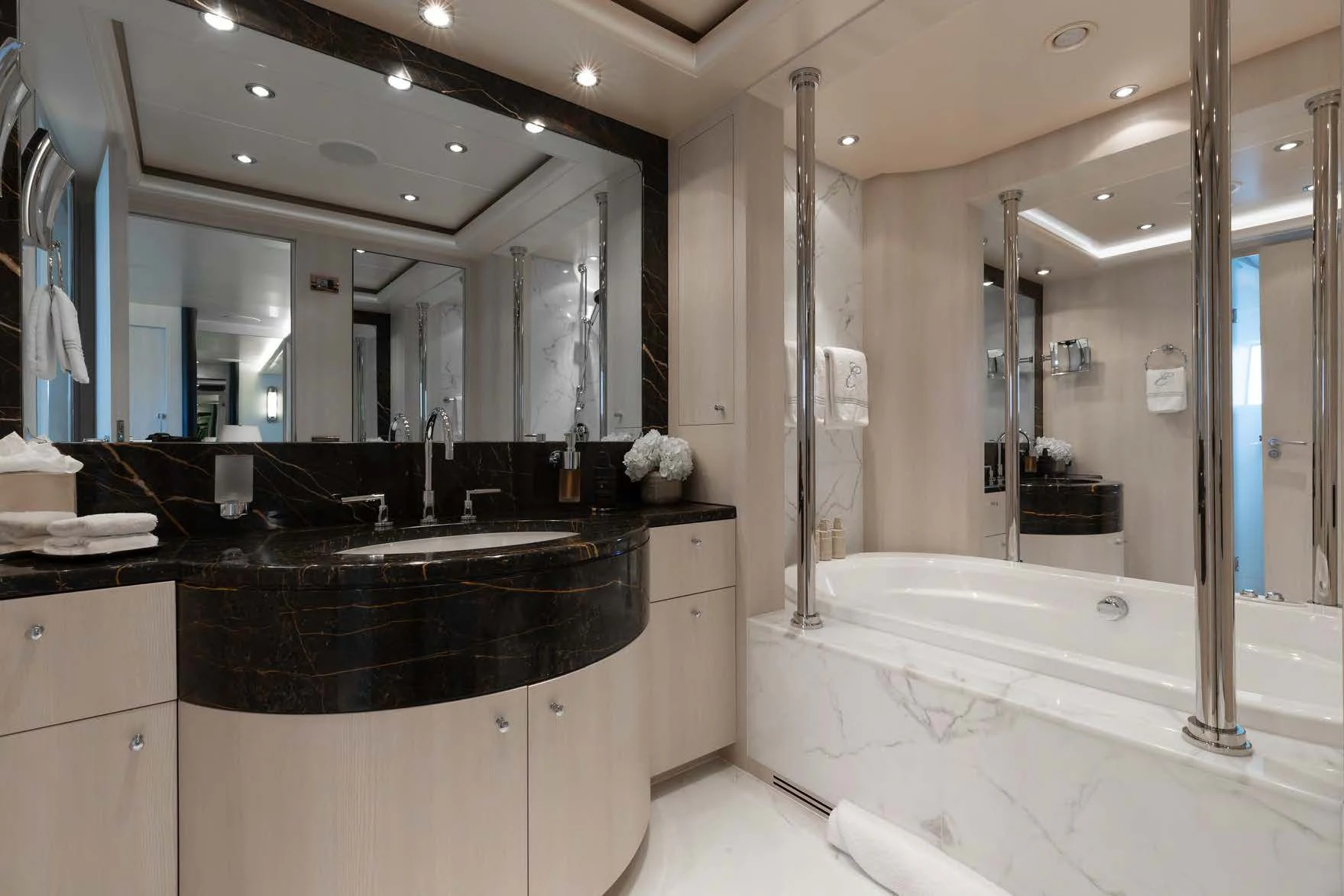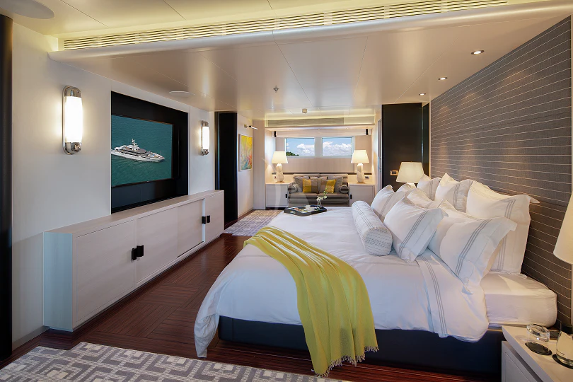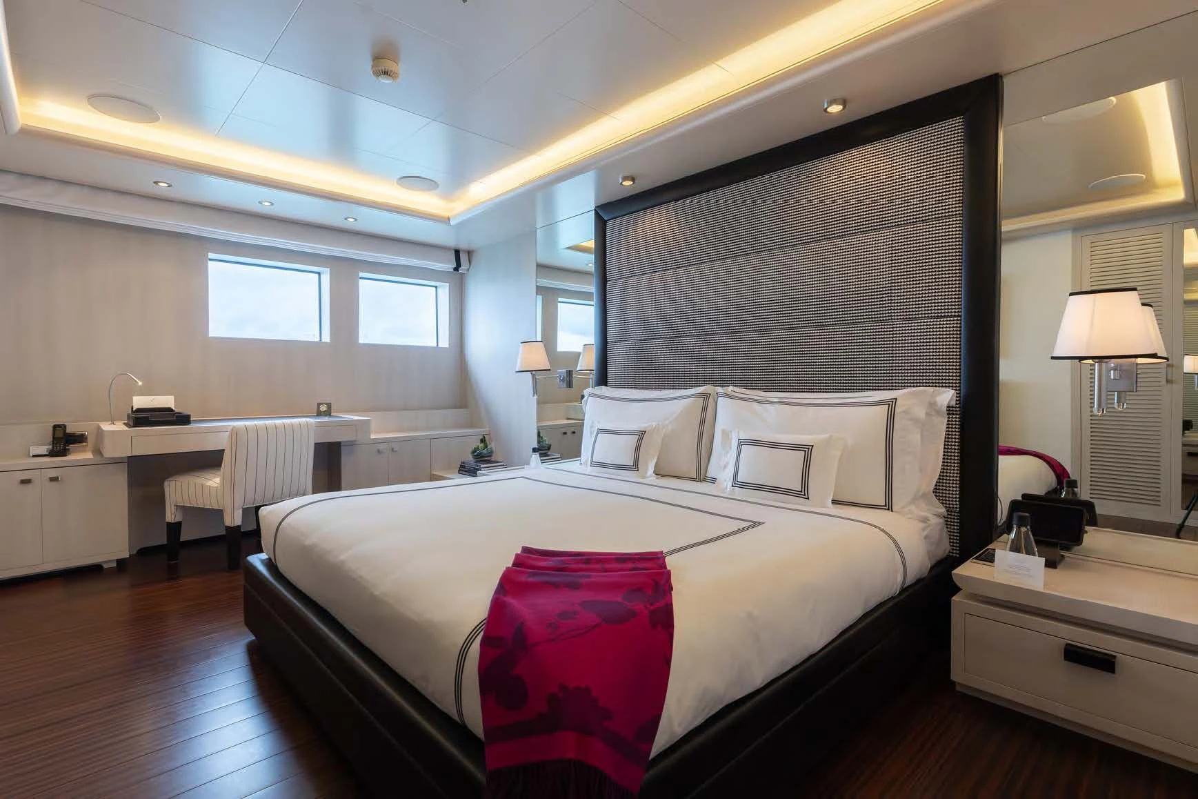 Upon stepping onboard, one is immediately enveloped by opulence and attention to detail that defines ETERNITY’s interior spaces. With accommodations for up to twelve guests across seven lavish cabins and ample space for a crew team of fourteen members, every inch exudes luxury and comfort. Each stateroom offers unique features and design elements that cater to every guest's taste while ensuring they enjoy absolute privacy and serenity throughout their stay.