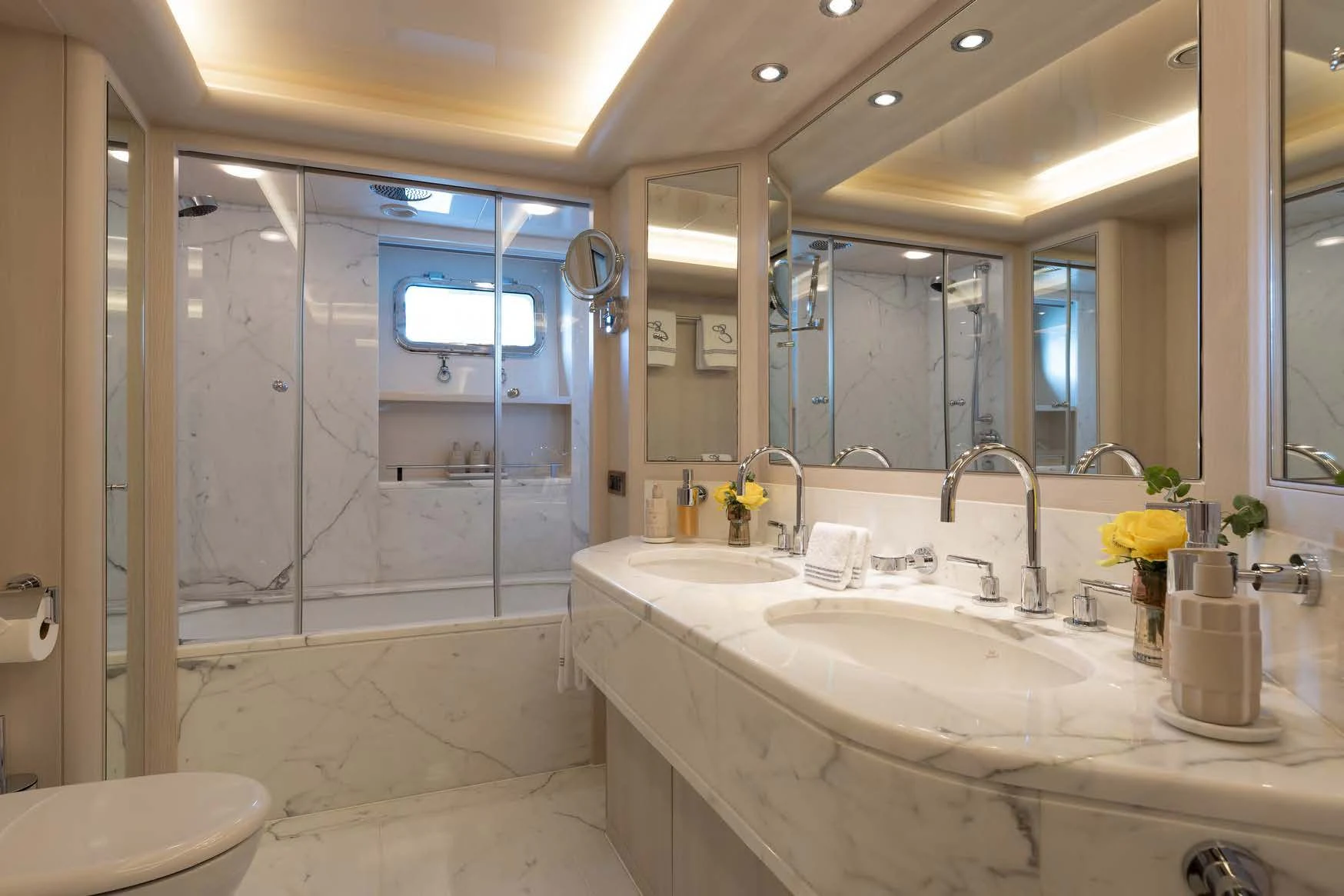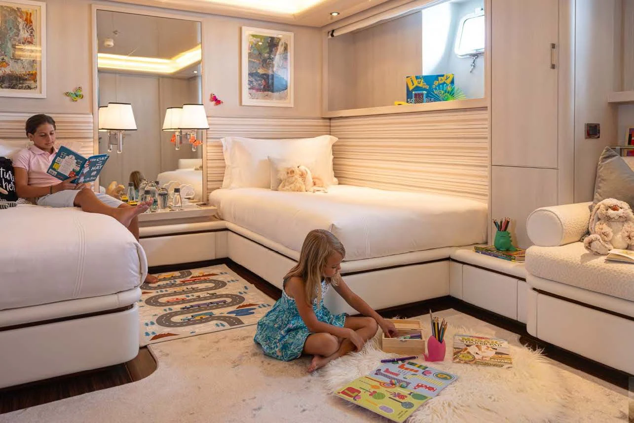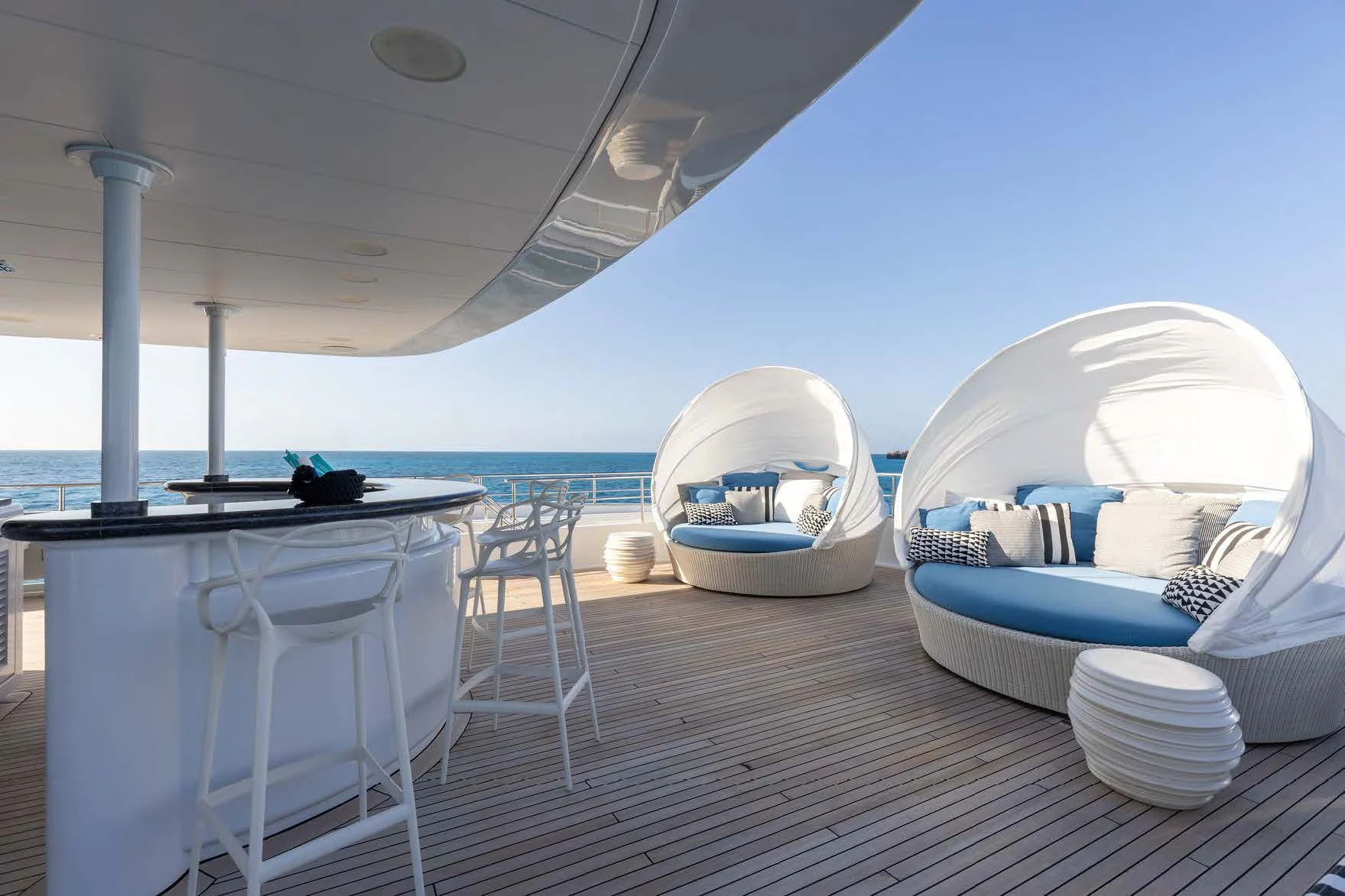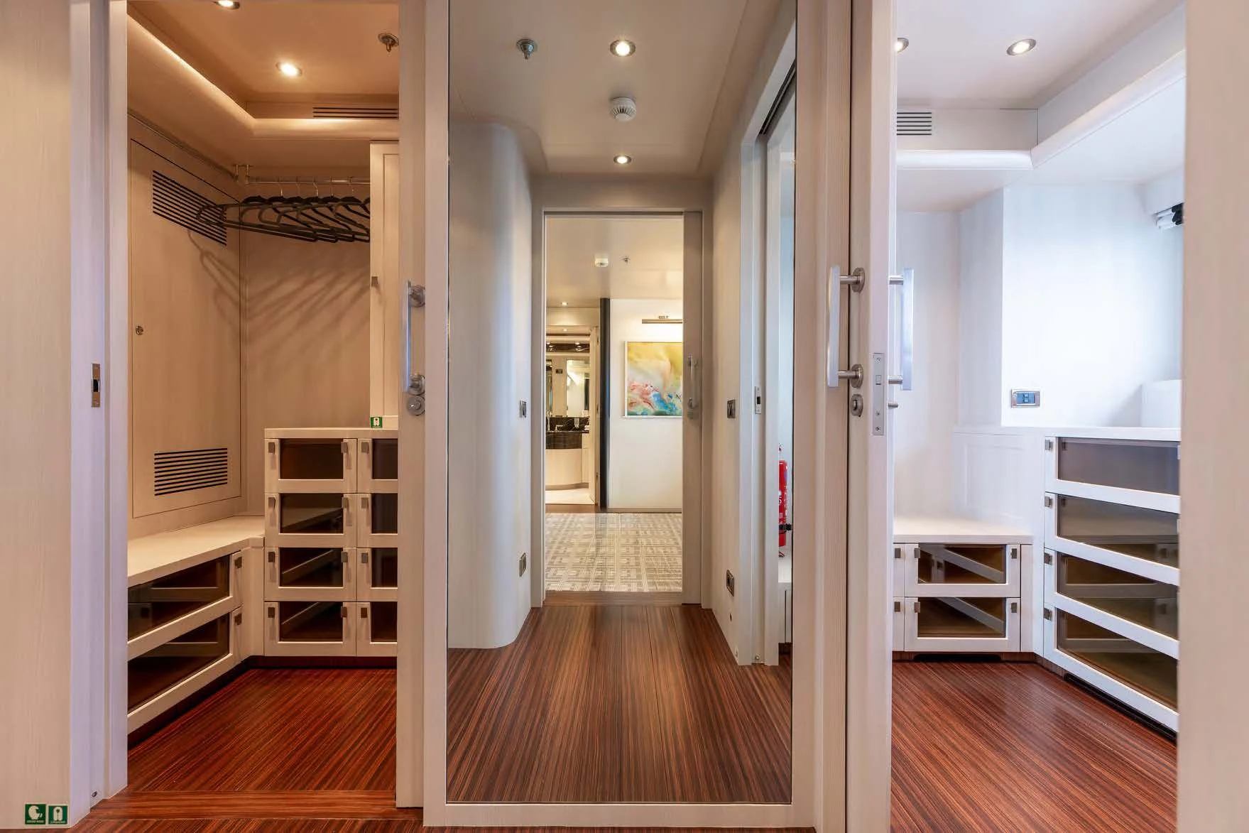 Upon stepping onboard, one is immediately enveloped by opulence and attention to detail that defines ETERNITY’s interior spaces. With accommodations for up to twelve guests across seven lavish cabins and ample space for a crew team of fourteen members, every inch exudes luxury and comfort. Each stateroom offers unique features and design elements that cater to every guest's taste while ensuring they enjoy absolute privacy and serenity throughout their stay.