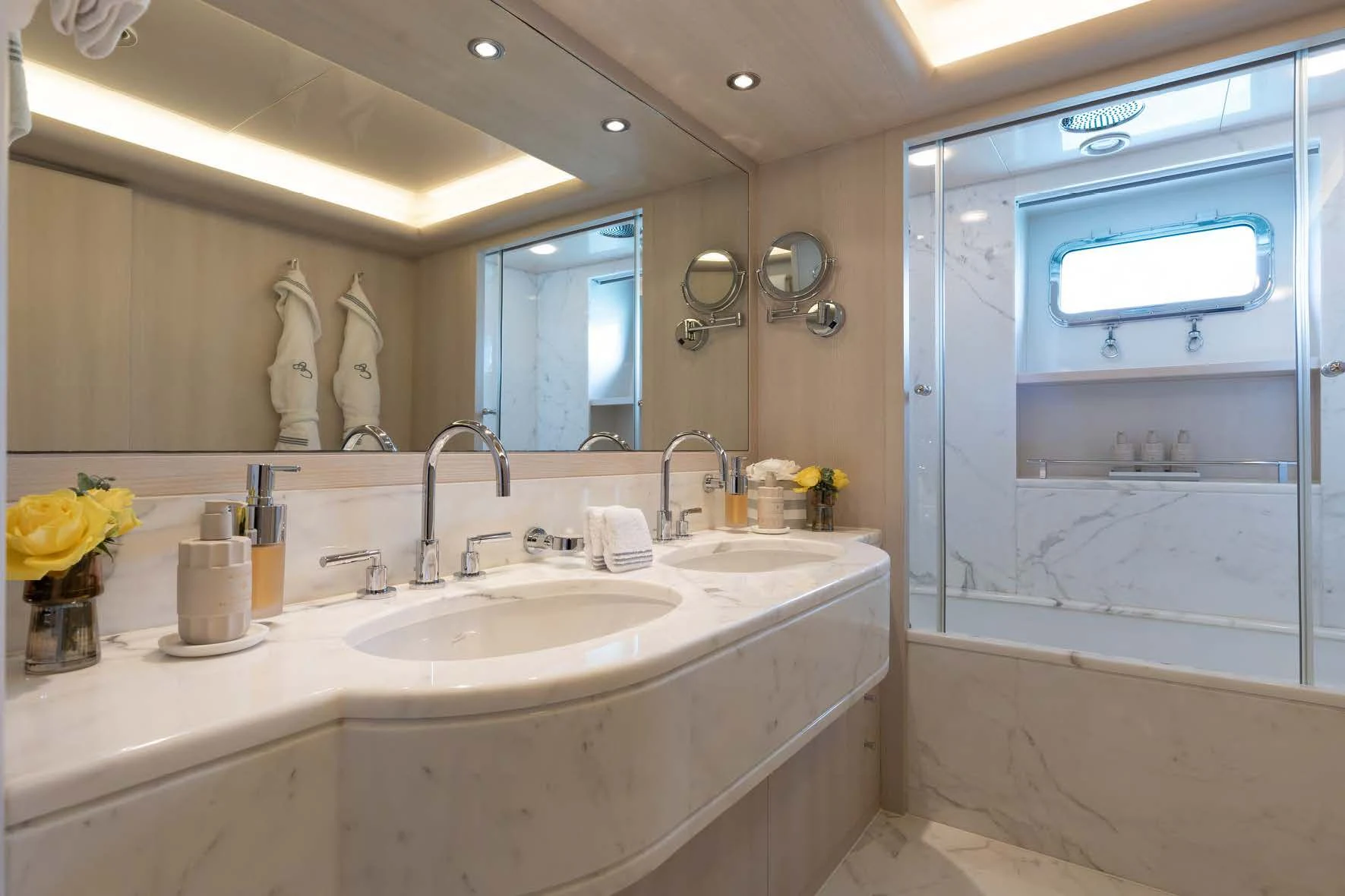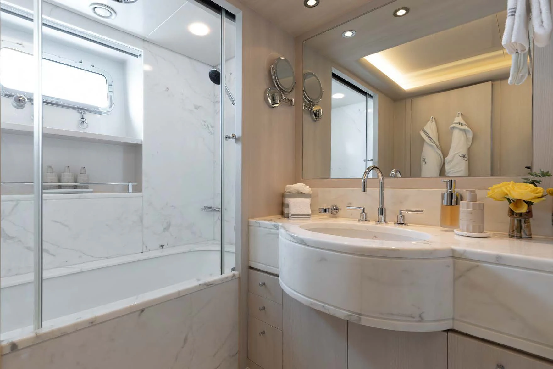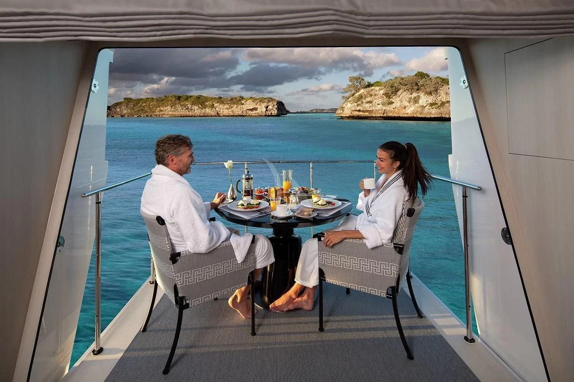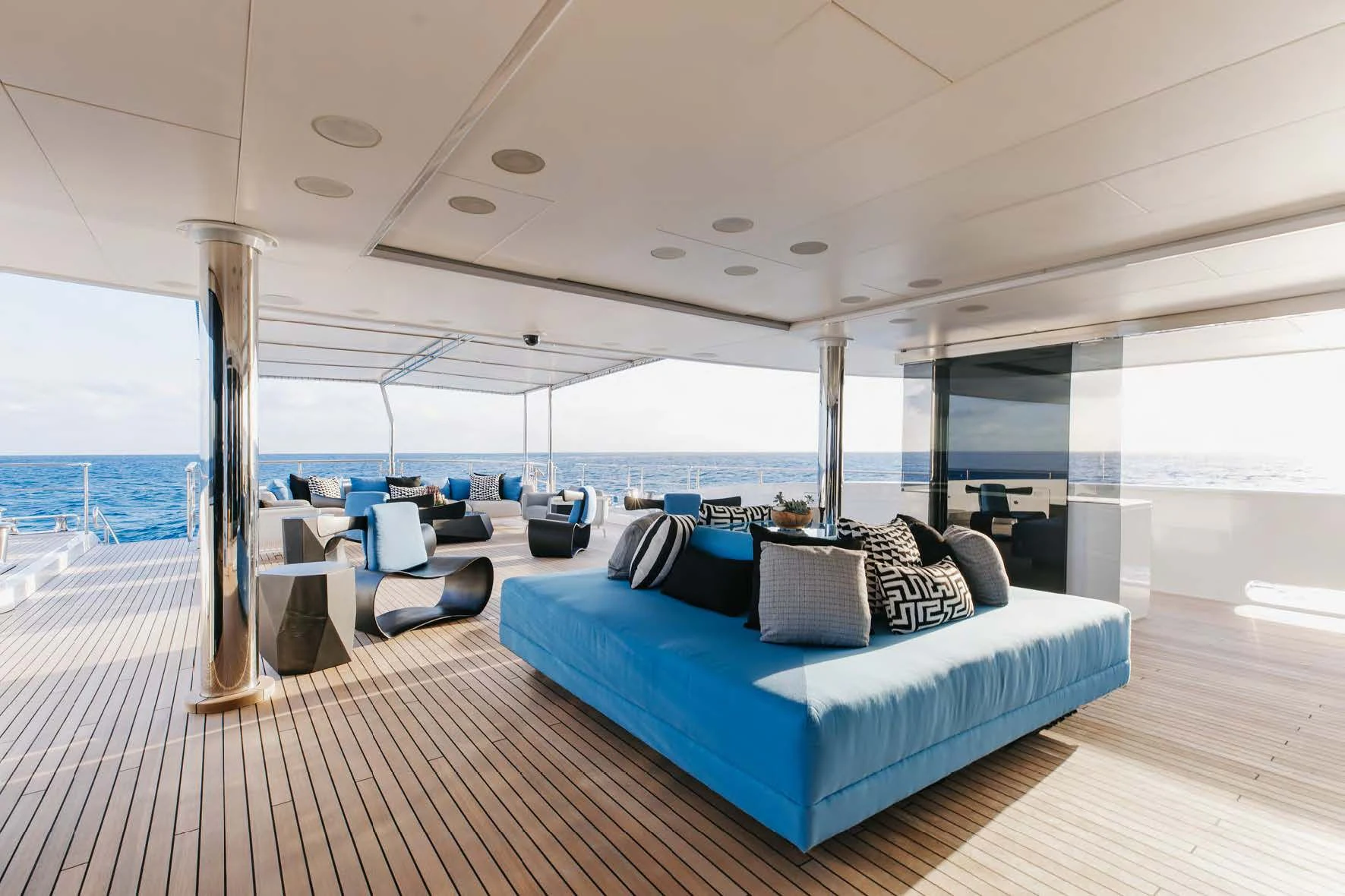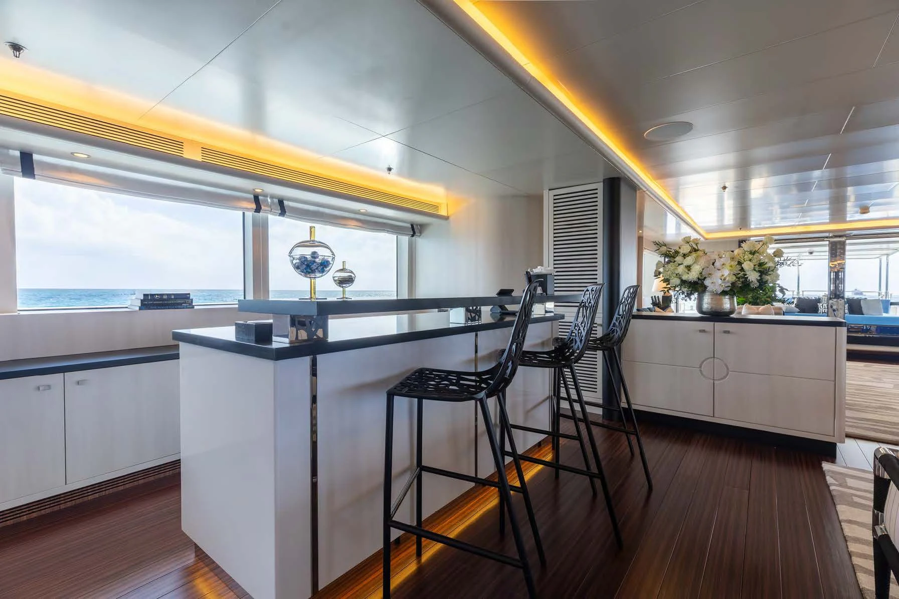Upon stepping onboard, one is immediately enveloped by opulence and attention to detail that defines ETERNITY’s interior spaces. With accommodations for up to twelve guests across seven lavish cabins and ample space for a crew team of fourteen members, every inch exudes luxury and comfort. Each stateroom offers unique features and design elements that cater to every guest's taste while ensuring they enjoy absolute privacy and serenity throughout their stay.