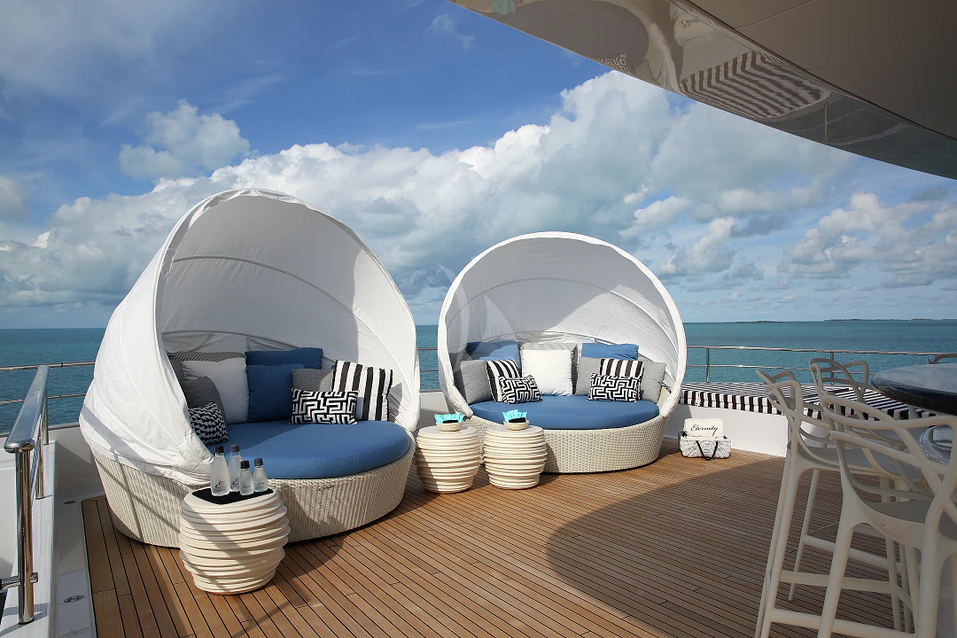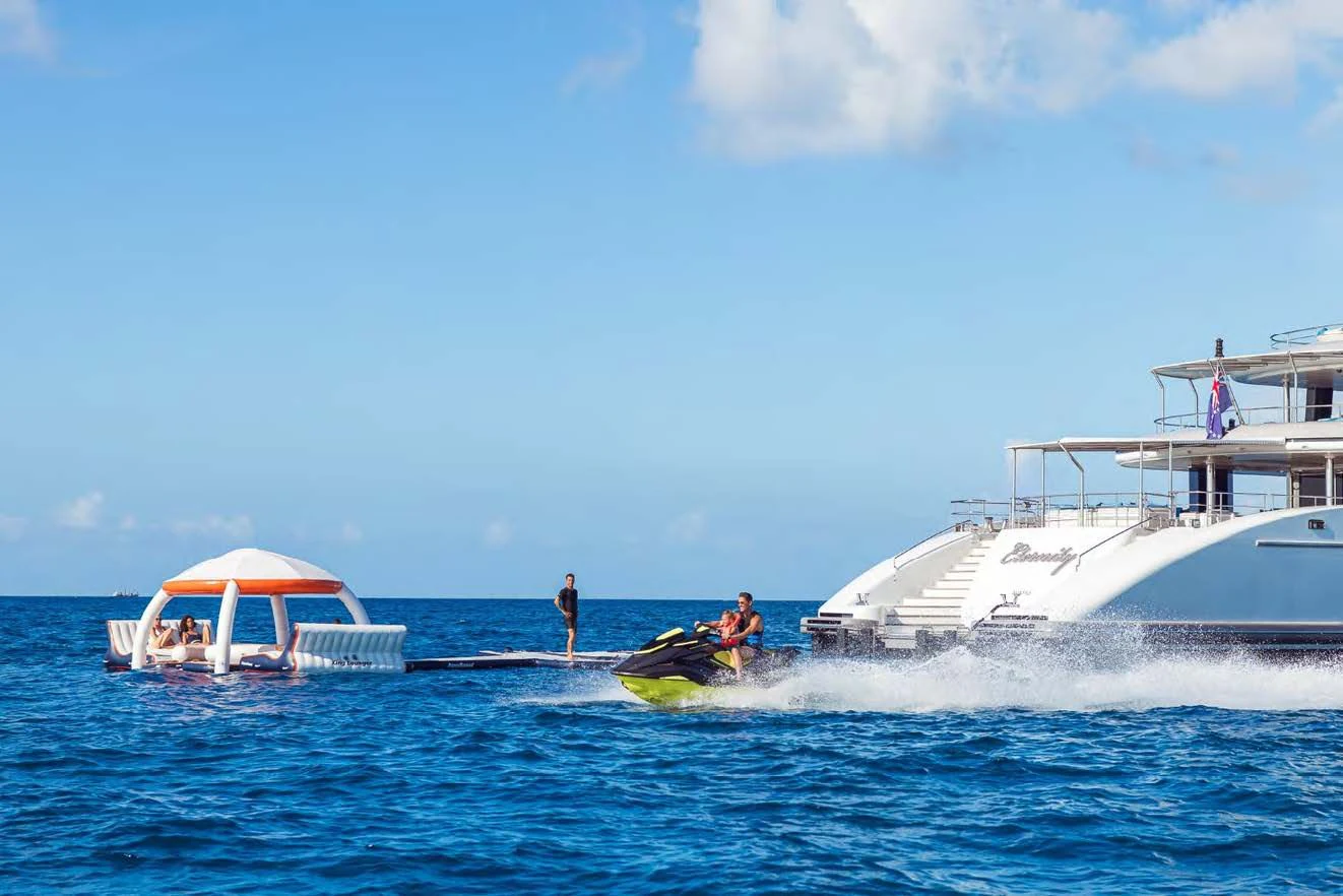 Finally yet importantly are ETERNITY’s fun-filled water toys inventory waiting to add thrill and excitement into your journey across seas! From jet skis allowing you to zip across waves at exhilarating speeds; inflatable water slides perfect for family fun; stand-up paddleboards letting you glide smoothly over tranquil waters - there’s something for everyone aboard this floating paradise!