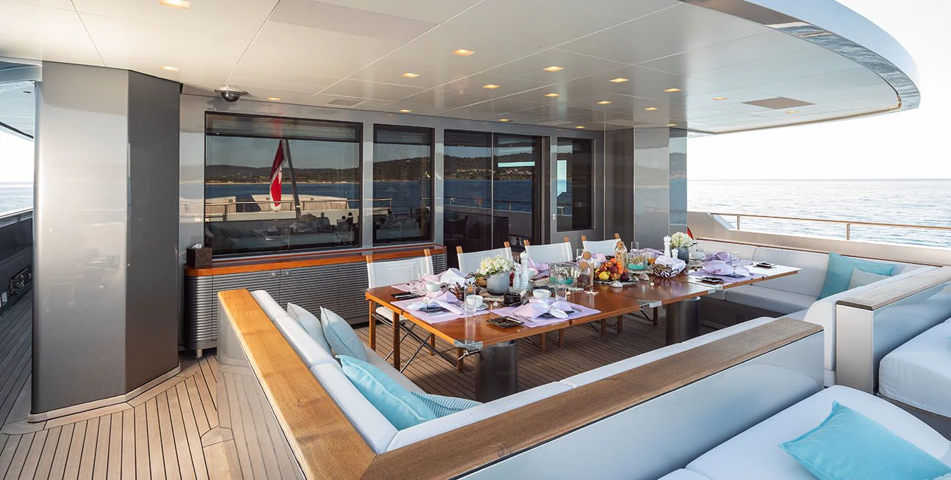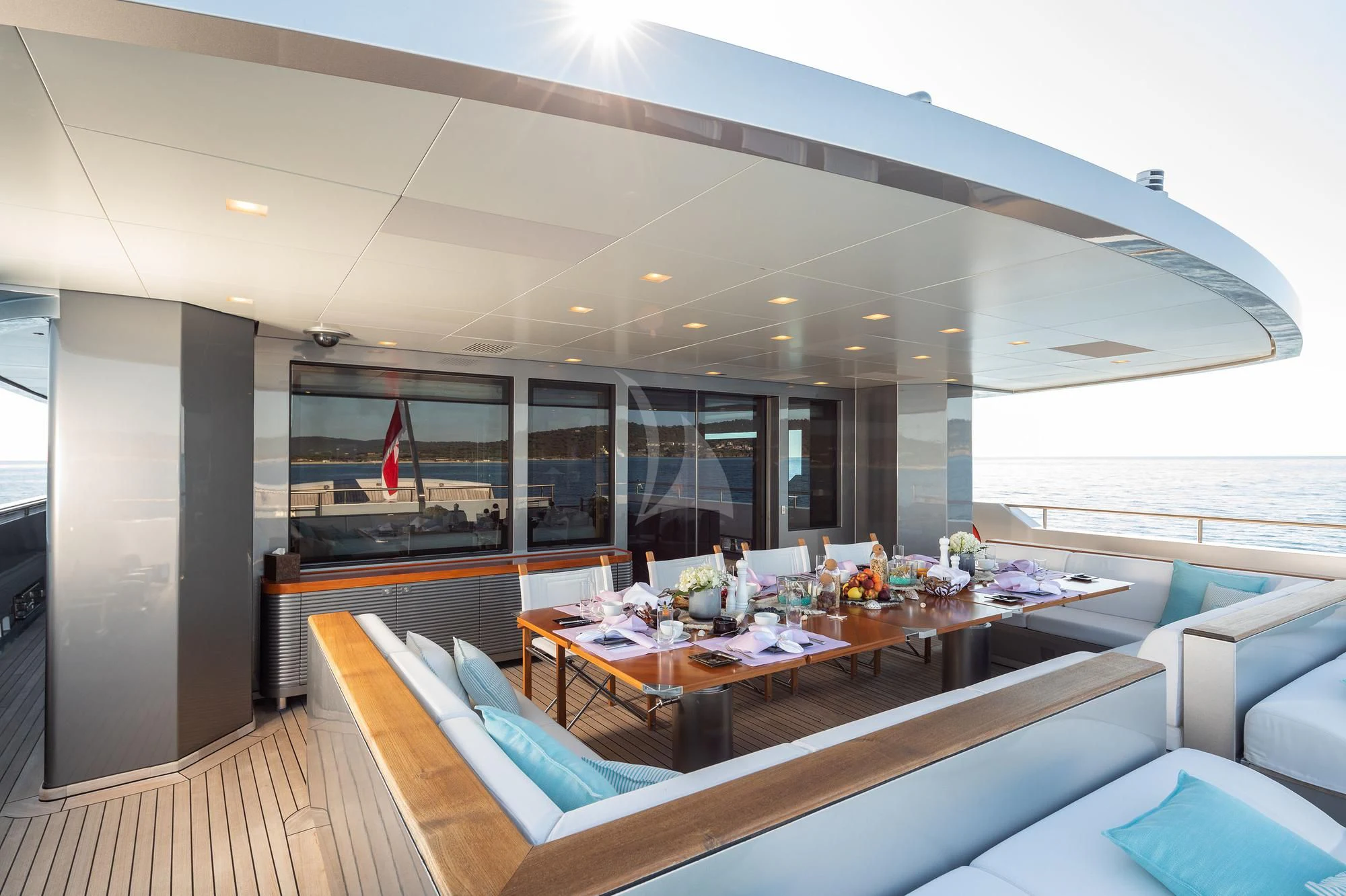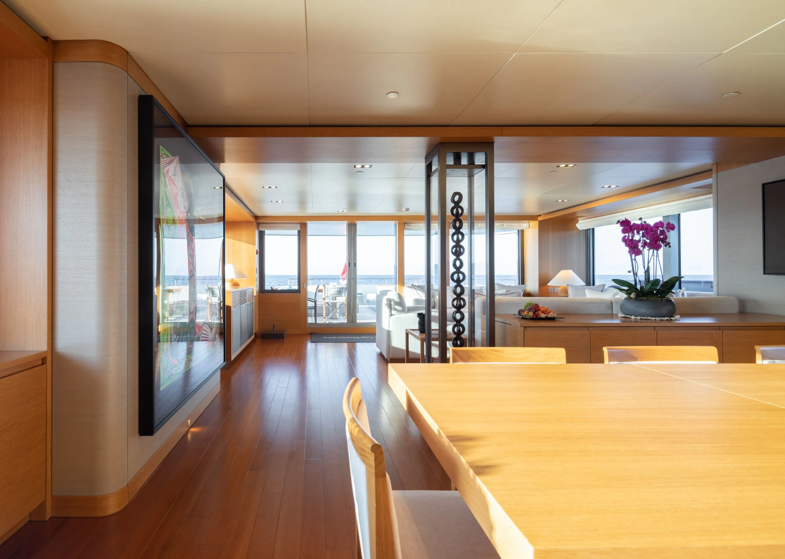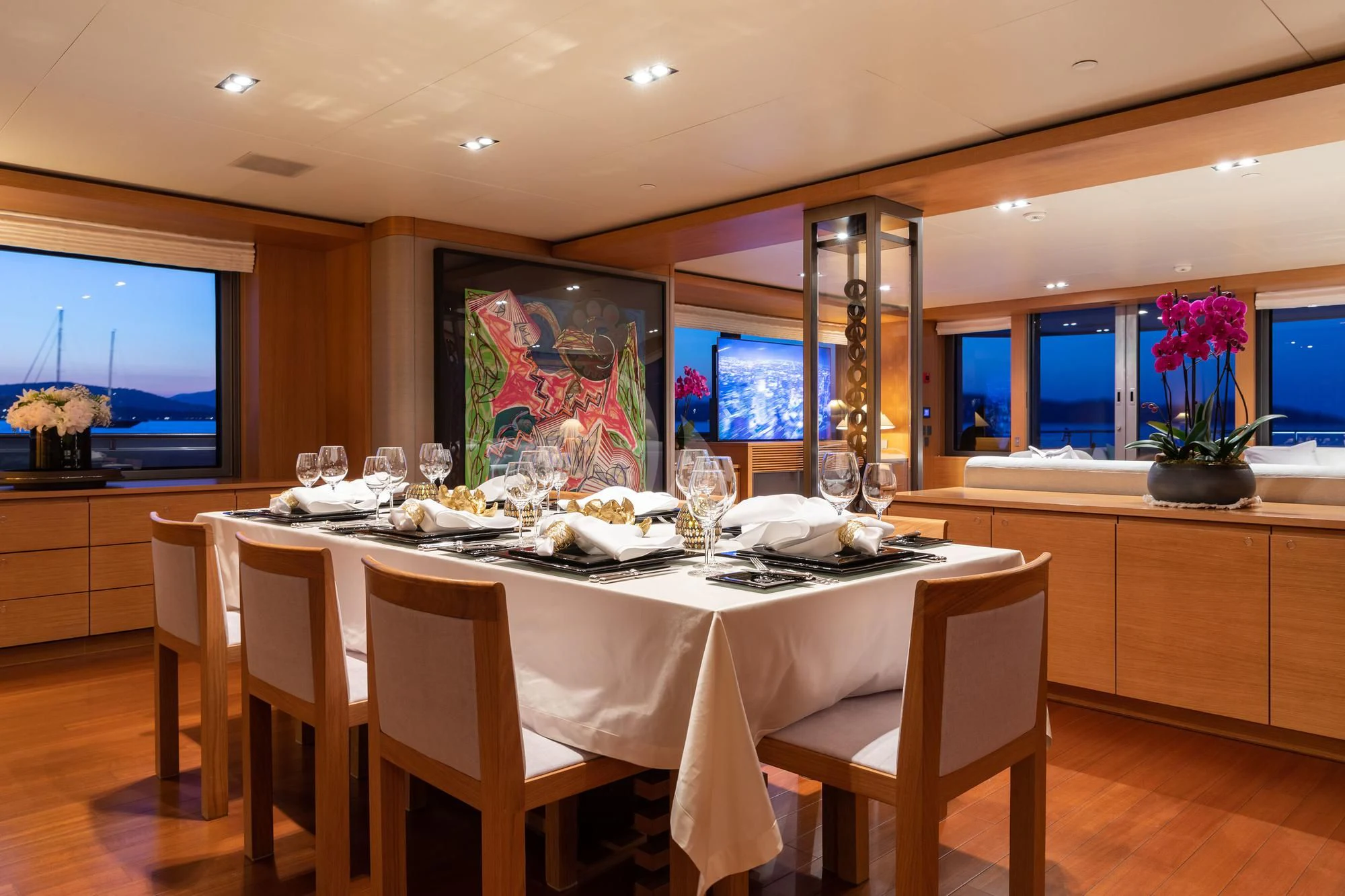 Beyond accommodation spaces are communal areas where opulence meets functionality. The main salon is spacious yet inviting with comfortable seating arrangements that encourage social interaction amongst guests. A formal dining area serves as the perfect setting for memorable dinners prepared by your dedicated crew members who cater to your culinary preferences round-the-clock.
