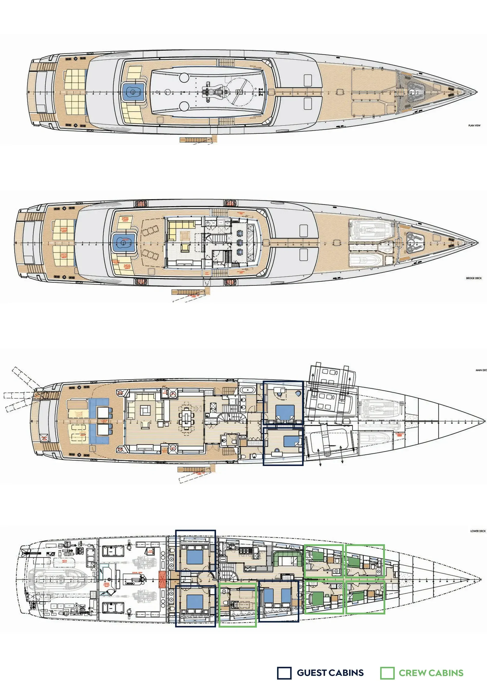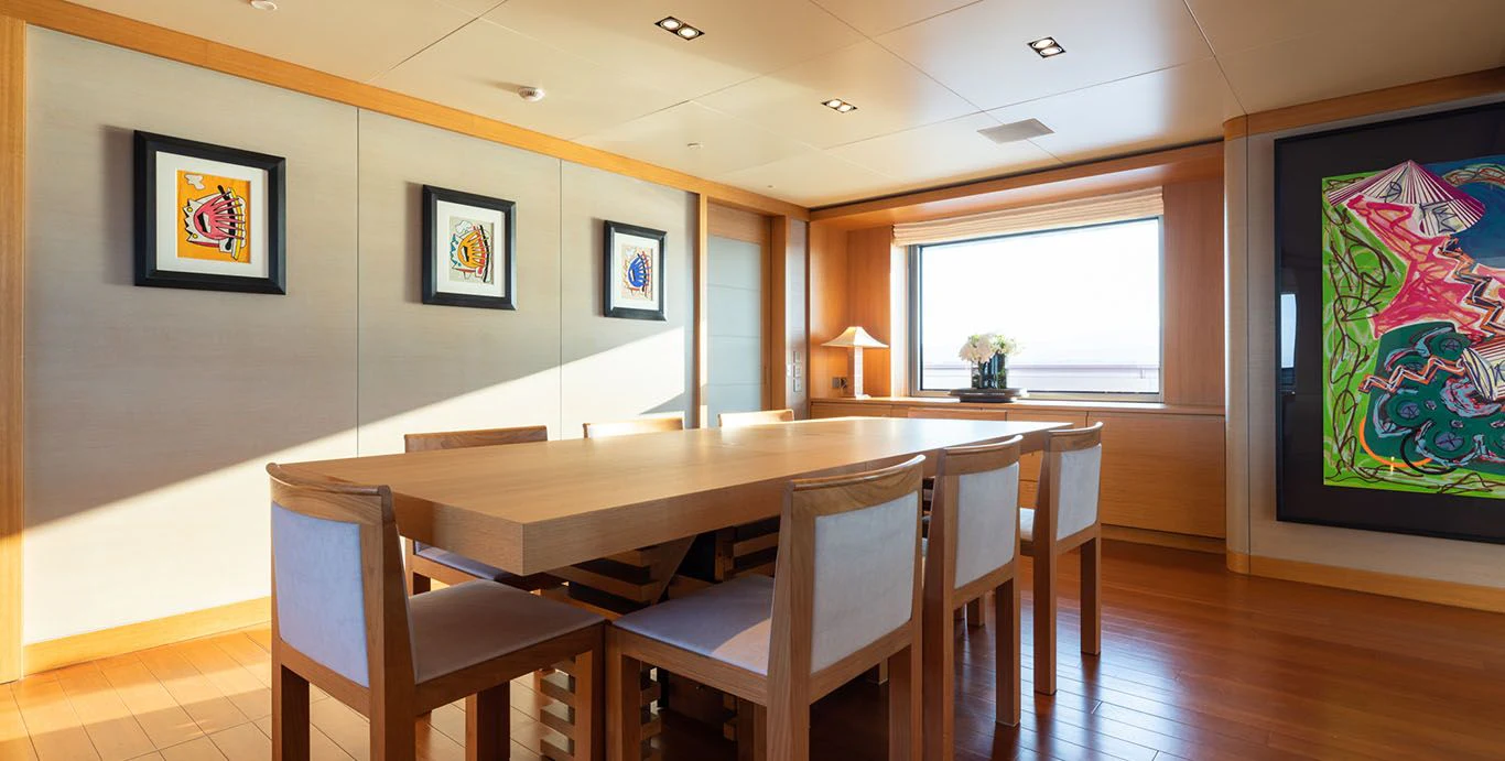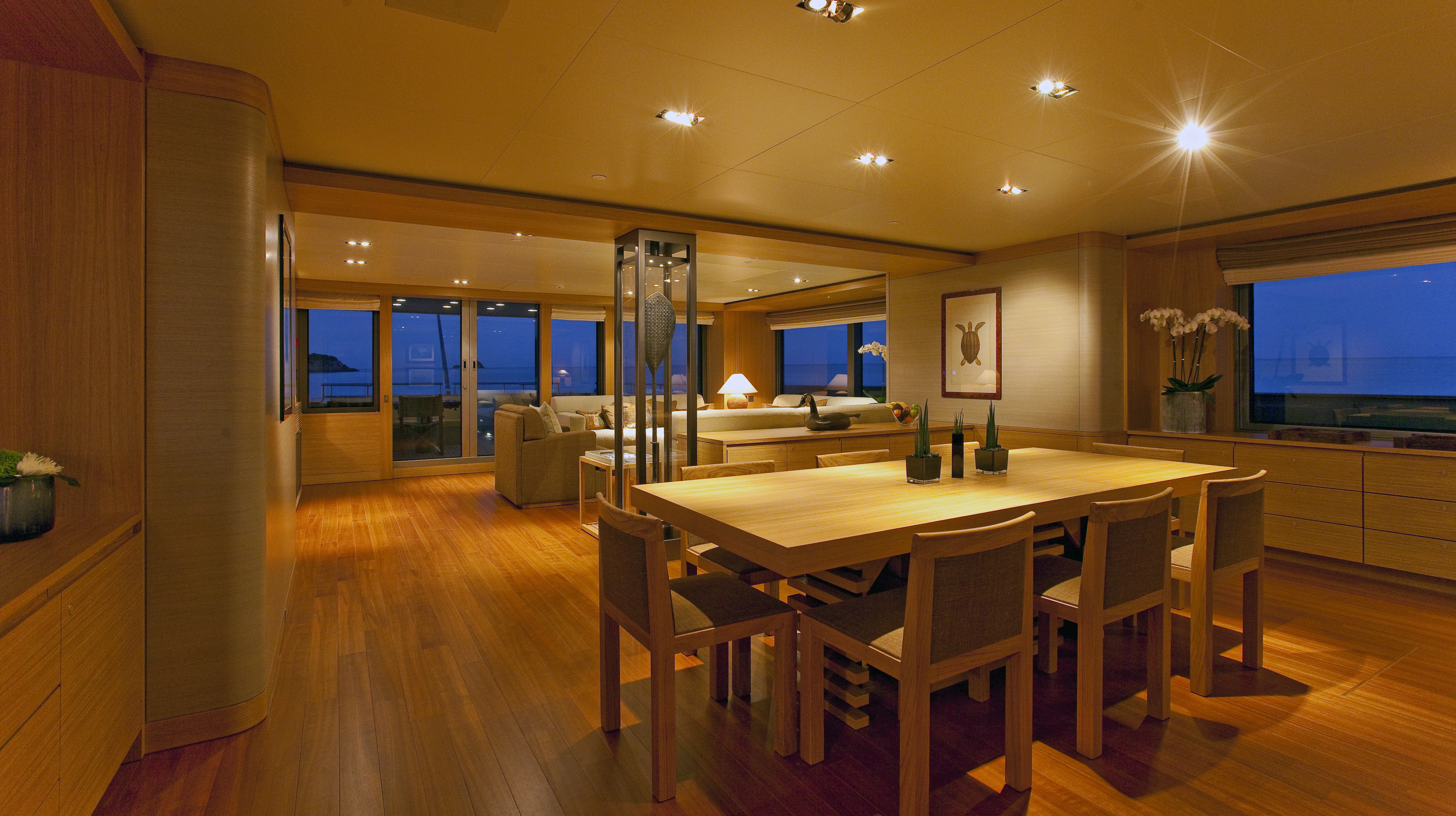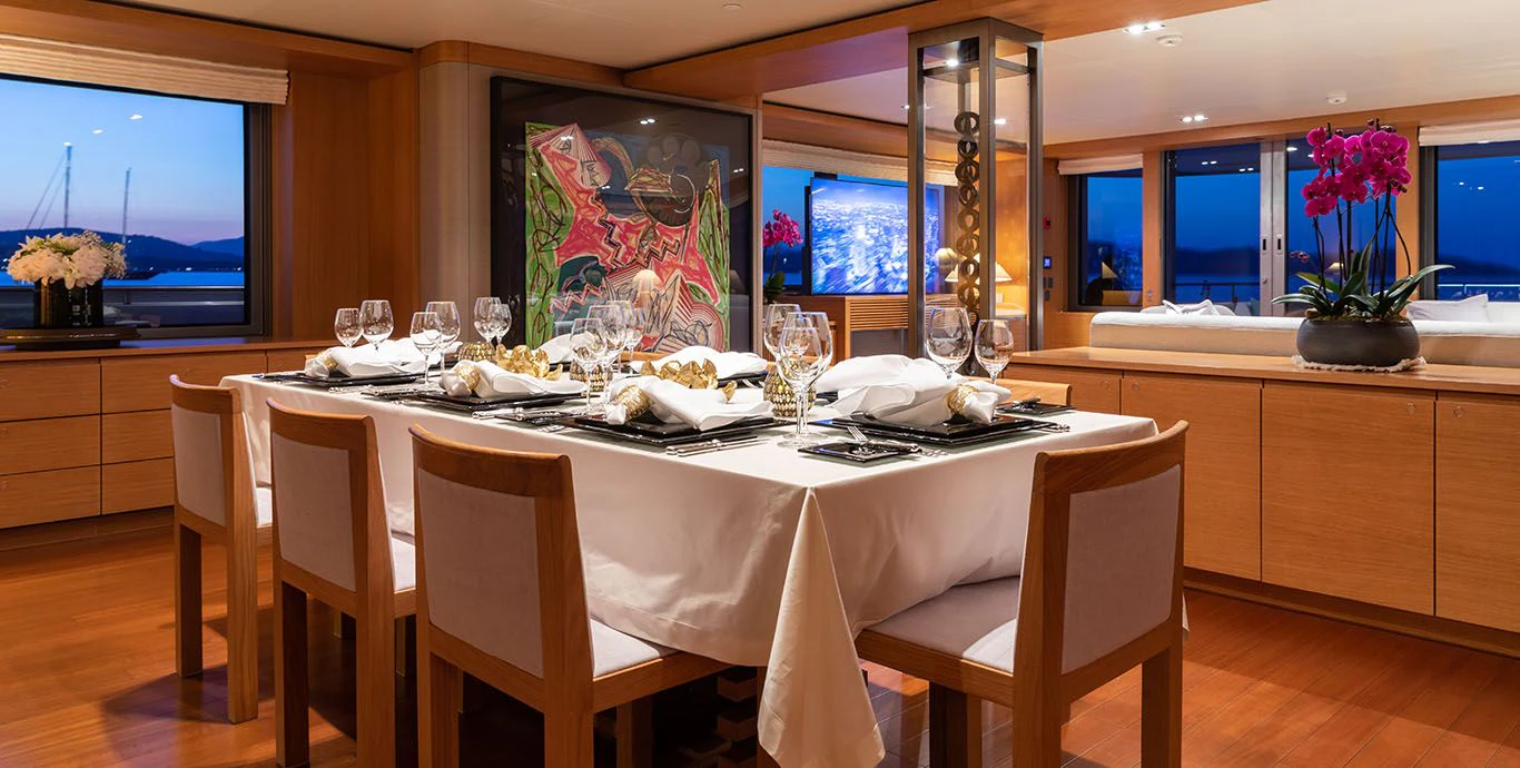 Beyond accommodation spaces are communal areas where opulence meets functionality. The main salon is spacious yet inviting with comfortable seating arrangements that encourage social interaction amongst guests. A formal dining area serves as the perfect setting for memorable dinners prepared by your dedicated crew members who cater to your culinary preferences round-the-clock.
