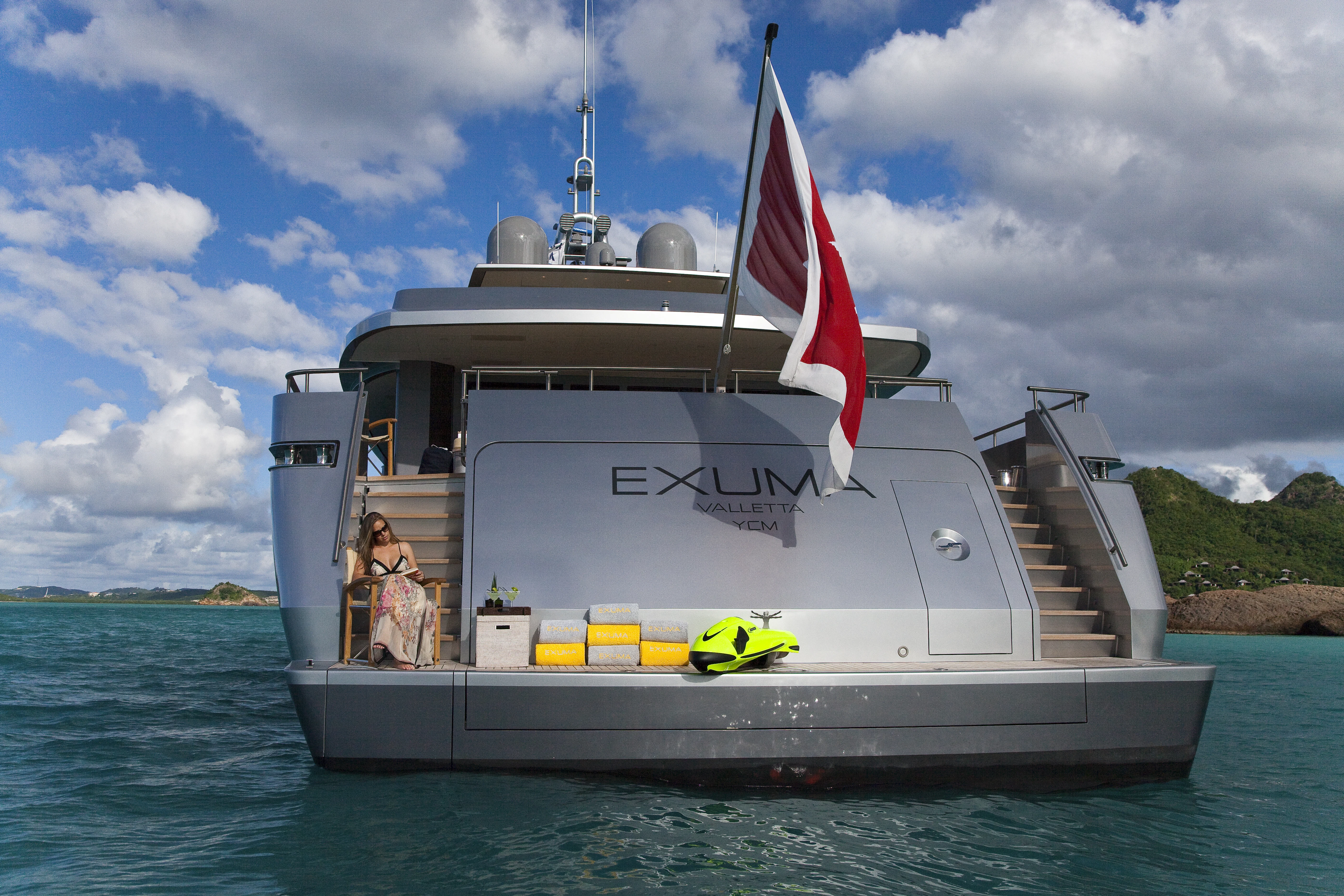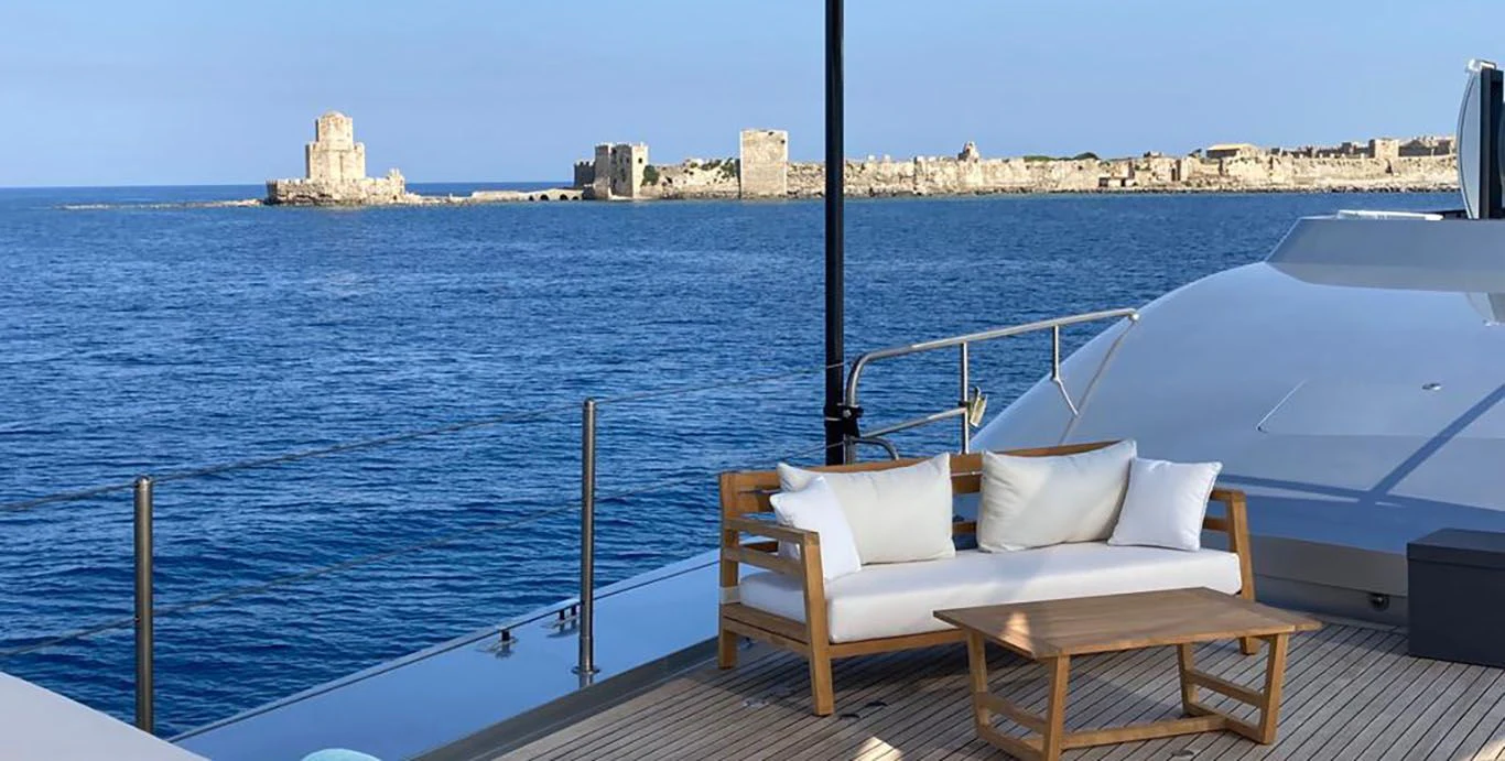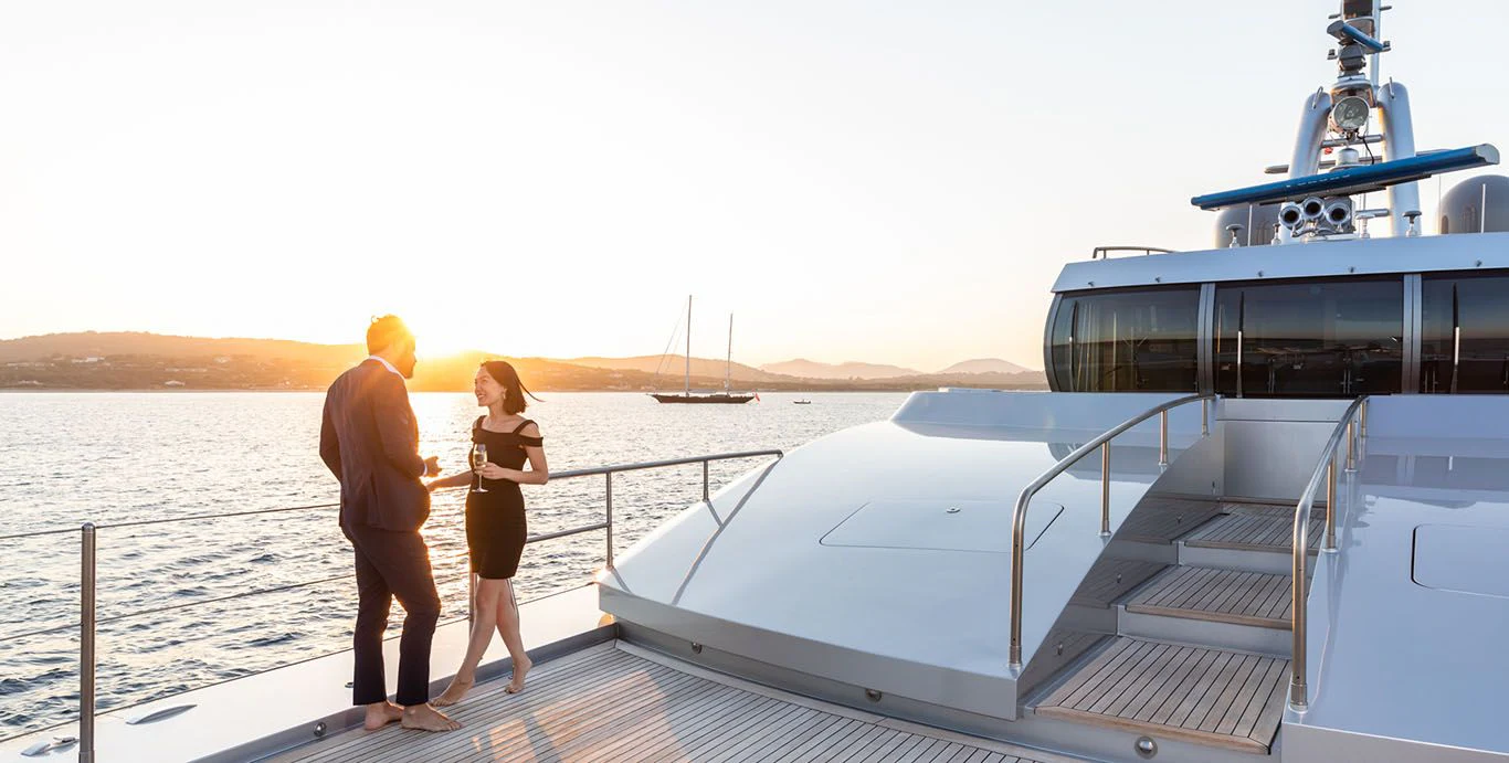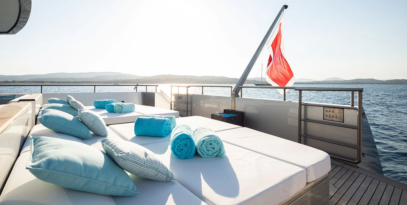 FALCO MOSCATA's exterior design is nothing short of extraordinary. Her sleek lines are reminiscent of classic nautical architecture, while her modern detailing adds an air of sophistication. The sundeck is a haven for sun worshippers, featuring ample lounging space alongside a luxurious Jacuzzi for ultimate relaxation. Alfresco dining areas allow guests to enjoy their meals amidst breathtaking views, while multiple lounging areas provide perfect spots for socializing or simply soaking up the serene surroundings.